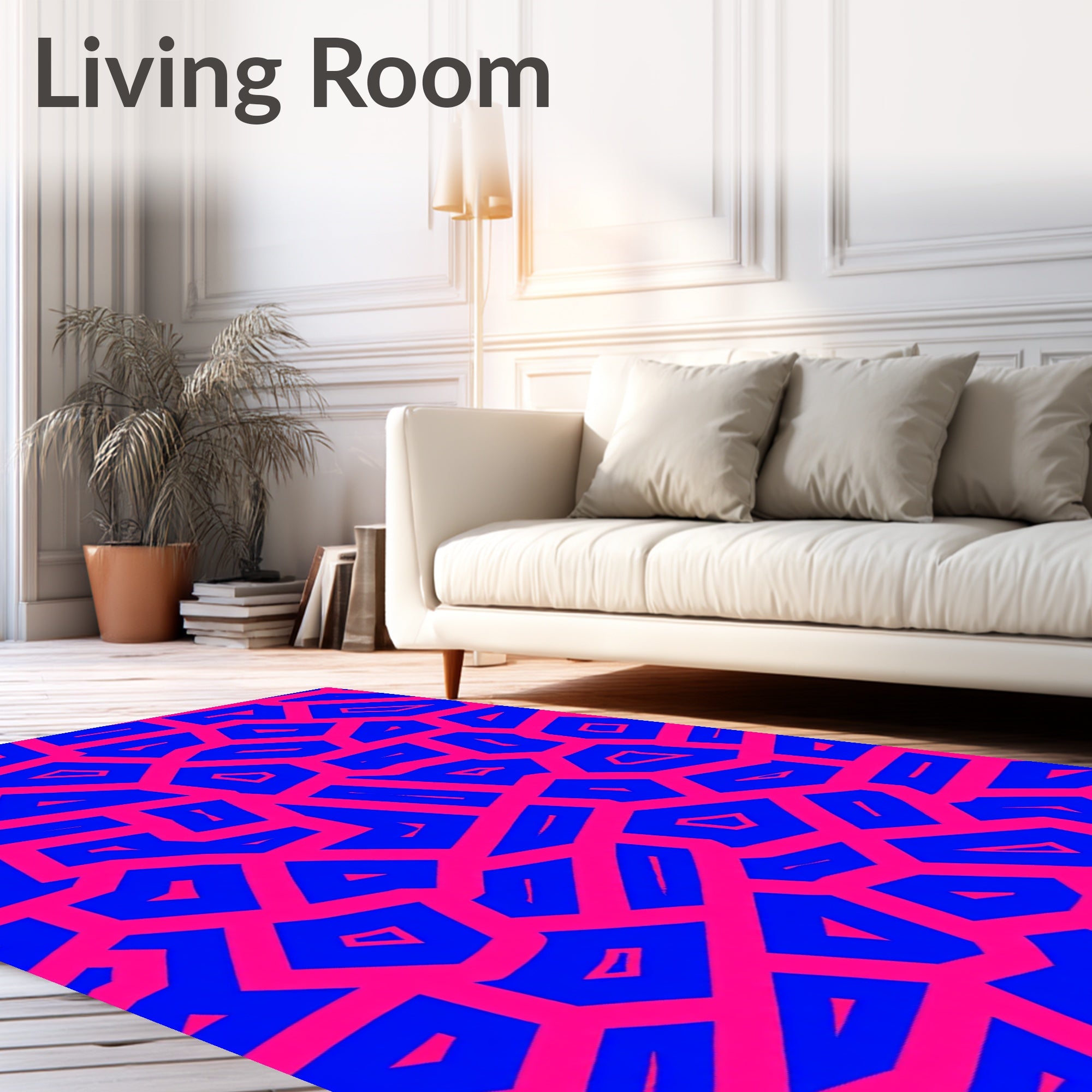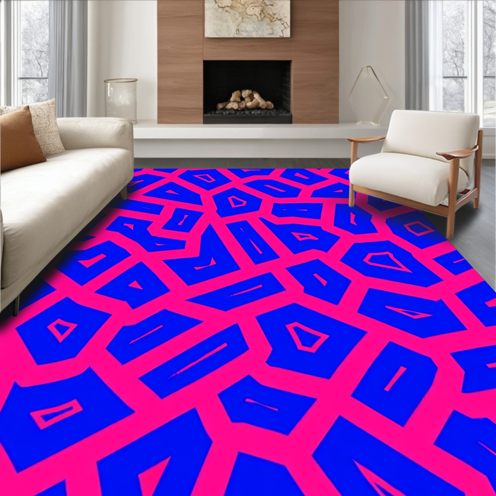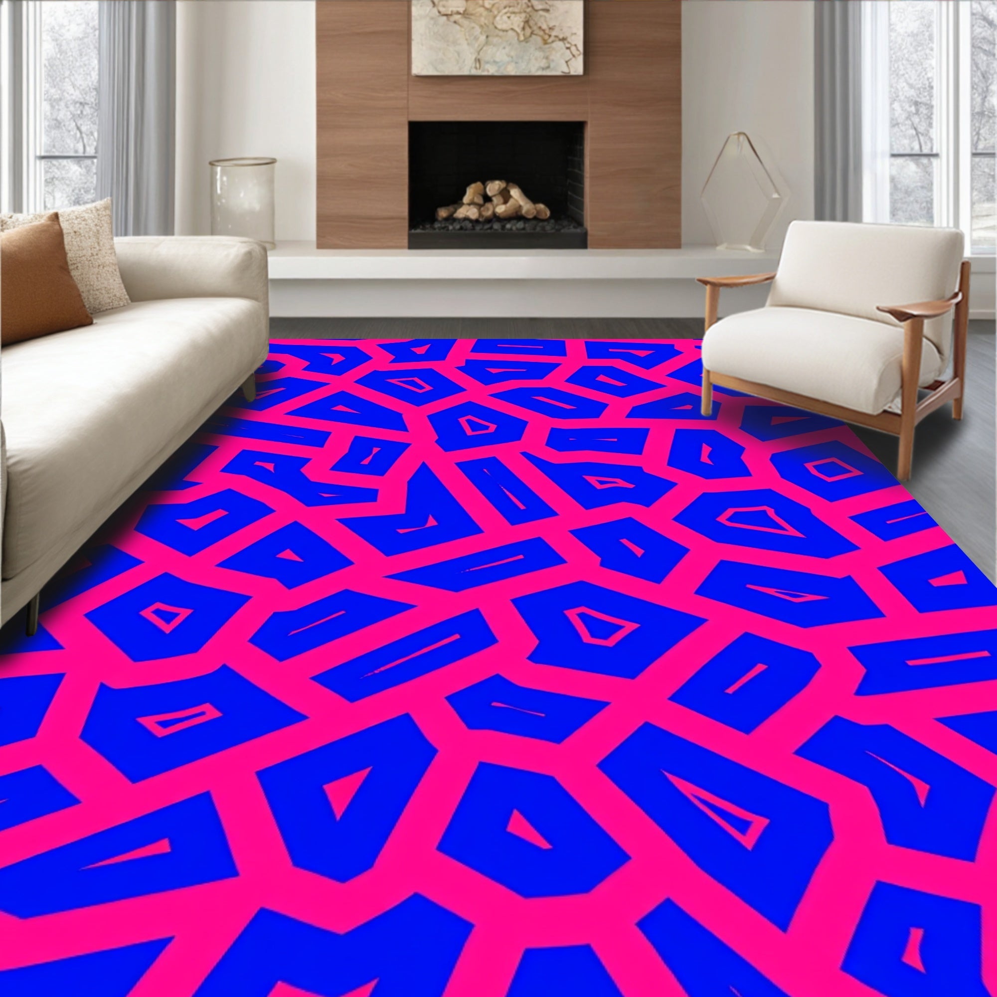 Ultra Soft Area Rug, Non Slip, Stain Resistant, Washable Area Rugs for Living Room, Bedroom, Hypnotic Prism Network With Cascading Spatial Dimension(Pink) Overview: