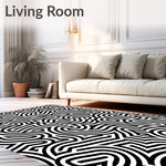 Ultra Soft Area Rug, Non Slip, Stain Resistant, Washable Area Rugs for Living Room, Bedroom, Hypnotic Spiral Maze Optical Floor Art(Black) Overview: