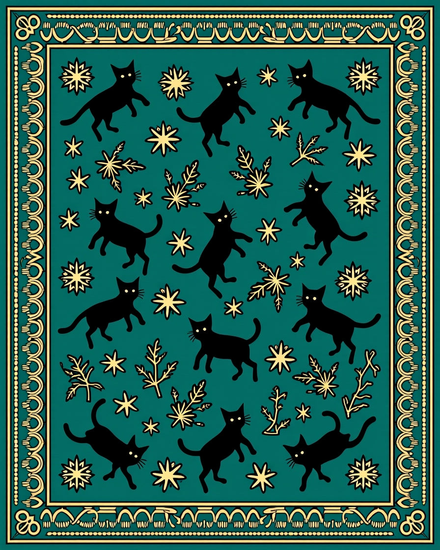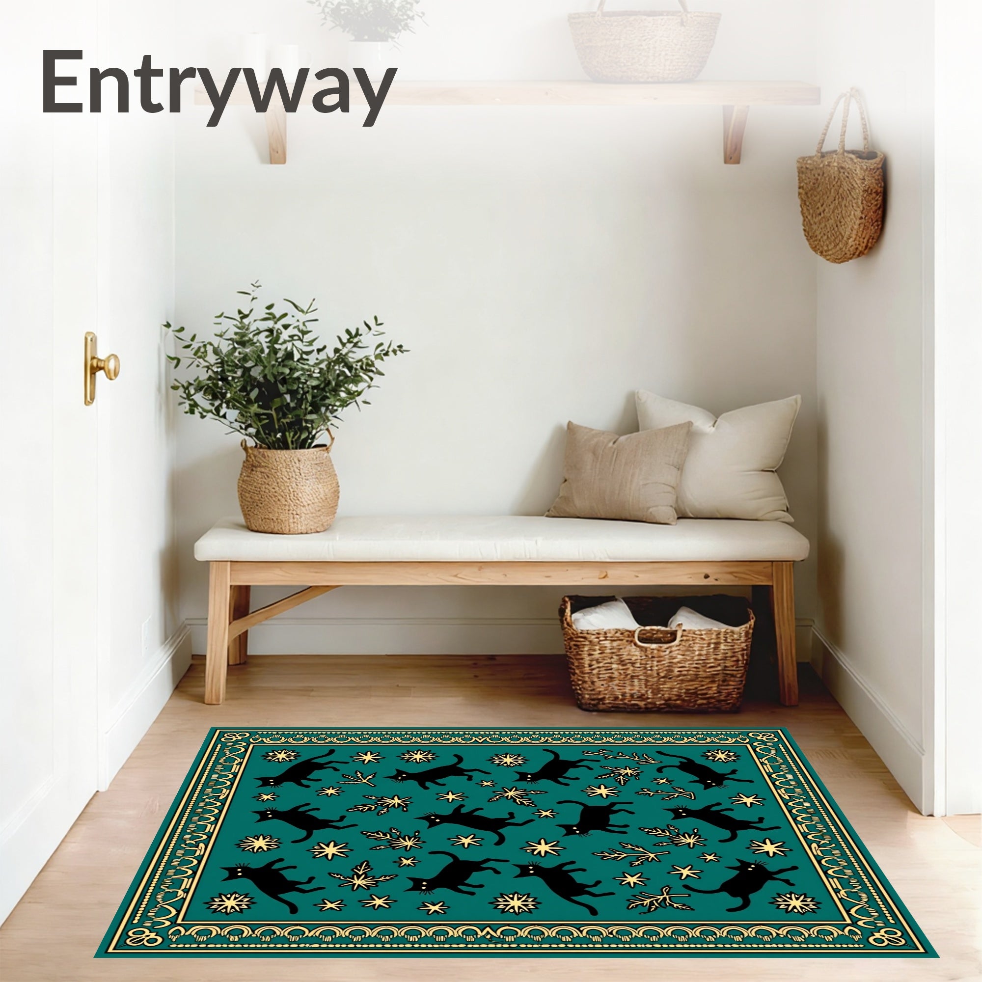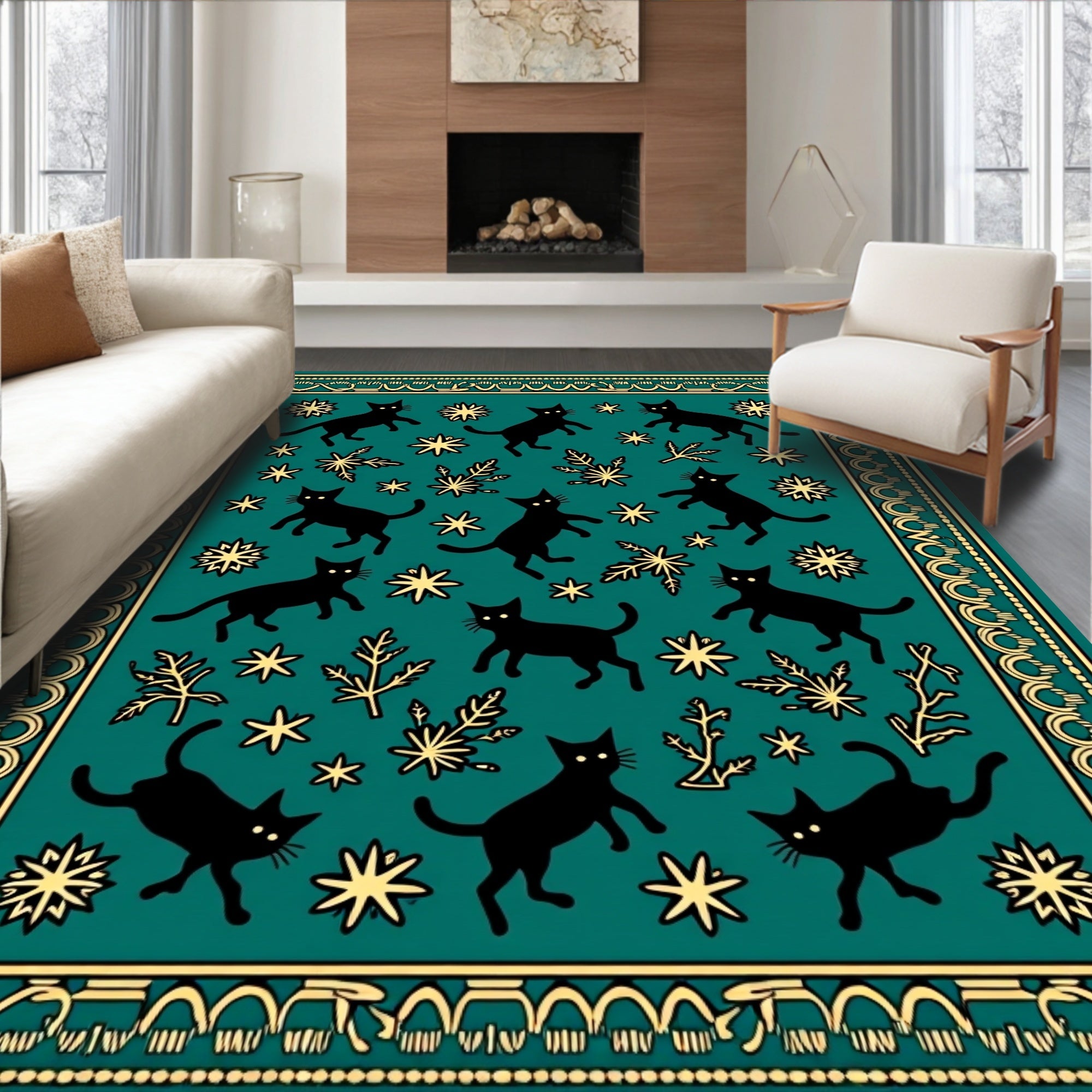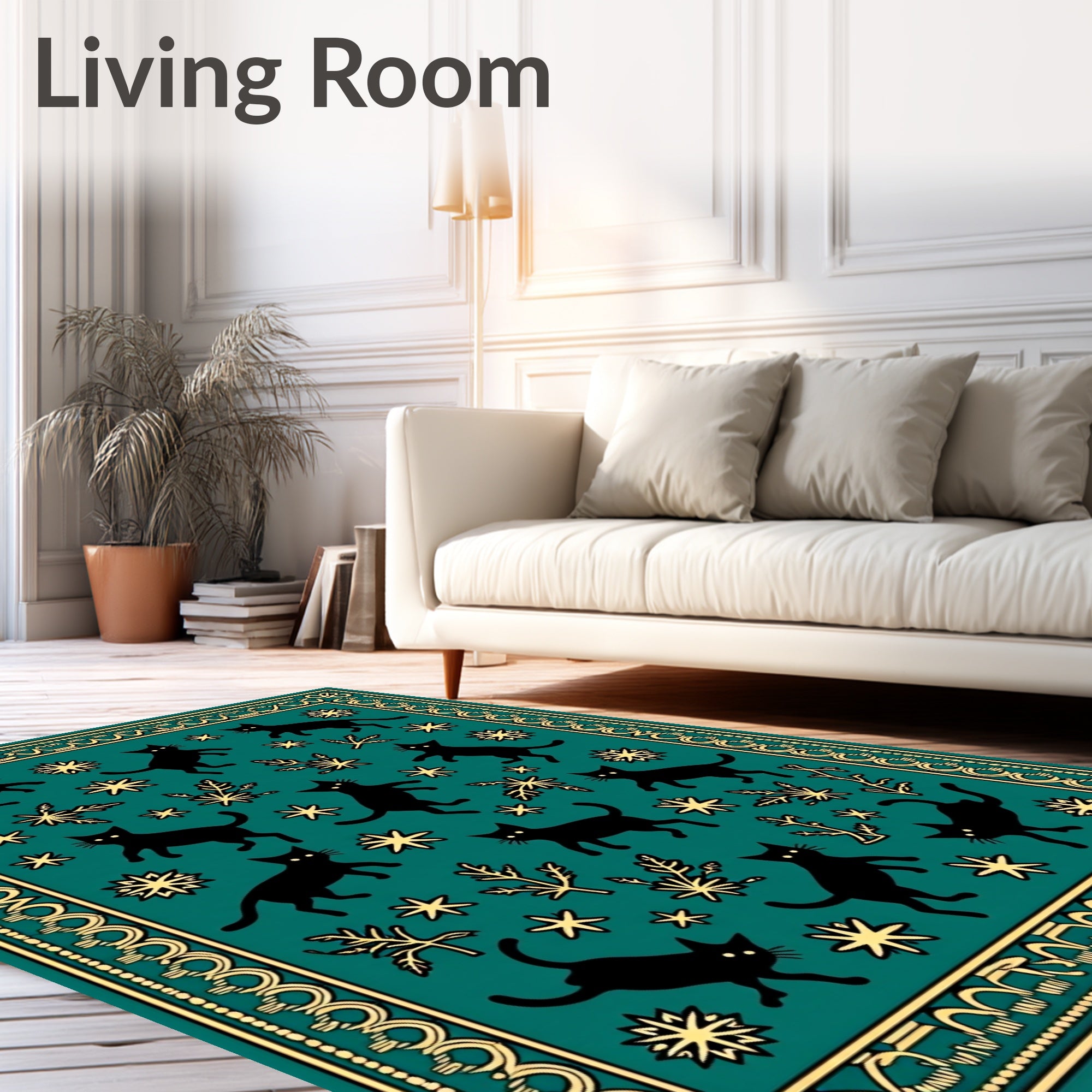 Ultra Soft Area Rug, Non Slip, Stain Resistant, Washable Area Rugs for Living Room, Bedroom, Illuminated Feline Holiday with Twinkling LED Accents(Blue) Overview: