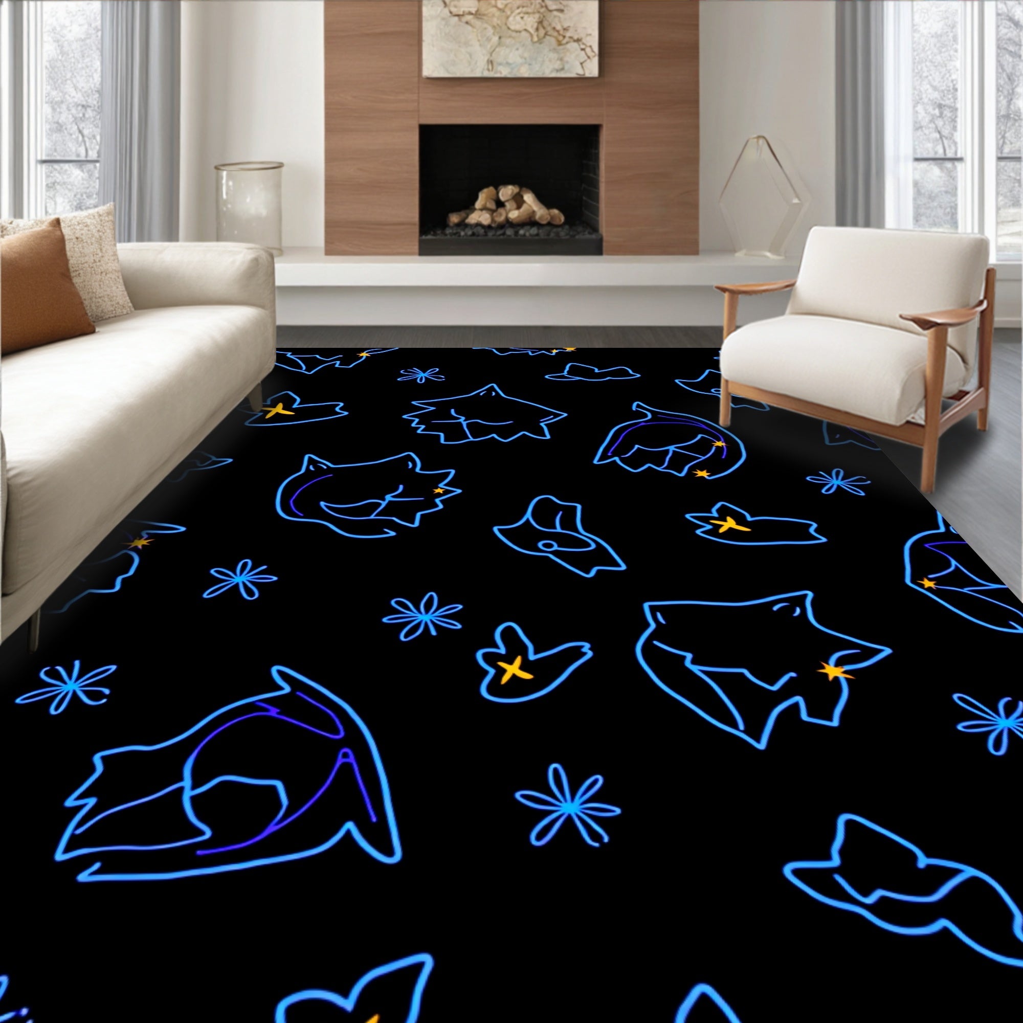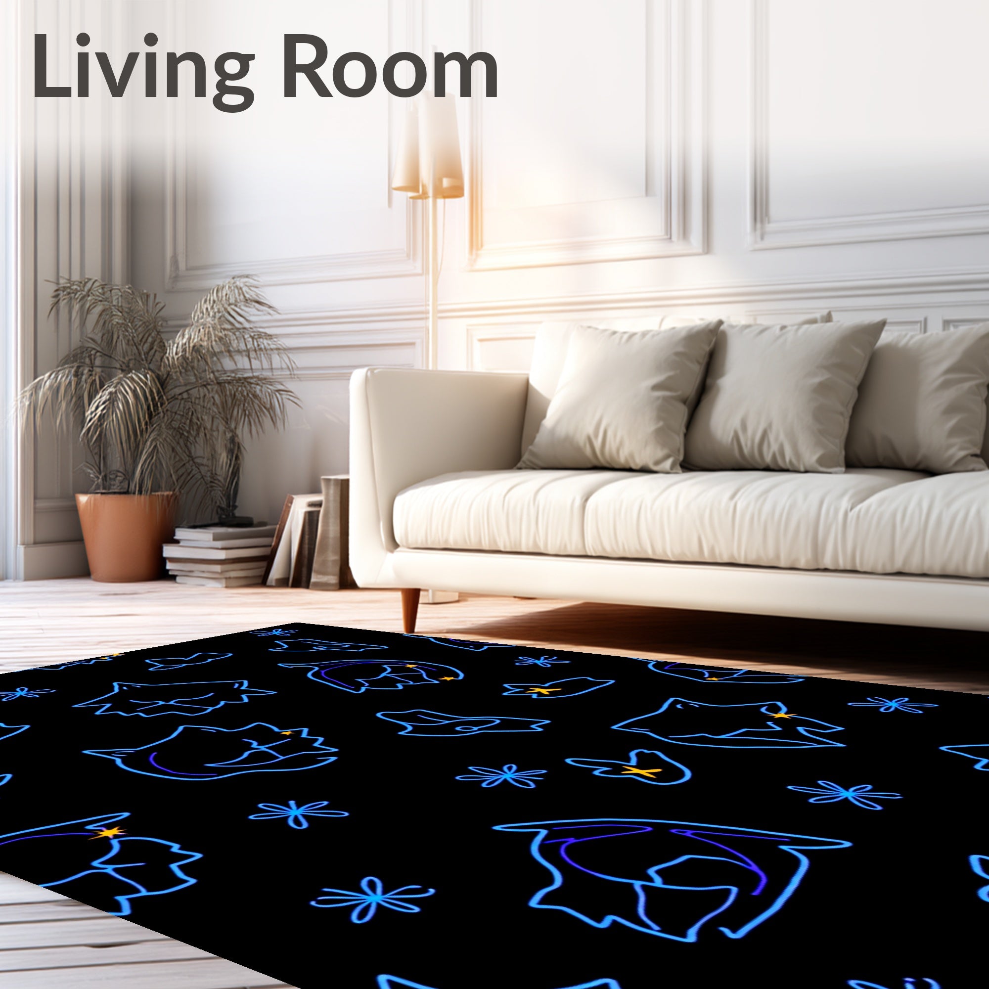 Ultra Soft Area Rug, Non Slip, Stain Resistant, Washable Area Rugs for Living Room, Bedroom, Illuminated Feline with Electrifying Holiday Sparkle Effects(Black) Overview: