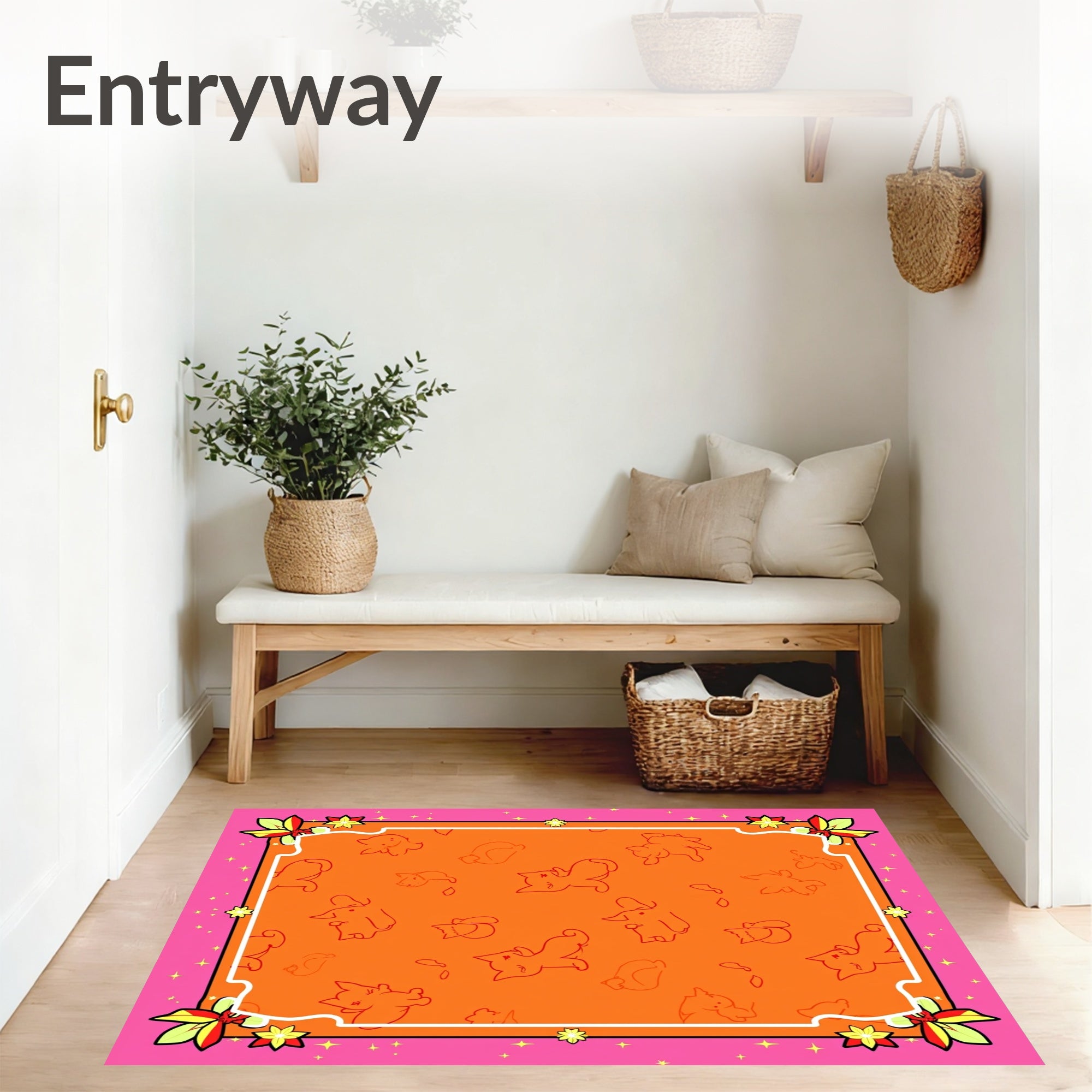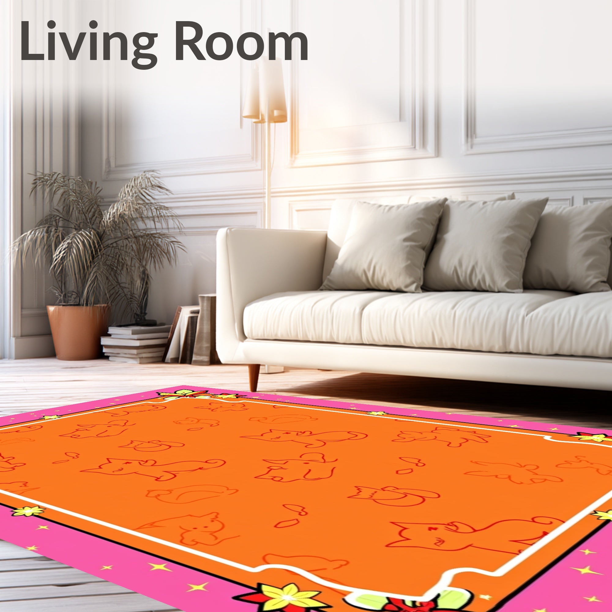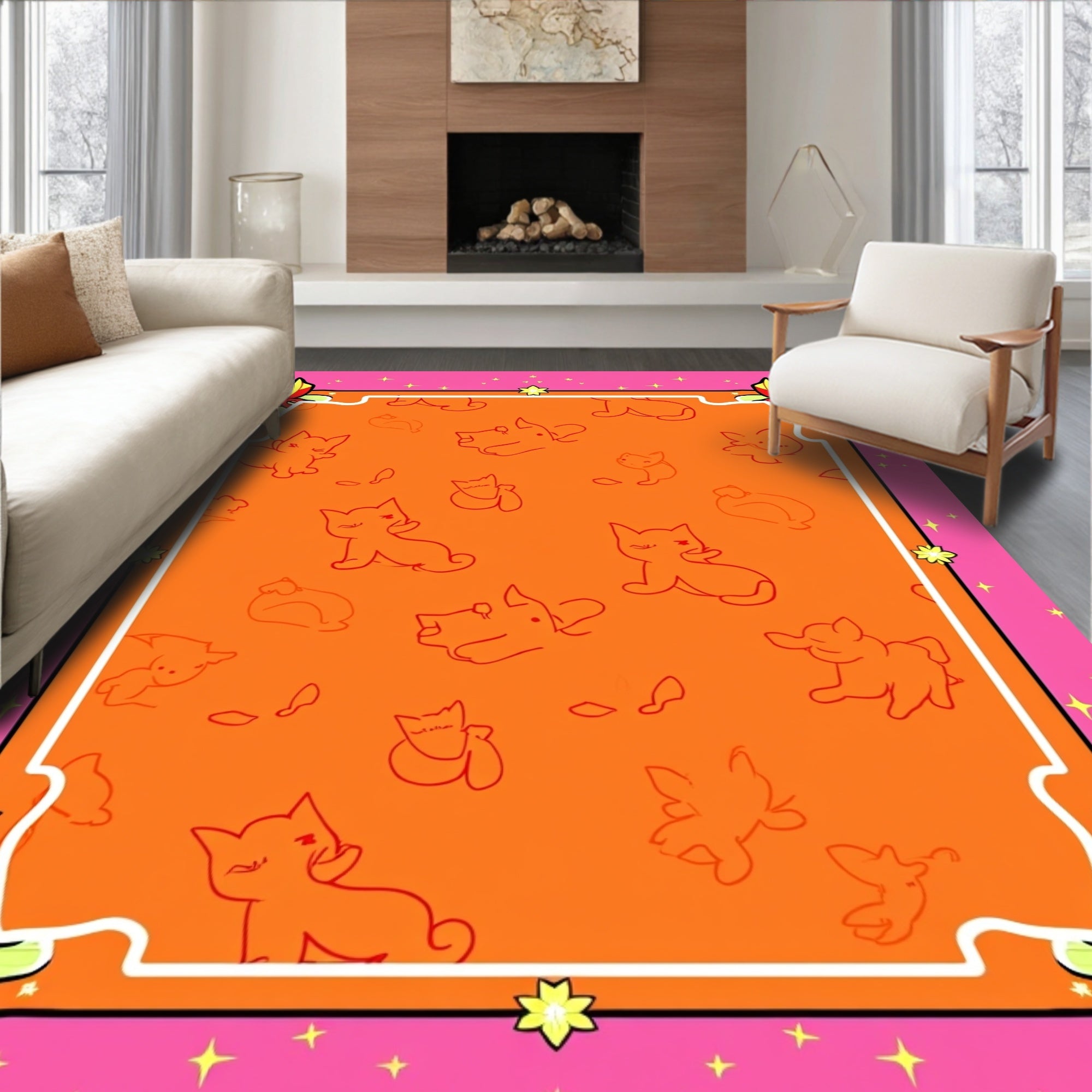 Ultra Soft Area Rug, Non Slip, Stain Resistant, Washable Area Rugs for Living Room, Bedroom, Illuminated Feline With Flashing Holiday(Orange) Overview: