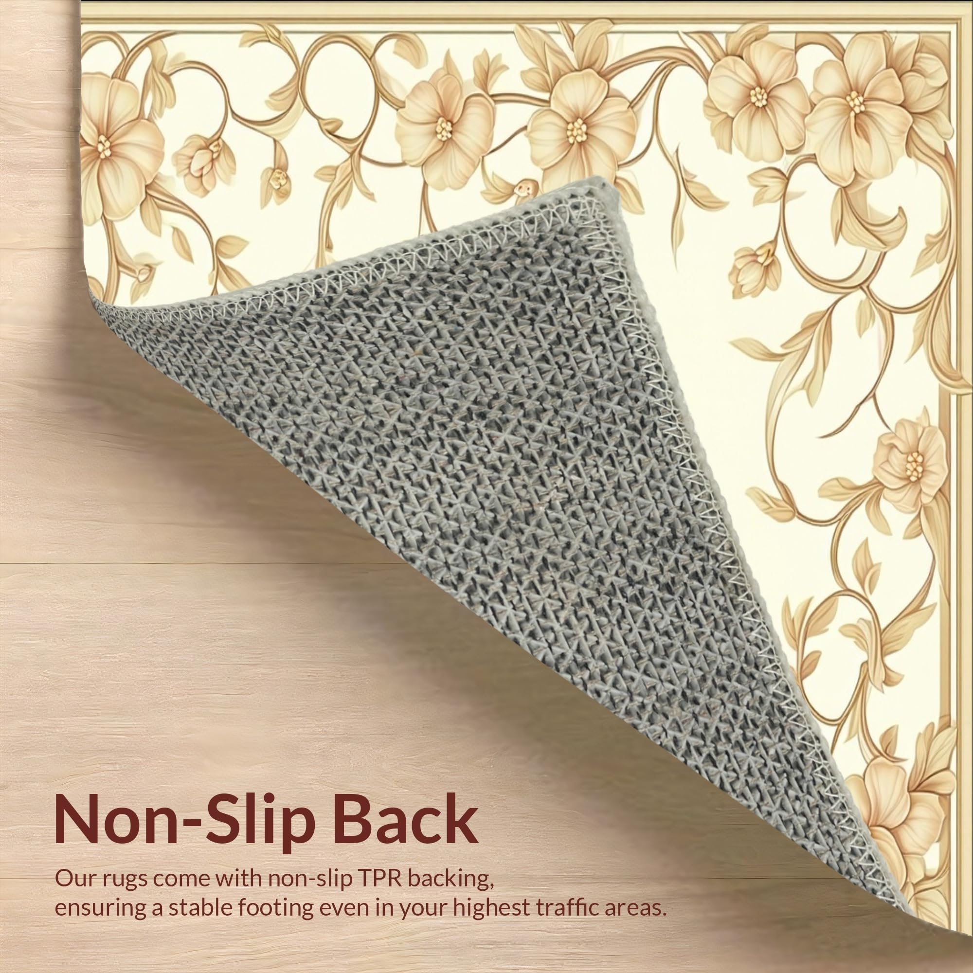 Ultra Soft Area Rug, Non Slip, Stain Resistant, Washable Area Rugs for Living Room, Bedroom, Imperial Collection Floral Elegant Classic Vine(Beige) Overview: