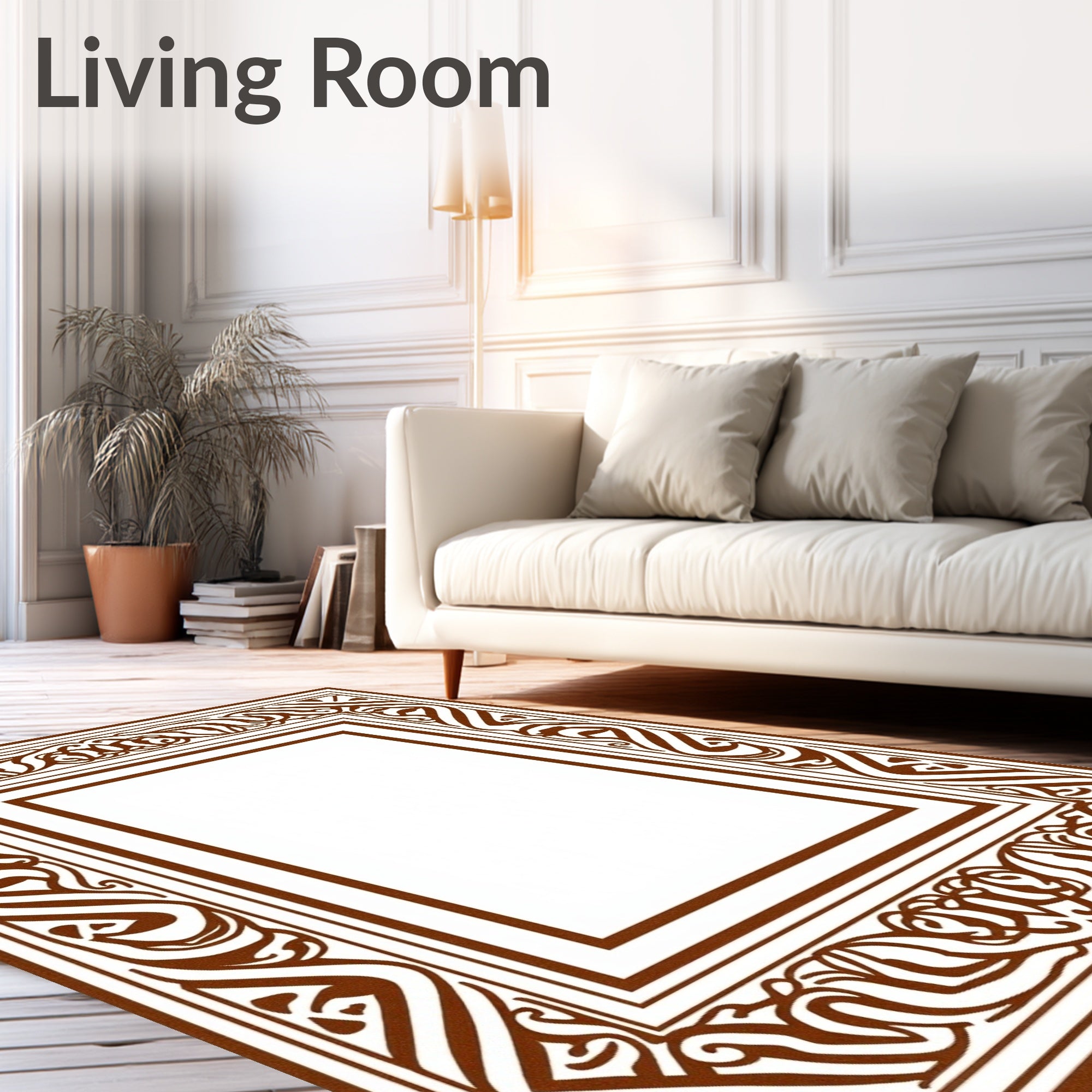 Ultra Soft Area Rug, Non Slip, Stain Resistant, Washable Area Rugs for Living Room, Bedroom, Inspired Leather Look with Interlocking Motifs(Brown) Overview: