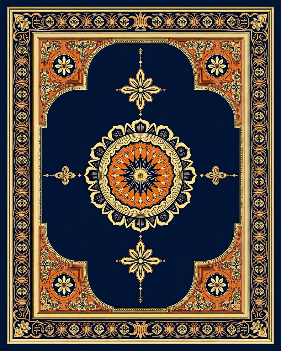 Inspired Medallion with Ornate Central Focal Points(Blue)
