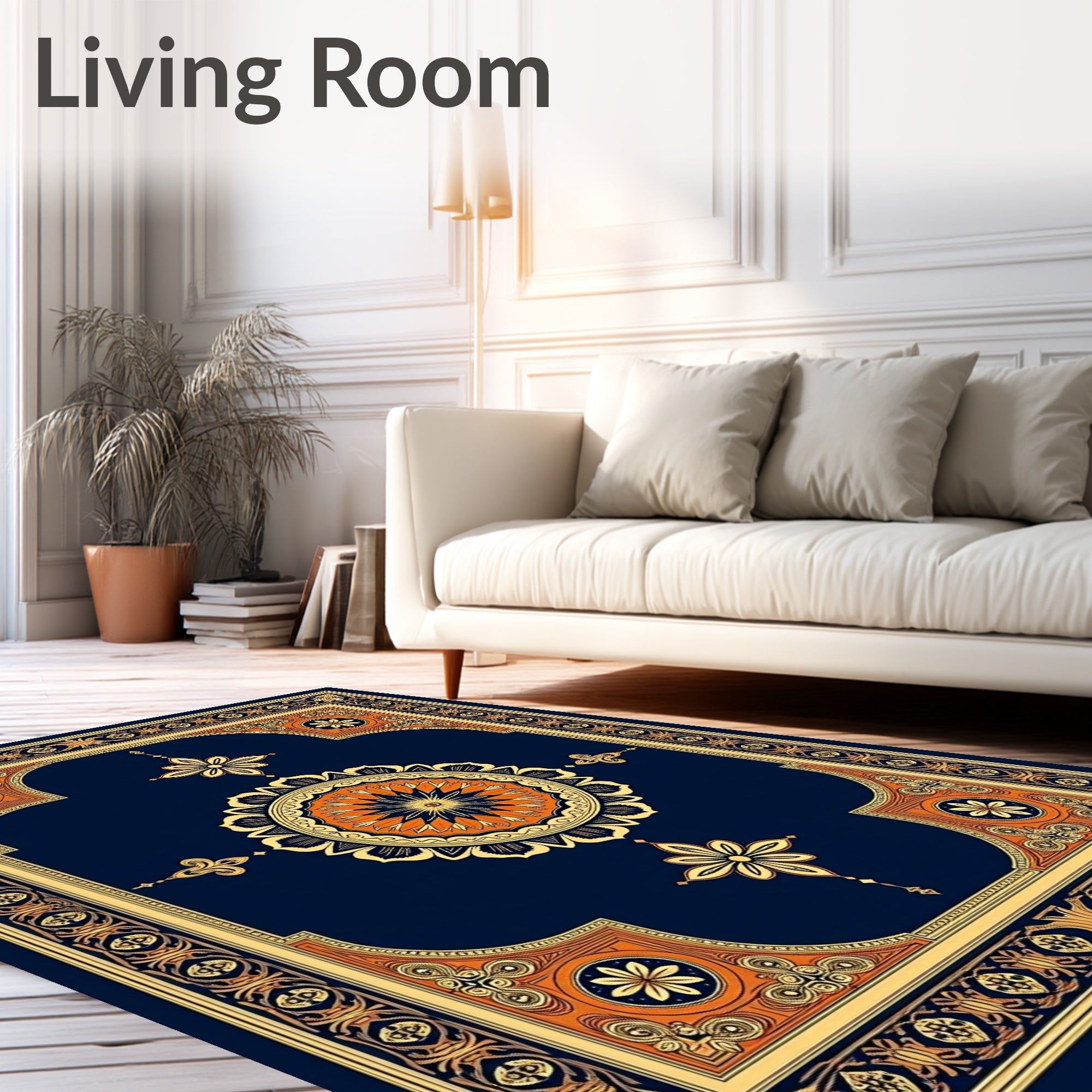 Ultra Soft Area Rug, Non Slip, Stain Resistant, Washable Area Rugs for Living Room, Bedroom, Inspired Medallion with Ornate Central Focal Points(Blue) Overview:
