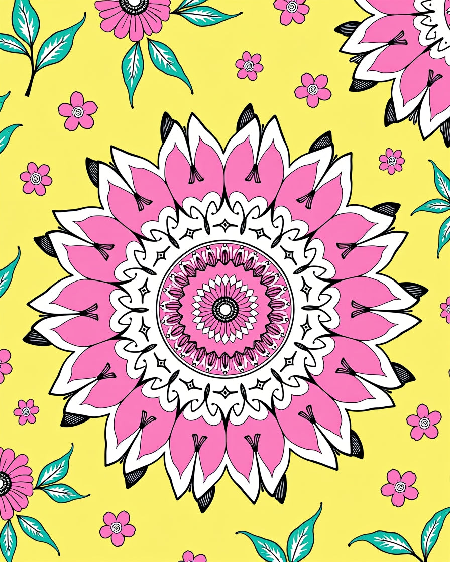 Inspired Symmetrical Botanical Motif with Petal Details(Yellow)