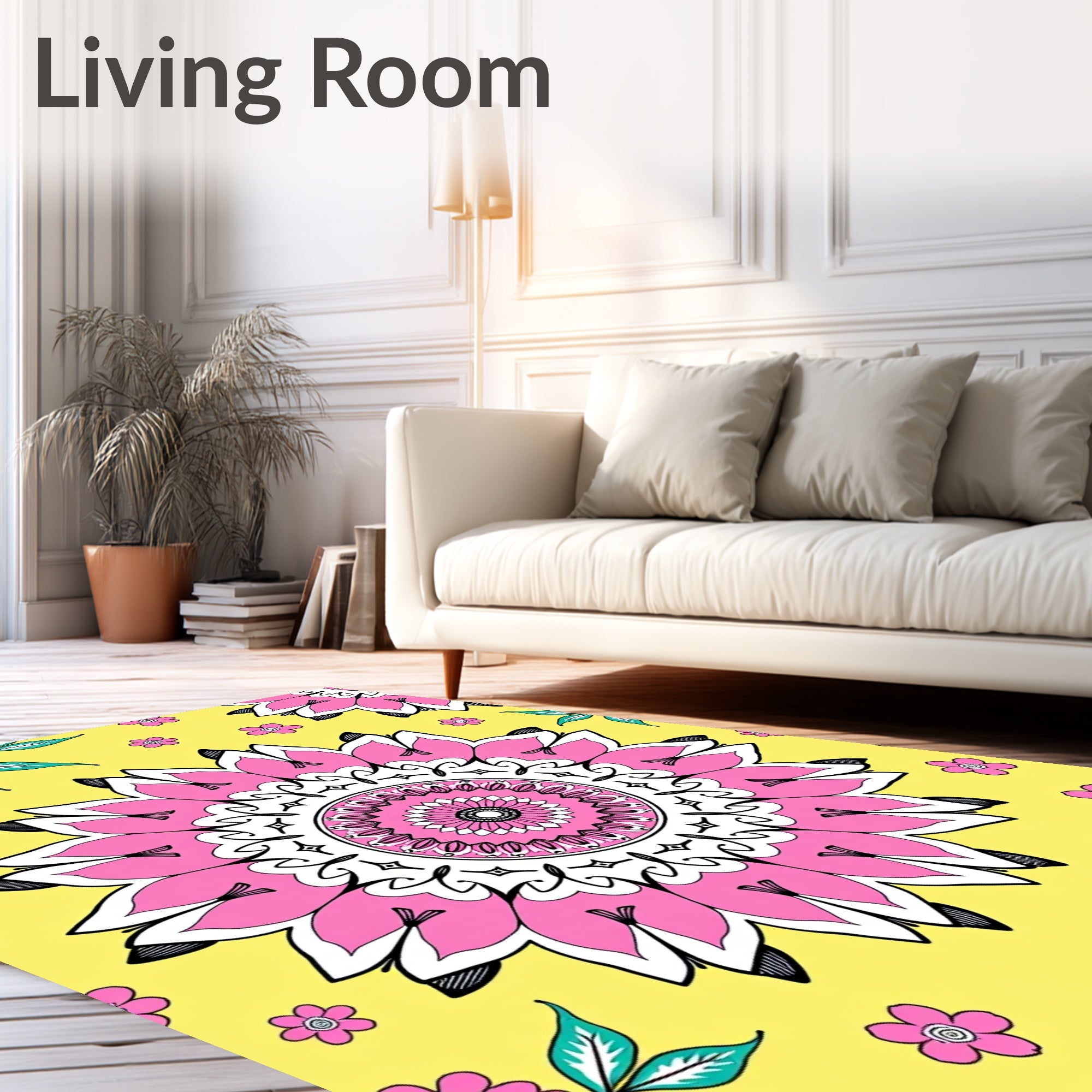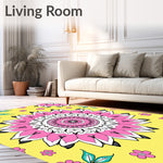 Ultra Soft Area Rug, Non Slip, Stain Resistant, Washable Area Rugs for Living Room, Bedroom, Inspired Symmetrical Botanical Motif with Petal Details(Yellow) Overview:
