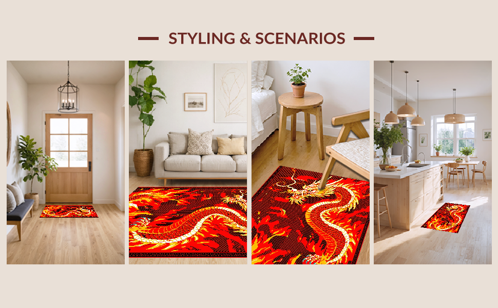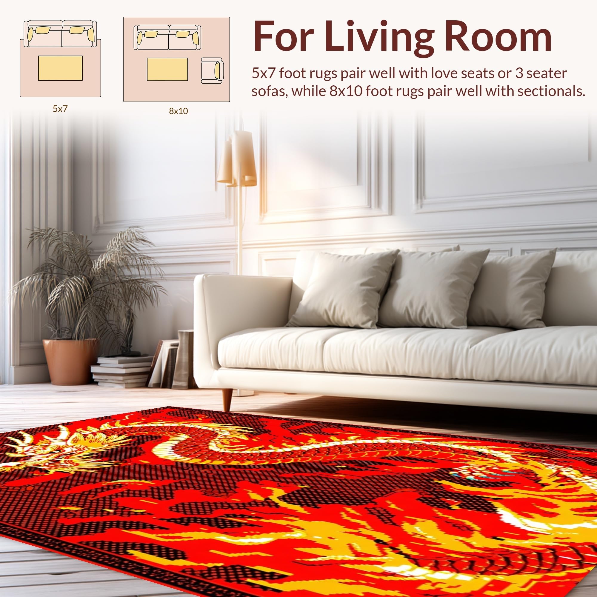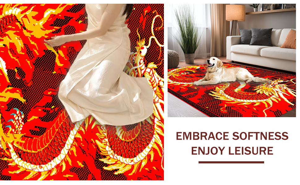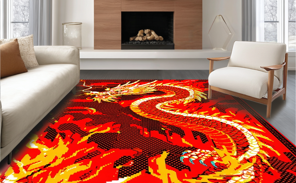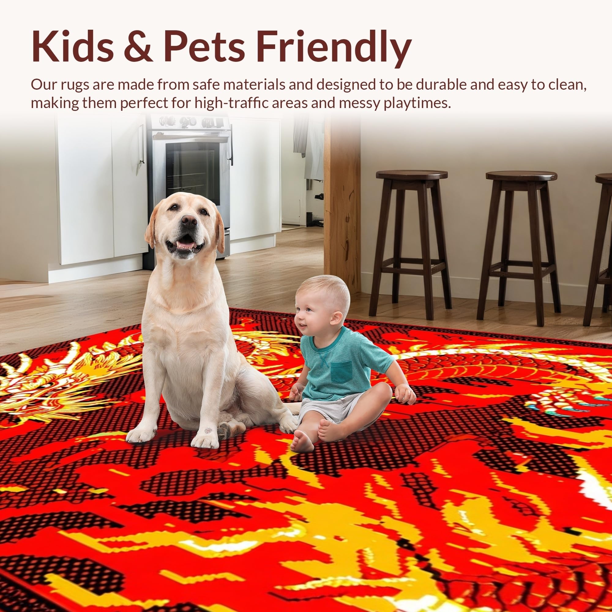 Ultra Soft Area Rug, Non Slip, Stain Resistant, Washable Area Rugs for Living Room, Bedroom, Intense Colorful Fantasy Artwork(Red) Overview: