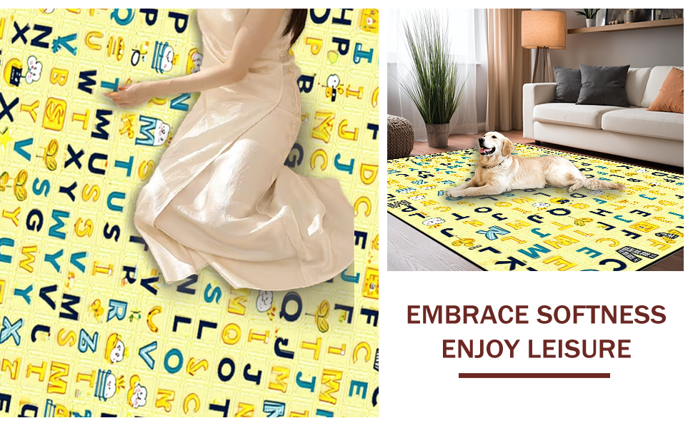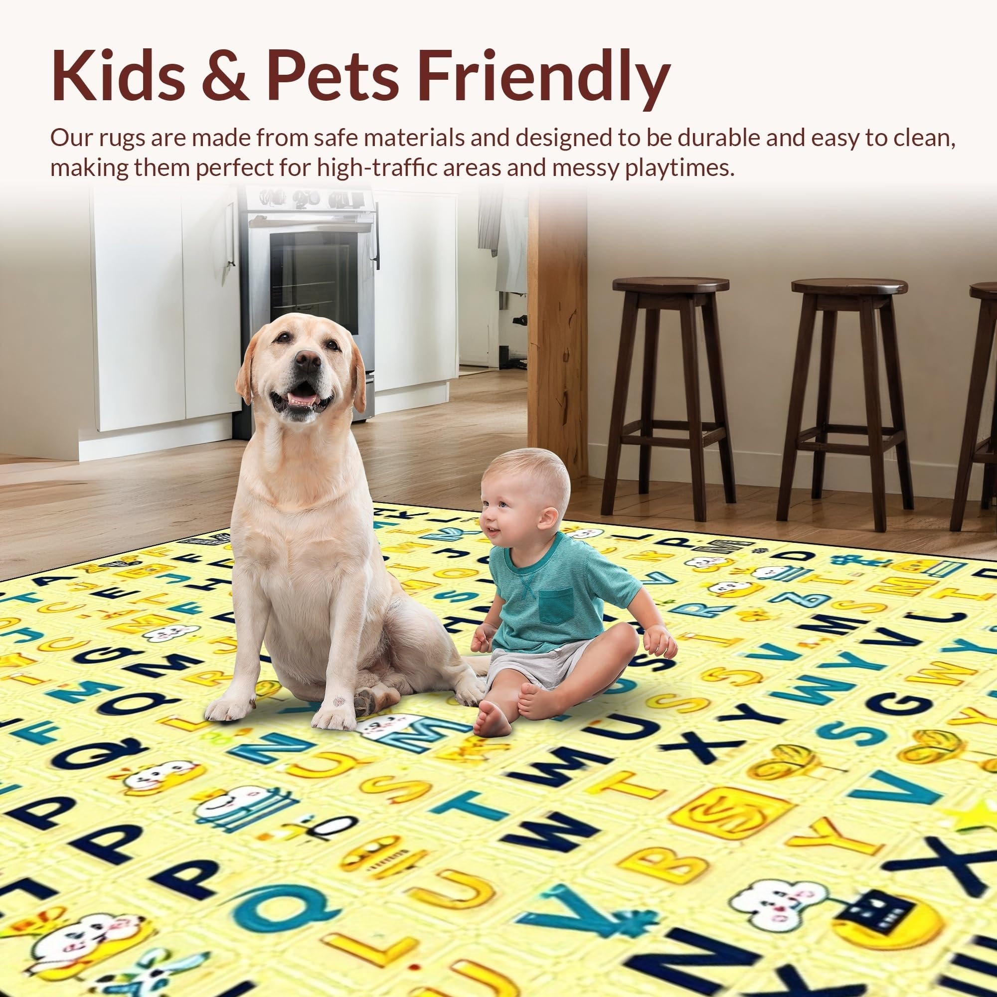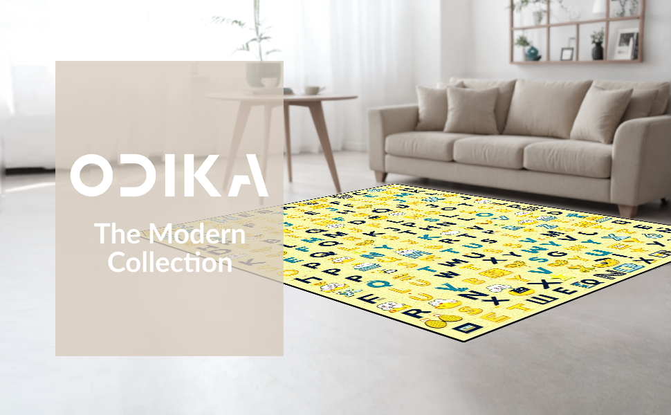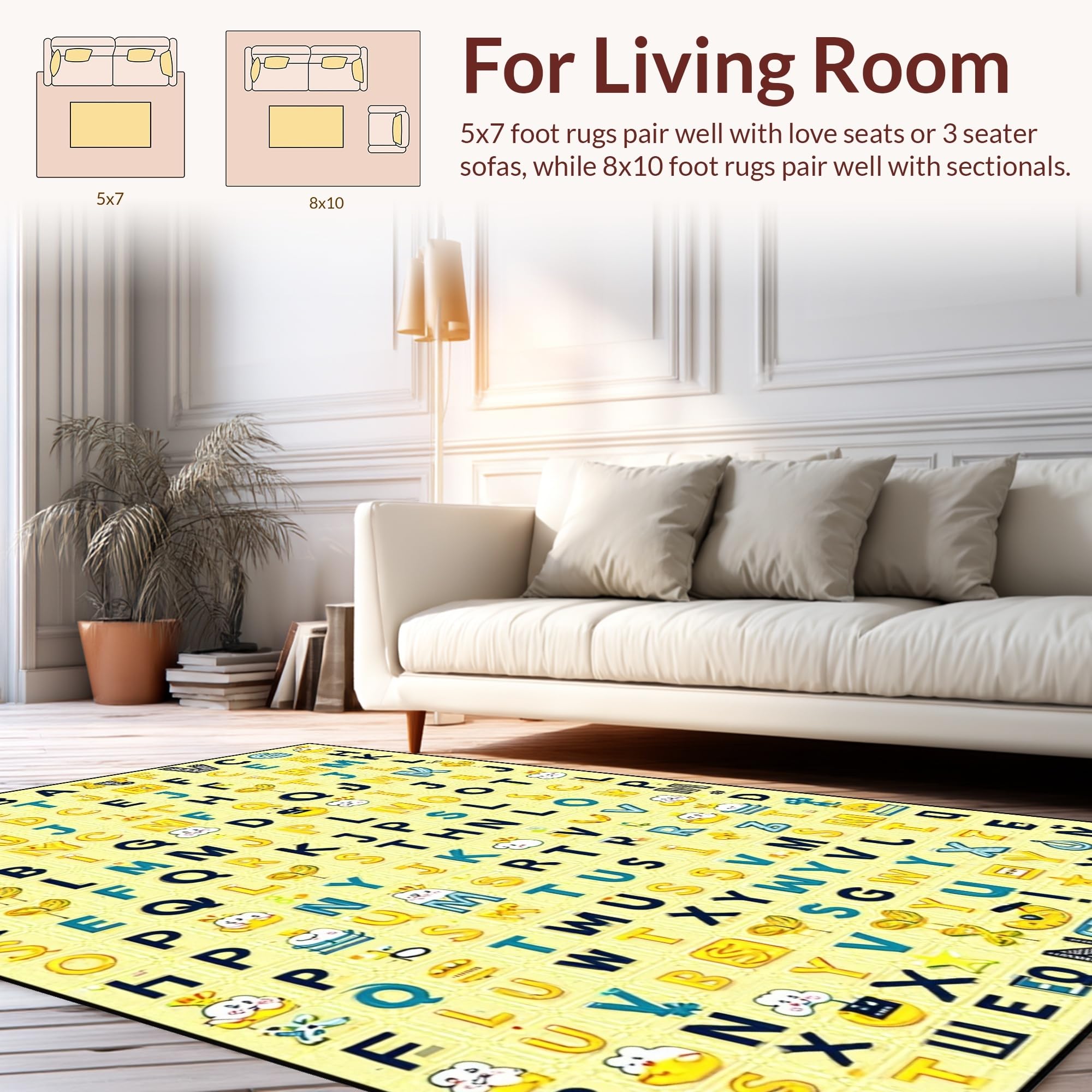 Ultra Soft Area Rug, Non Slip, Stain Resistant, Washable Area Rugs for Living Room, Bedroom, Interactive Cheerful Text Arrangement(Yellow) Overview: