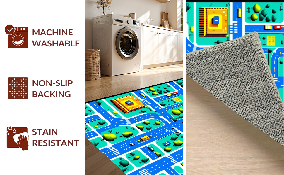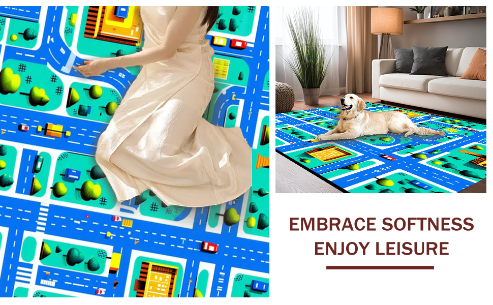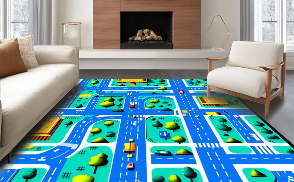 Ultra Soft Area Rug, Non Slip, Stain Resistant, Washable Area Rugs for Living Room, Bedroom, Interactive Colorful City Layout(Blue) Overview:
