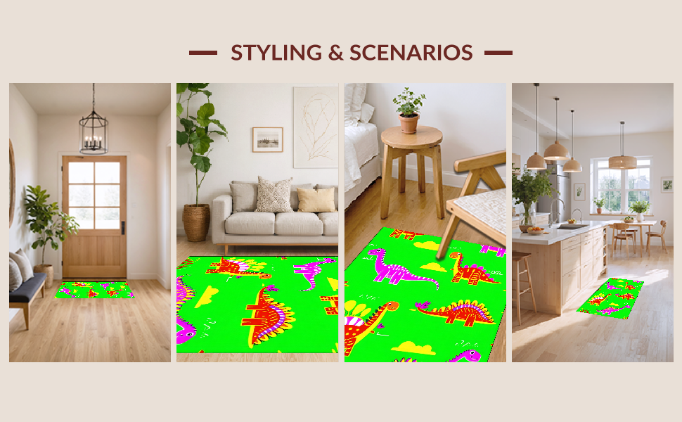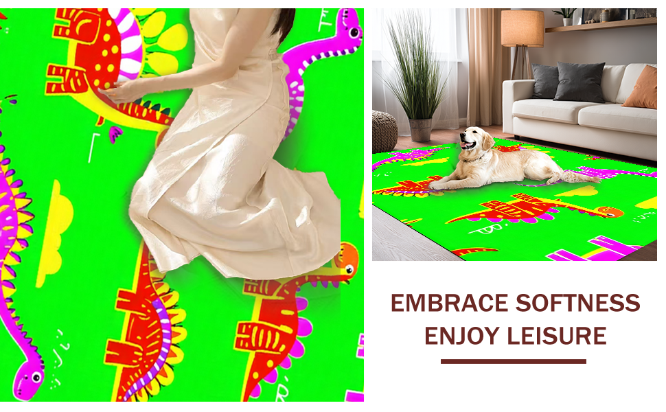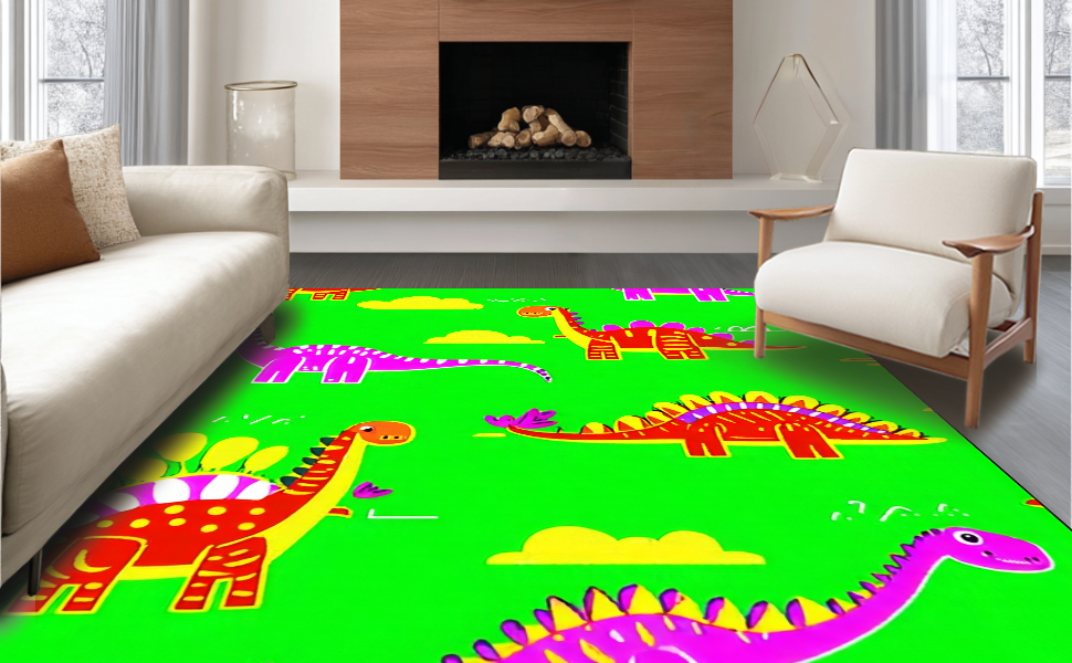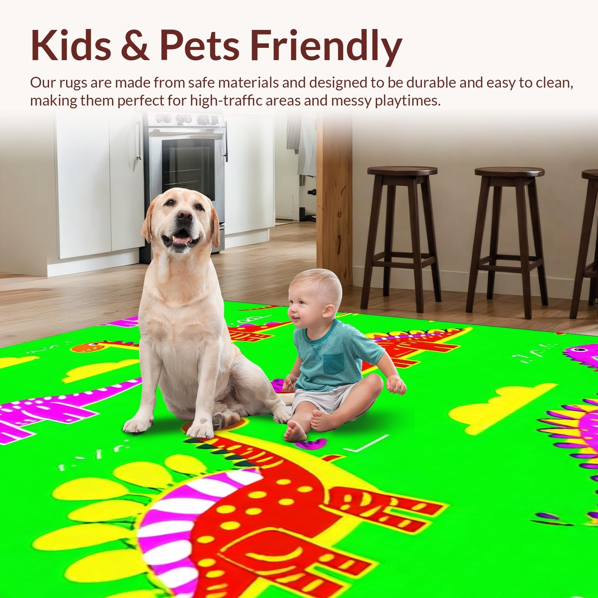 Ultra Soft Area Rug, Non Slip, Stain Resistant, Washable Area Rugs for Living Room, Bedroom, Interactive Learning Jungle Aesthetic(Green) Overview: