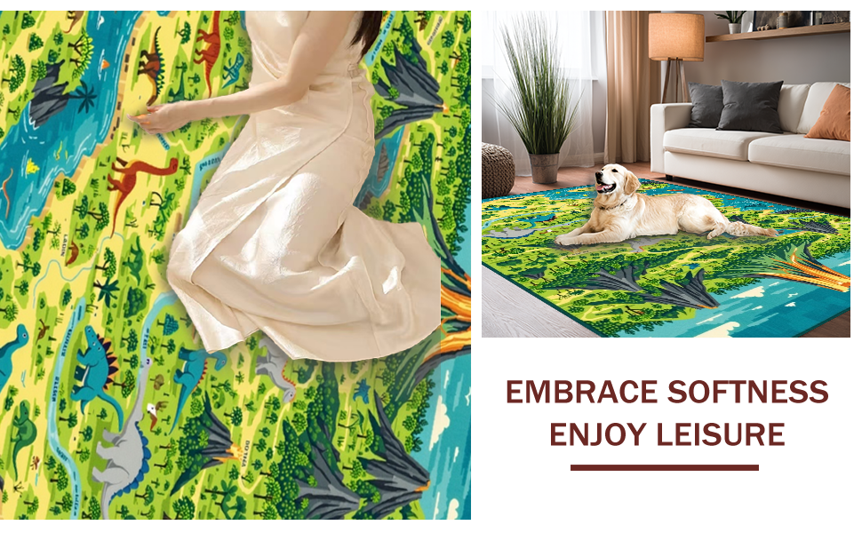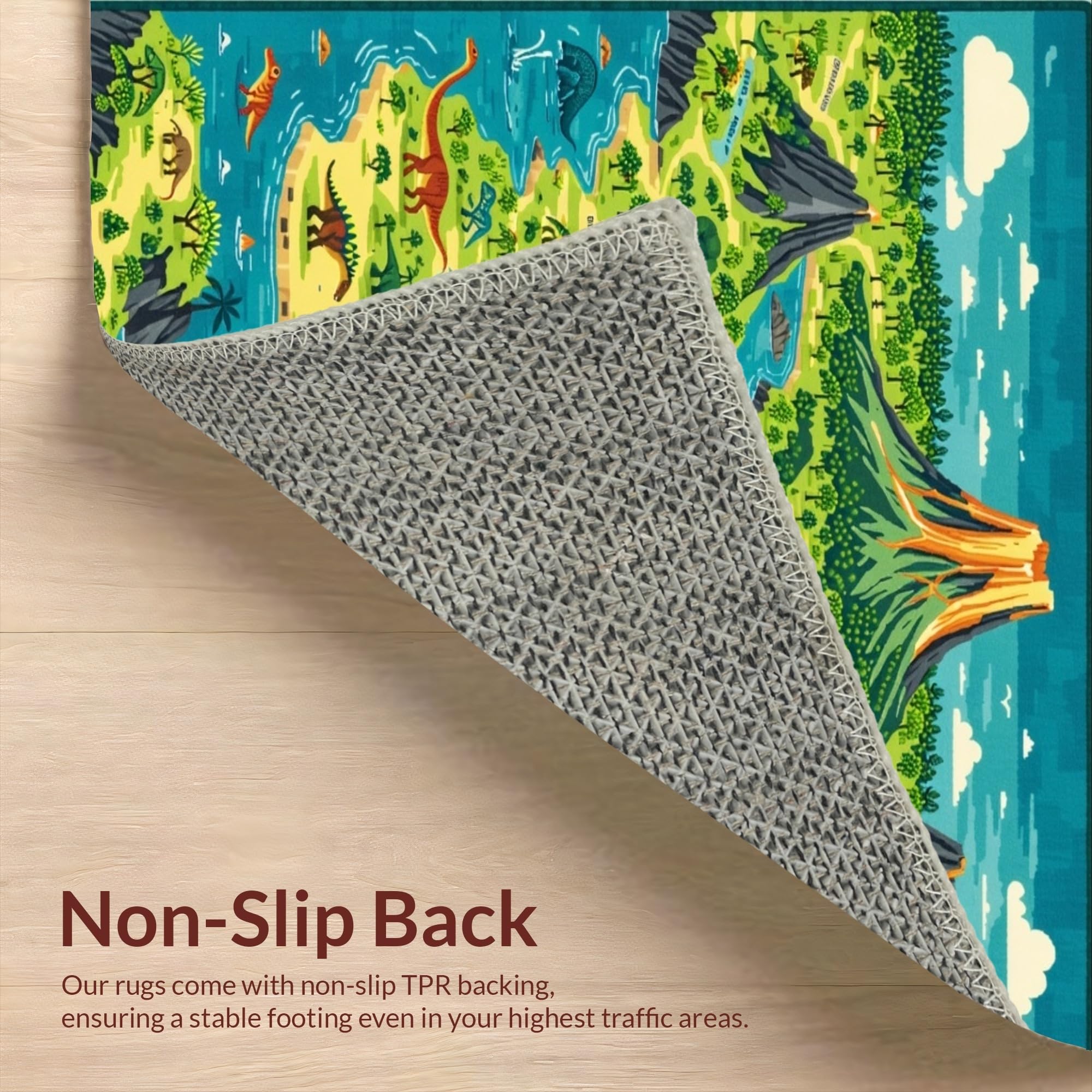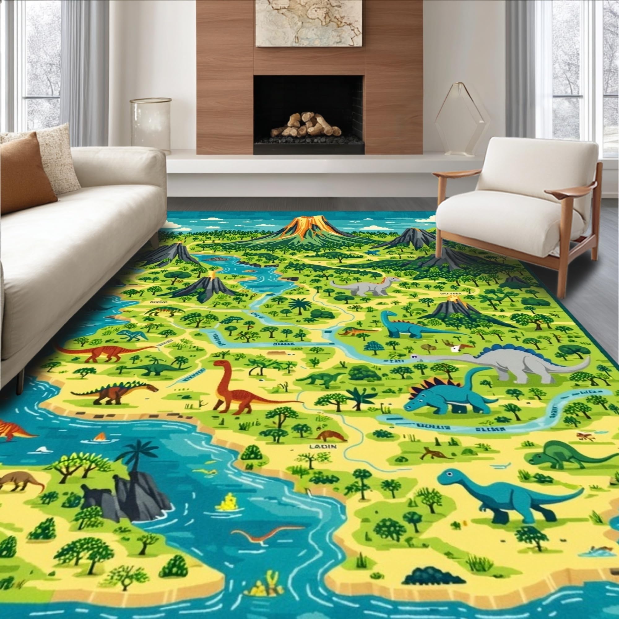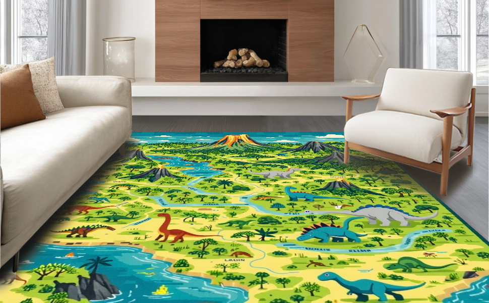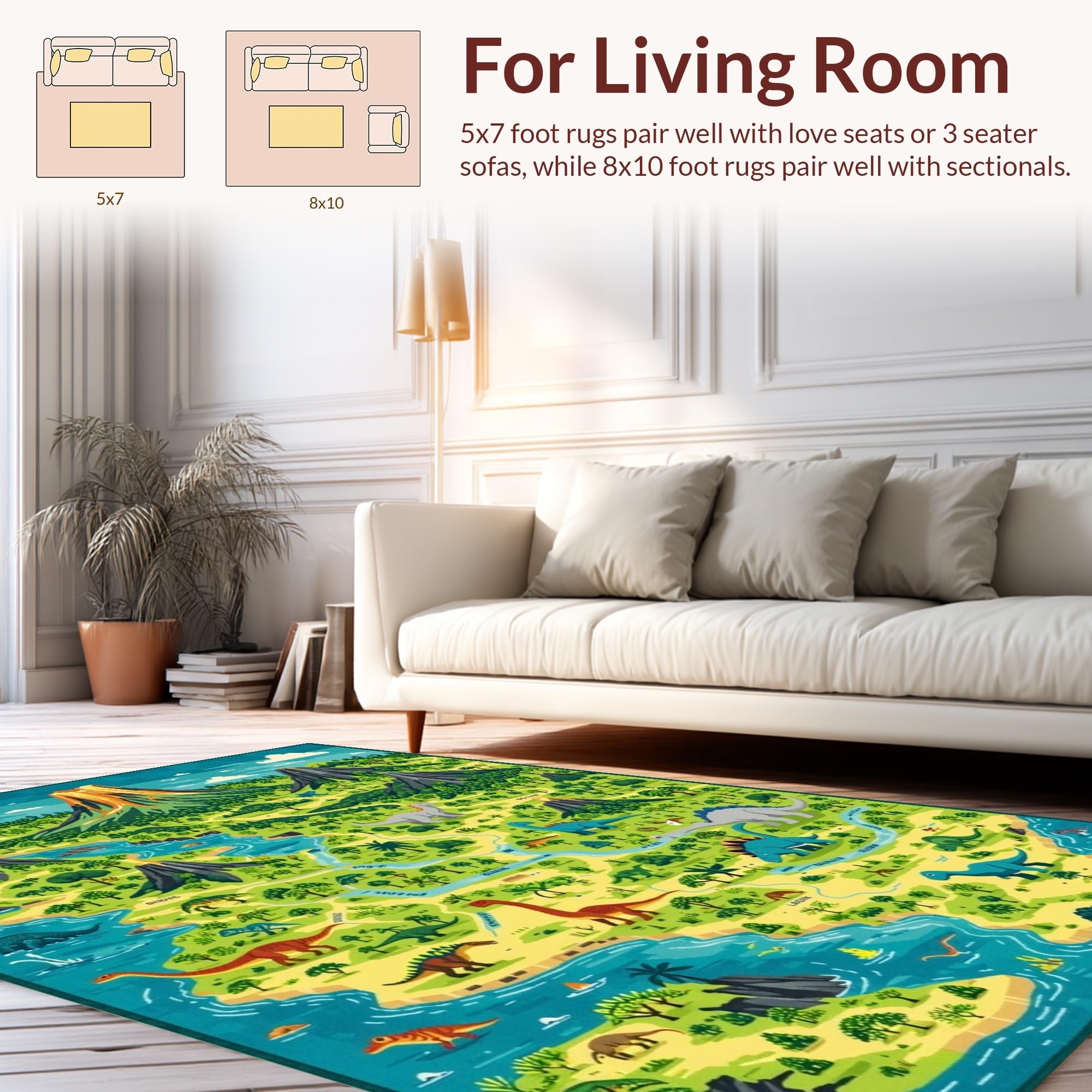 Ultra Soft Area Rug, Non Slip, Stain Resistant, Washable Area Rugs for Living Room, Bedroom, Interactive Prehistoric Landscape Motif(Green) Overview: