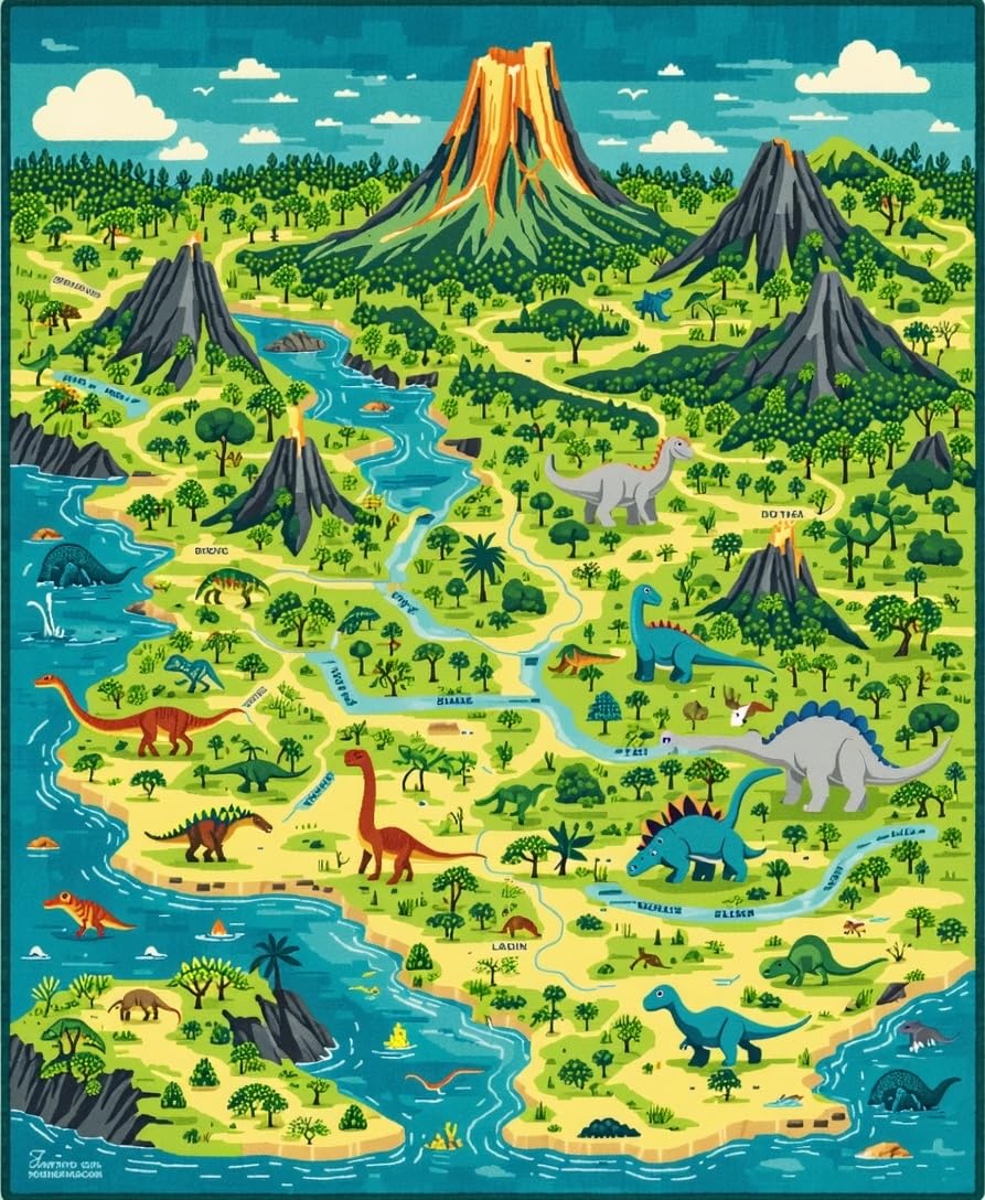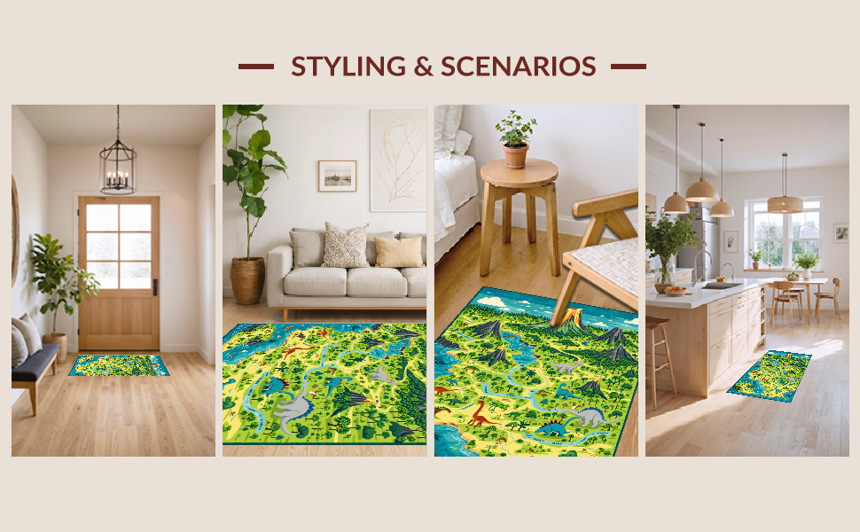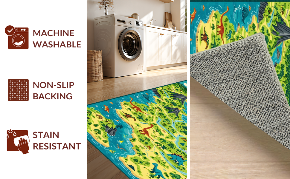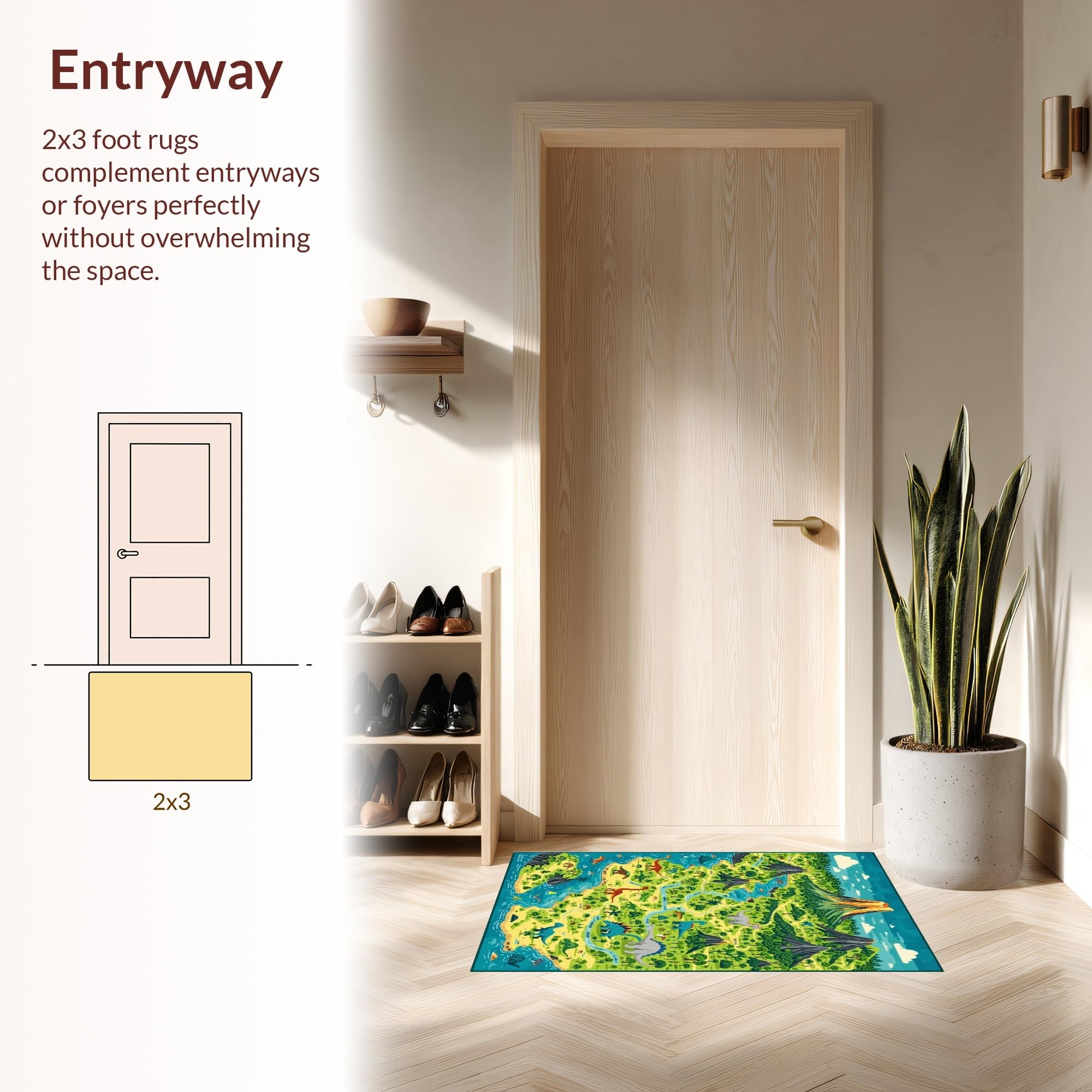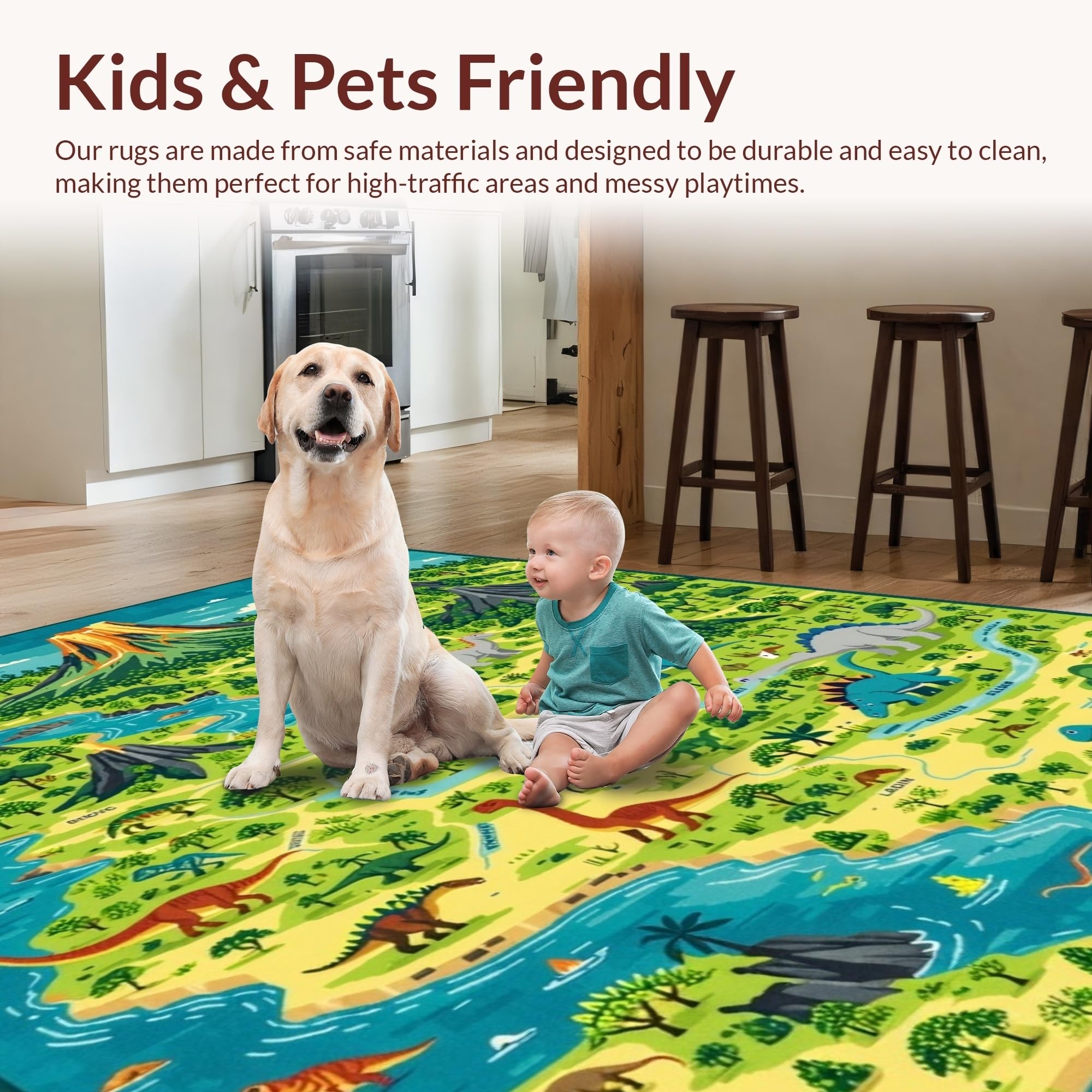 Ultra Soft Area Rug, Non Slip, Stain Resistant, Washable Area Rugs for Living Room, Bedroom, Interactive Prehistoric Landscape Motif(Green) Overview: