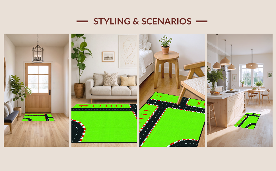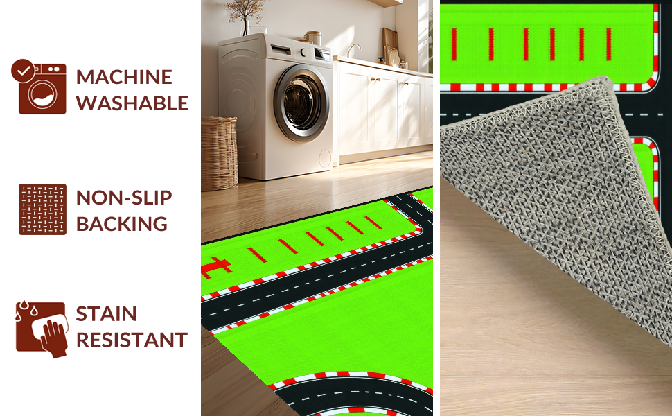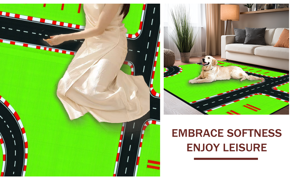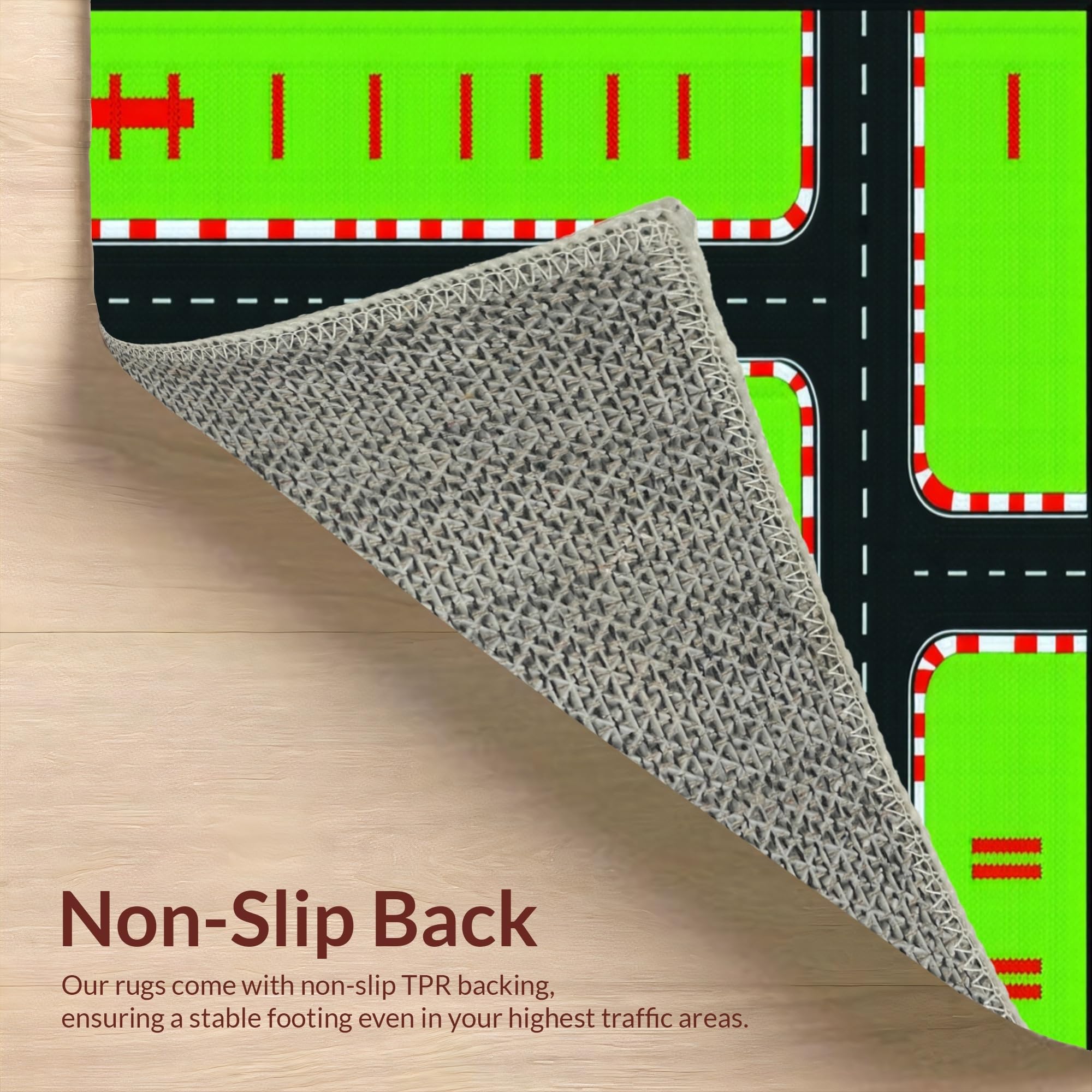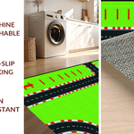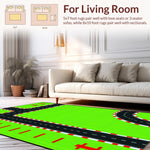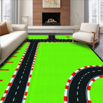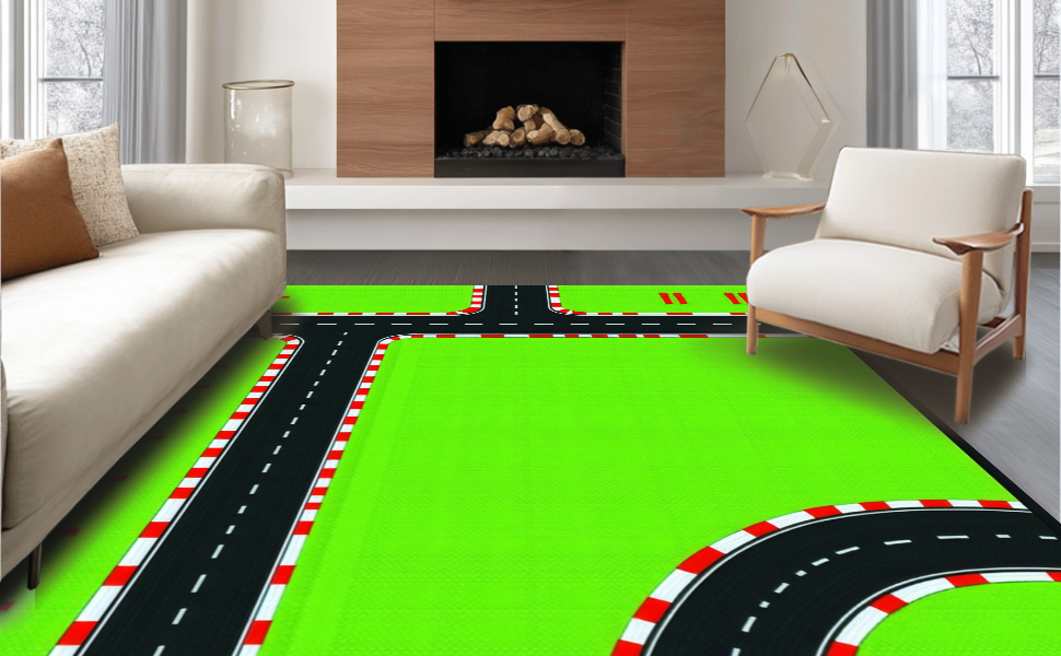 Ultra Soft Area Rug, Non Slip, Stain Resistant, Washable Area Rugs for Living Room, Bedroom, Interactive Racing Scene Illustration(Green) Overview: