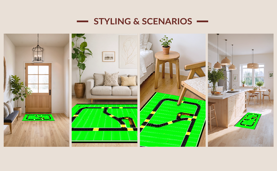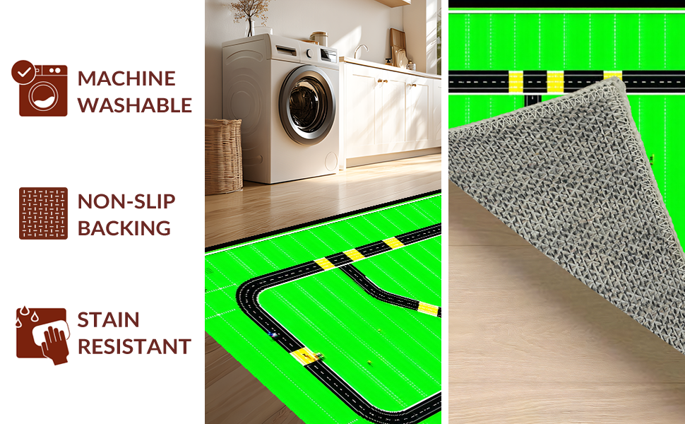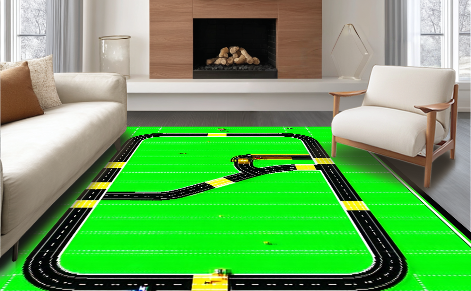 Ultra Soft Area Rug, Non Slip, Stain Resistant, Washable Area Rugs for Living Room, Bedroom, Interactive Road Map for Kids(Green) Overview: