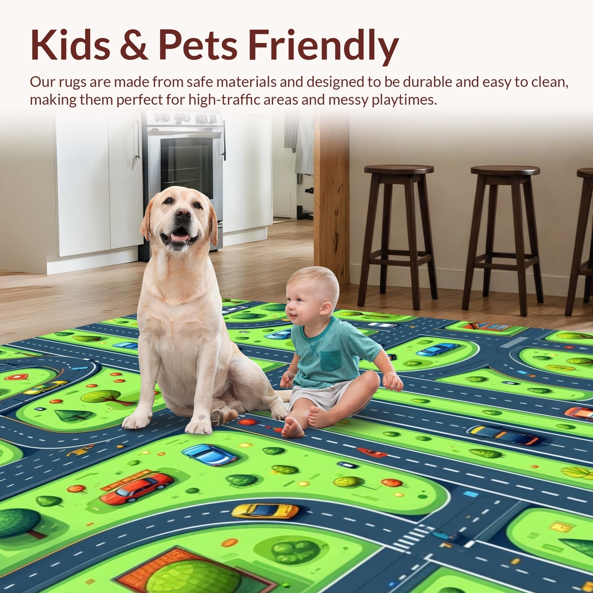 Ultra Soft Area Rug, Non Slip, Stain Resistant, Washable Area Rugs for Living Room, Bedroom, Interactive Road Traffic Playmat for Bedroom Carpet(Blue) Overview: