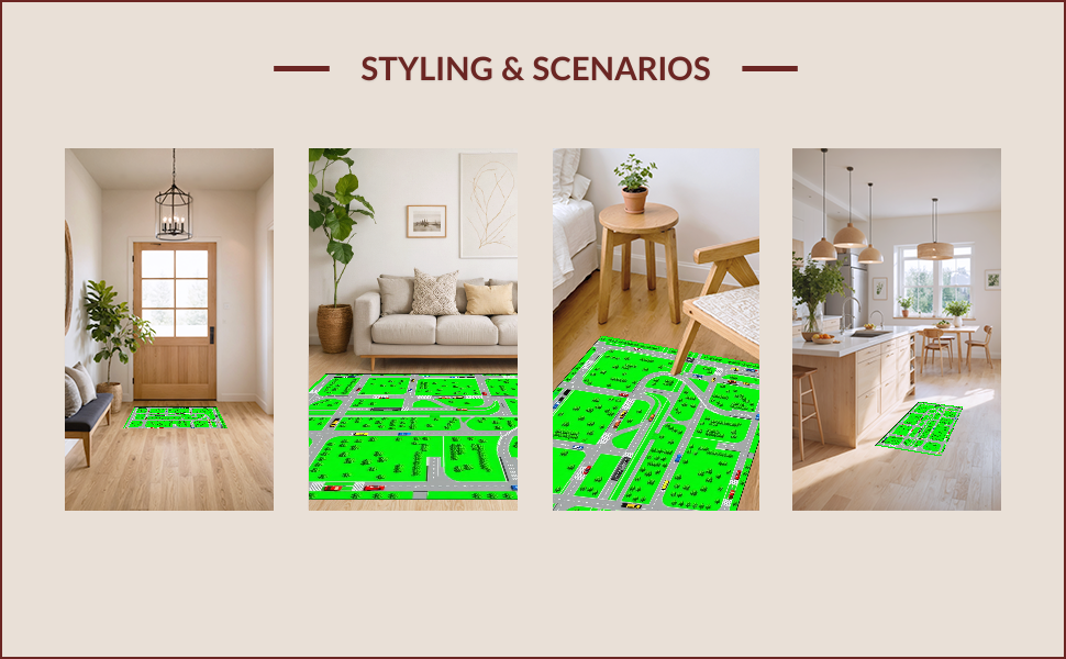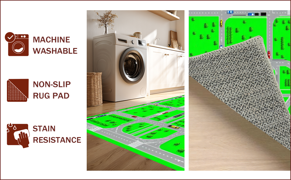 Ultra Soft Area Rug, Non Slip, Stain Resistant, Washable Area Rugs for Living Room, Bedroom, Interactive Roadway Adventure Theme(Green) Overview: