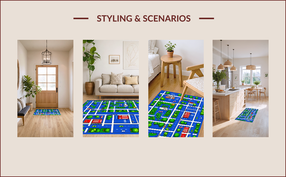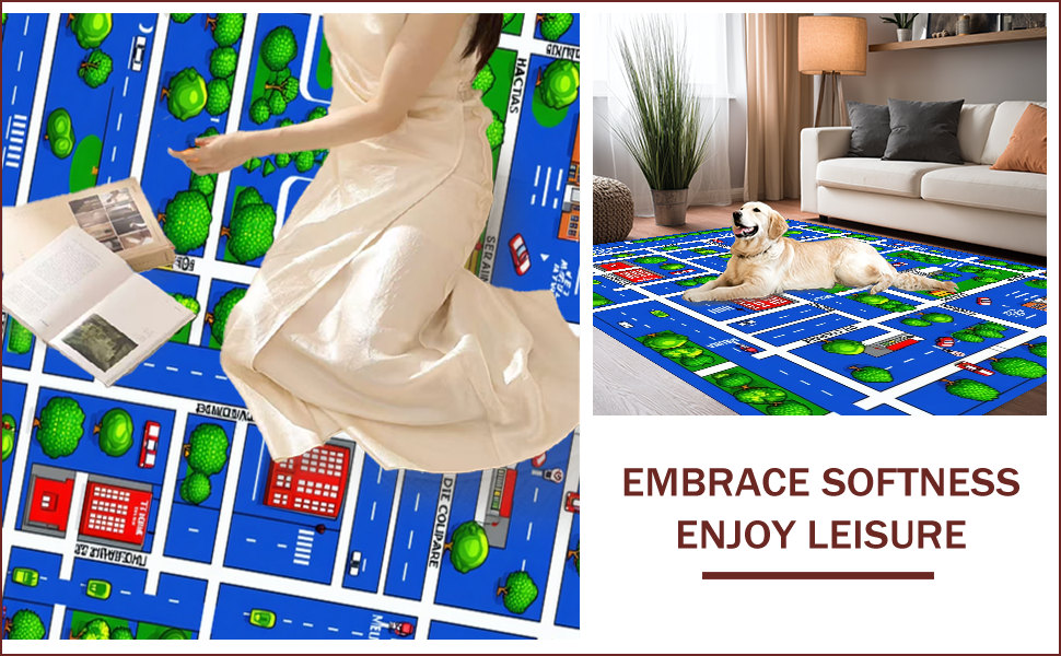 Ultra Soft Area Rug, Non Slip, Stain Resistant, Washable Area Rugs for Living Room, Bedroom, Interactive Urban Adventure Mat(Green) Overview: