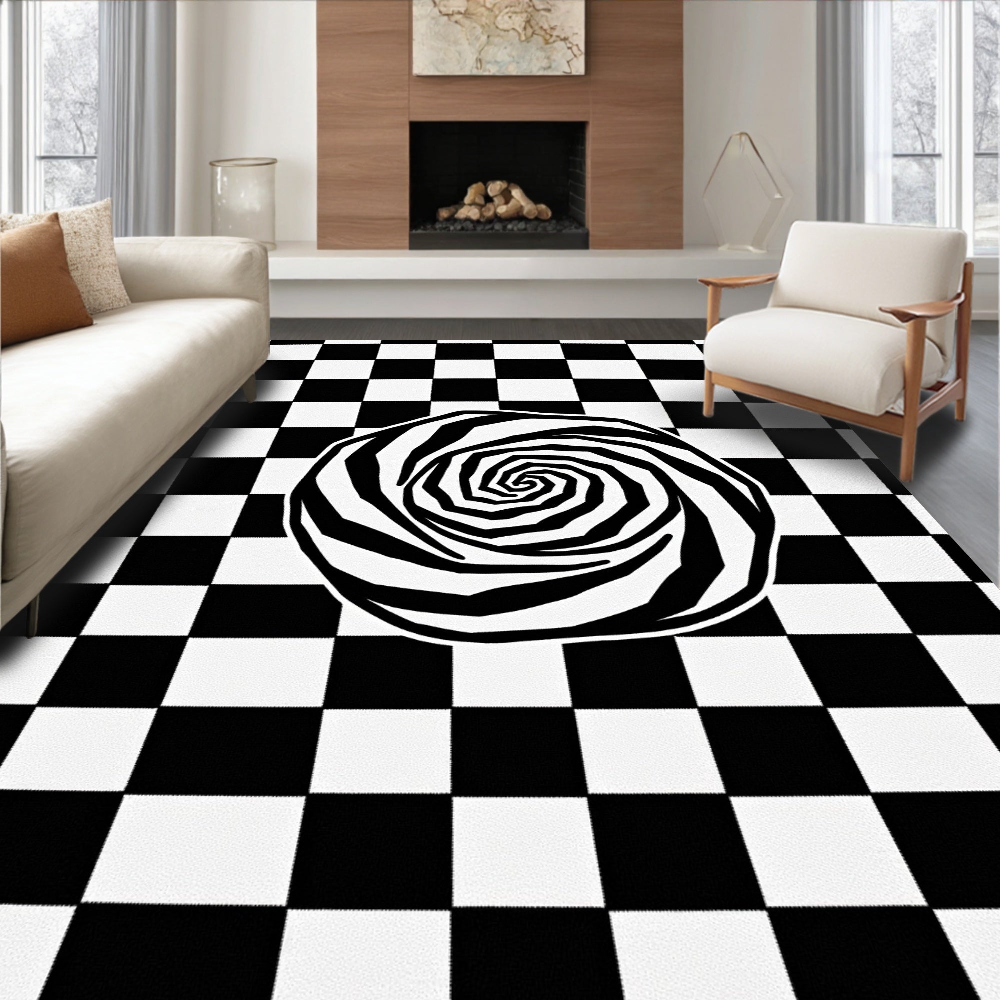 Ultra Soft Area Rug, Non Slip, Stain Resistant, Washable Area Rugs for Living Room, Bedroom, Interlocking Checkerboard Vortex Illusion Surface(Black) Overview: