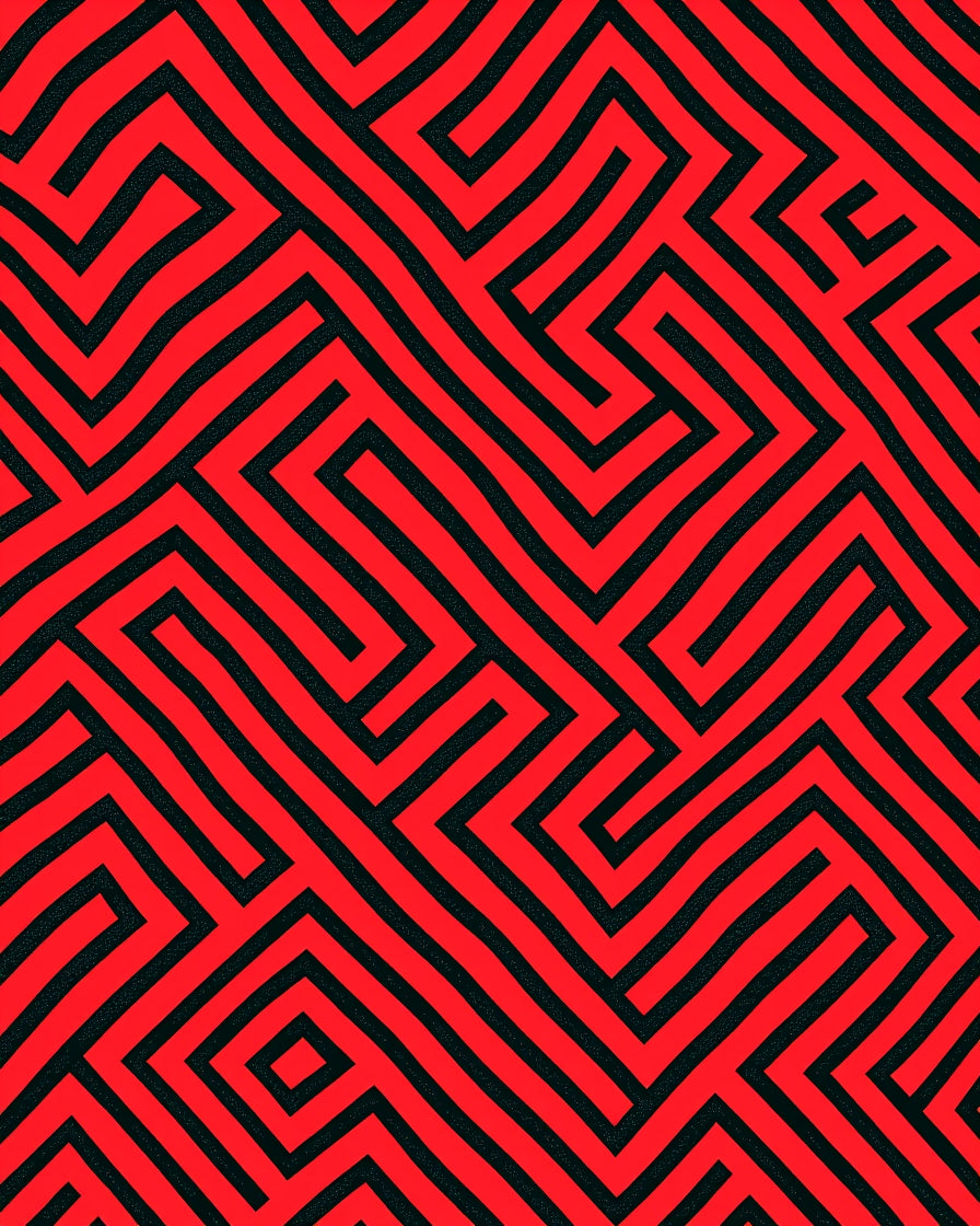 Interlocking Chevron Mosaic with Elegant Symmetrical Stripes and Curves(Red)