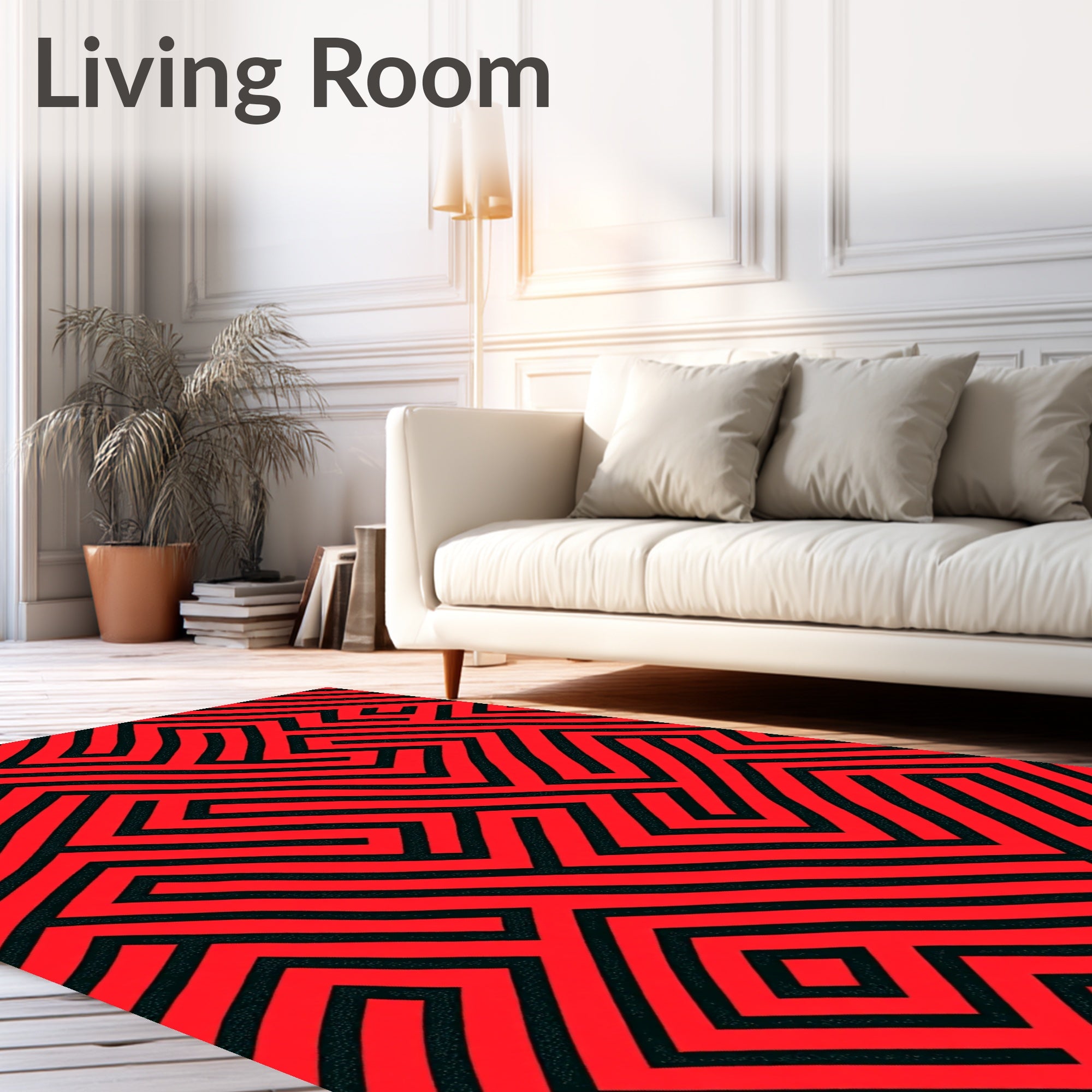 Ultra Soft Area Rug, Non Slip, Stain Resistant, Washable Area Rugs for Living Room, Bedroom, Interlocking Chevron Mosaic with Elegant Symmetrical Stripes and Curves(Red) Overview:
