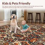 Ultra Soft Area Rug, Non Slip, Stain Resistant, Washable Area Rugs for Living Room, Bedroom, Intricate Boho Area Featuring Geometric Floral(Orange) Overview: