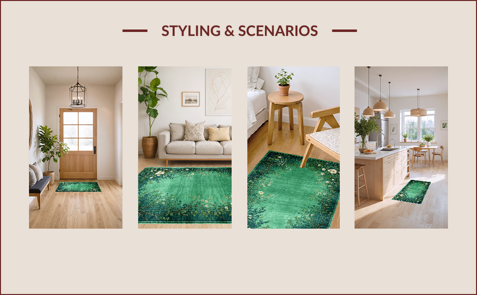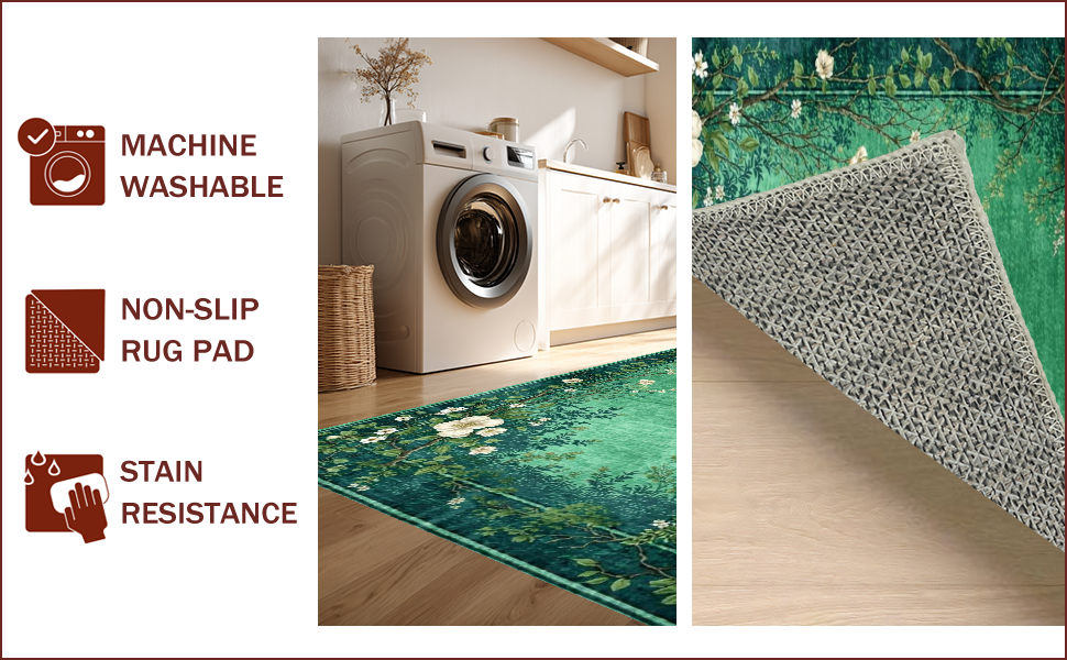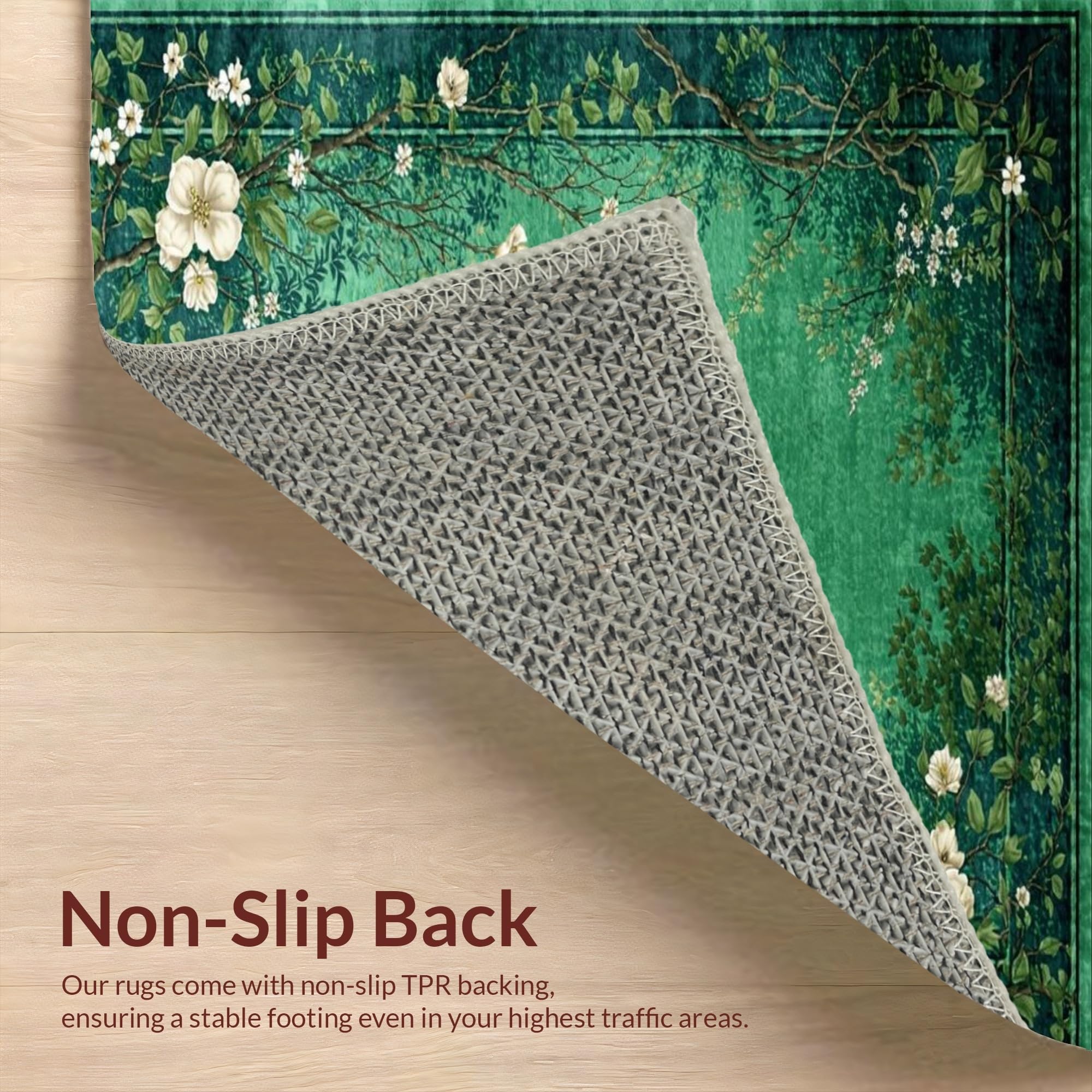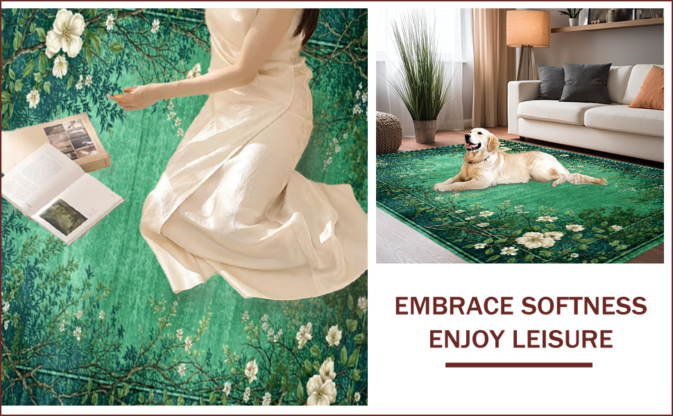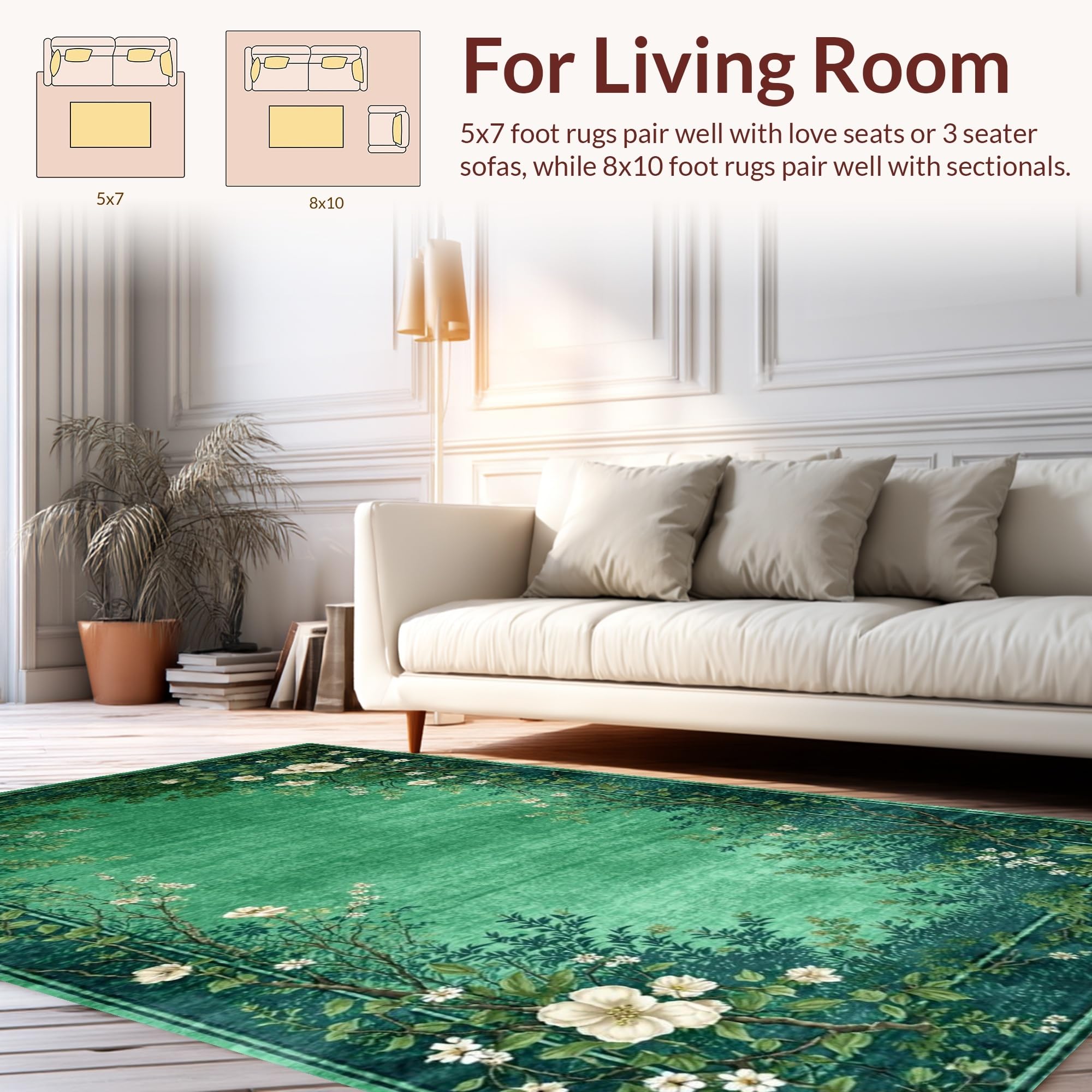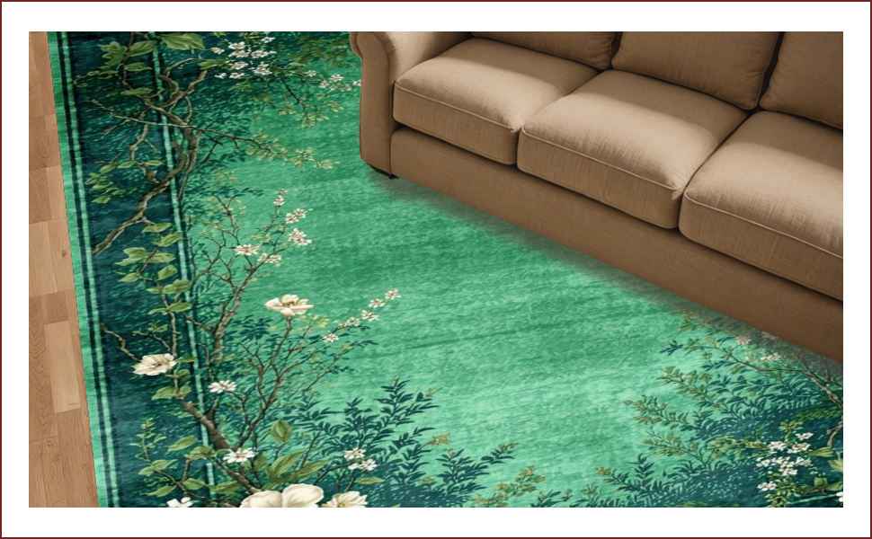 Ultra Soft Area Rug, Non Slip, Stain Resistant, Washable Area Rugs for Living Room, Bedroom, Intricate Botanical Leaf Motif(Green) Overview: