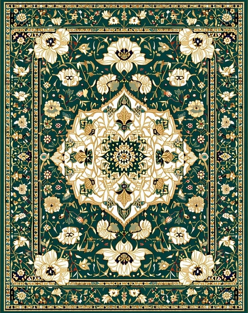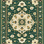 Intricate Floral Area with Geometric Design in Rich Green and Gold(Green)