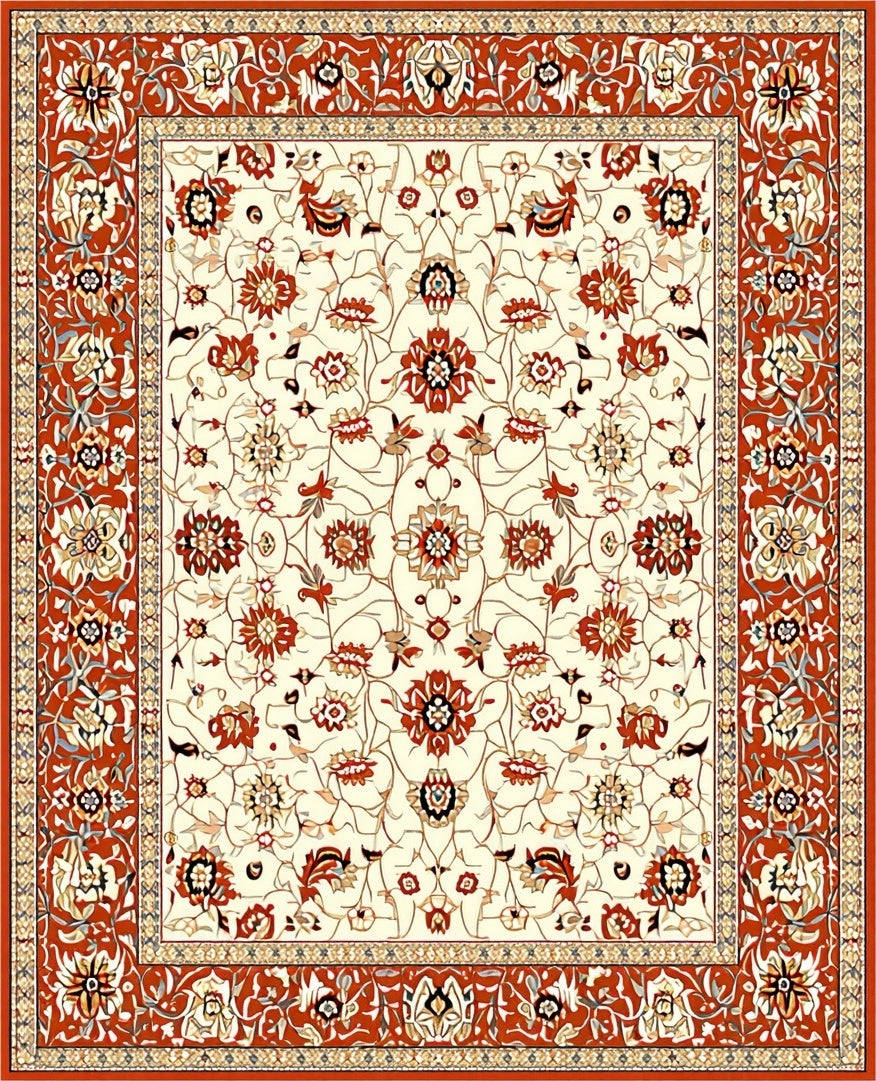 Intricate Floral Design Area in Rich Terracotta and Beige Tones(Beige)