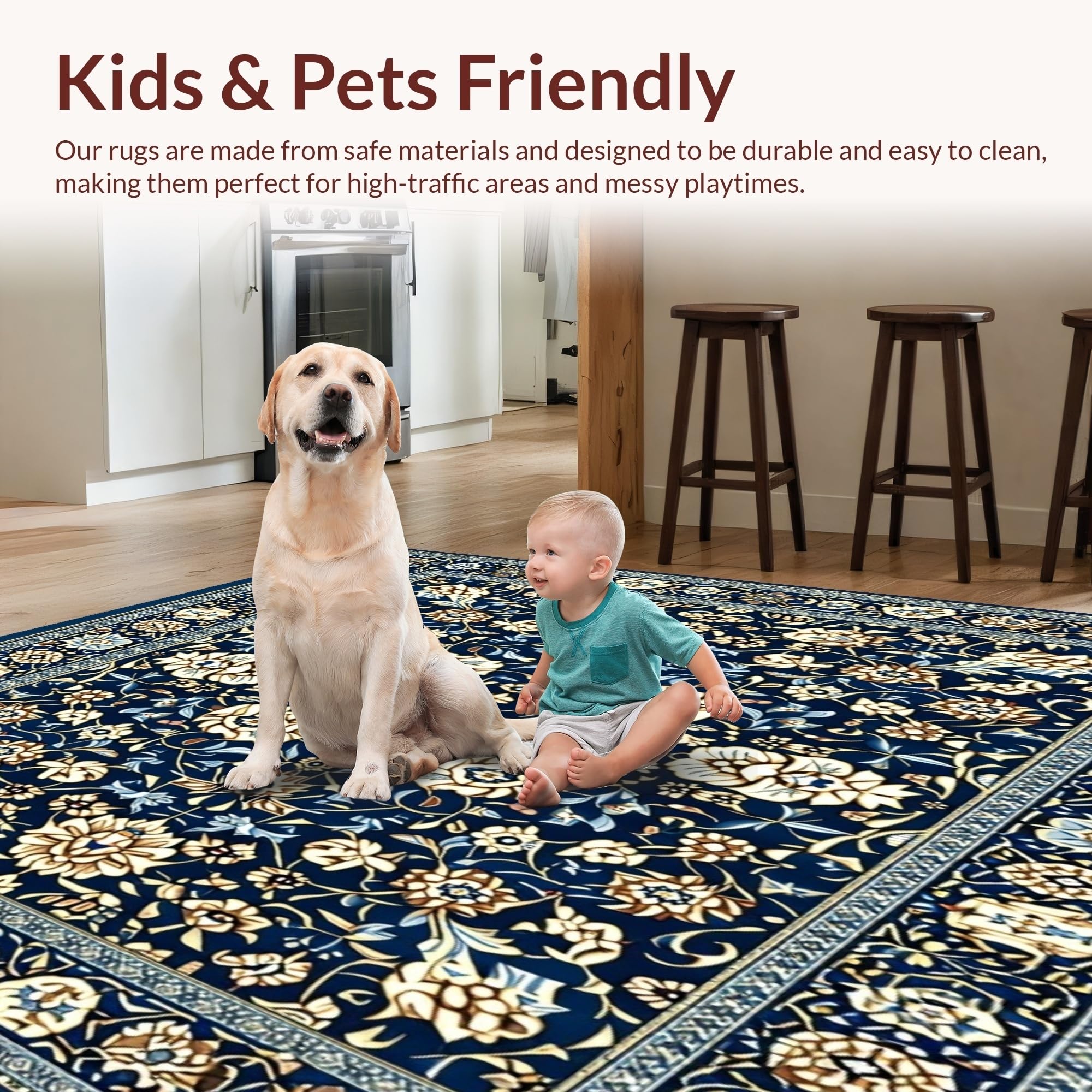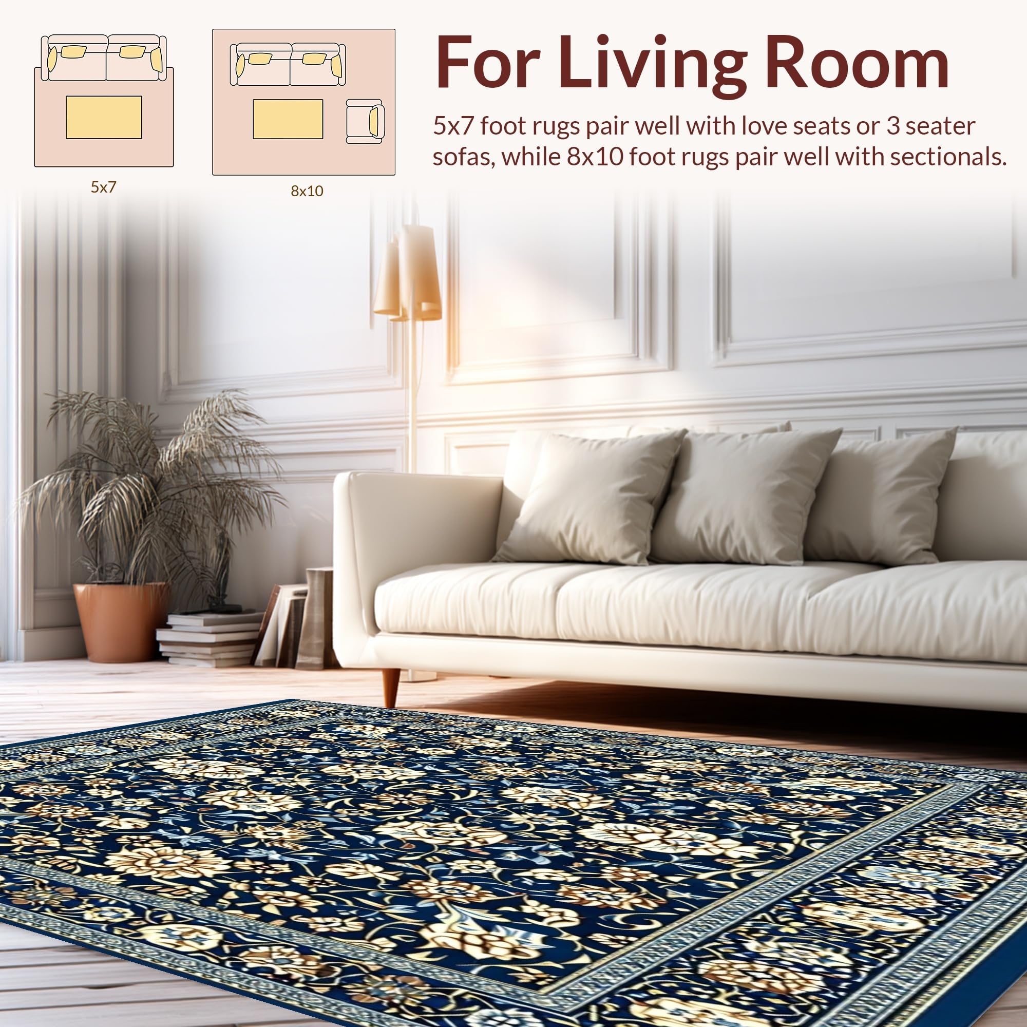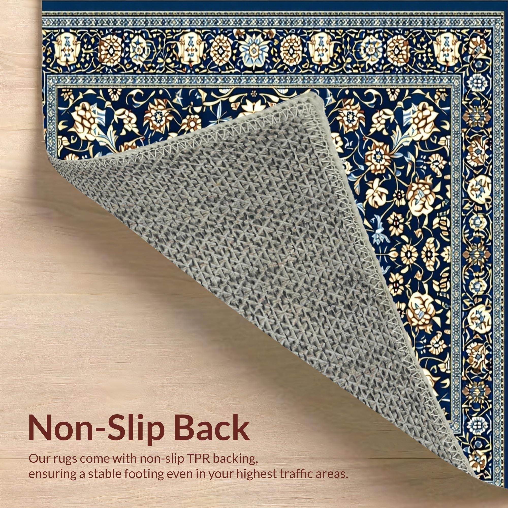 Ultra Soft Area Rug, Non Slip, Stain Resistant, Washable Area Rugs for Living Room, Bedroom, Intricate Floral Elegance Area with Blue and Beige(Blue) Overview:
