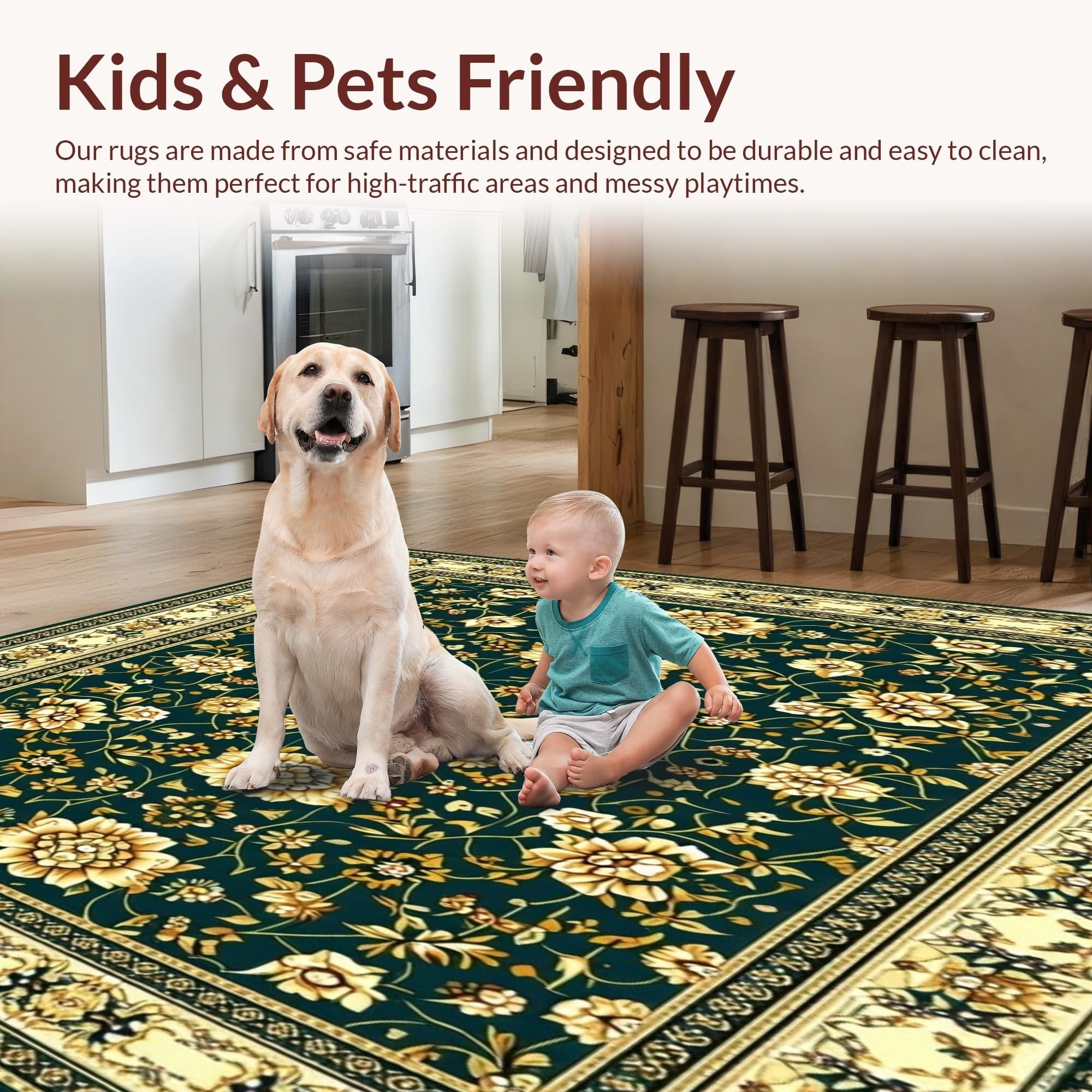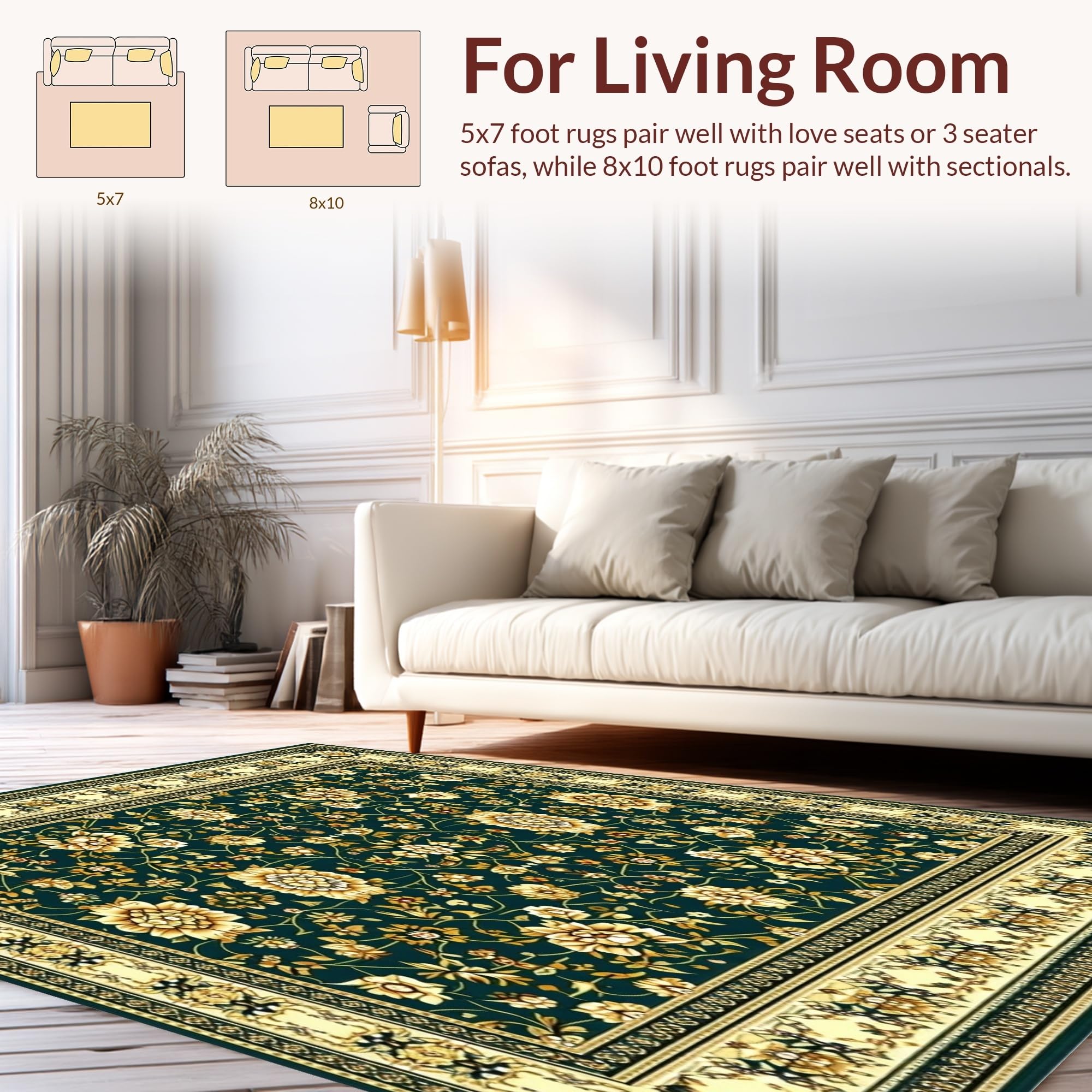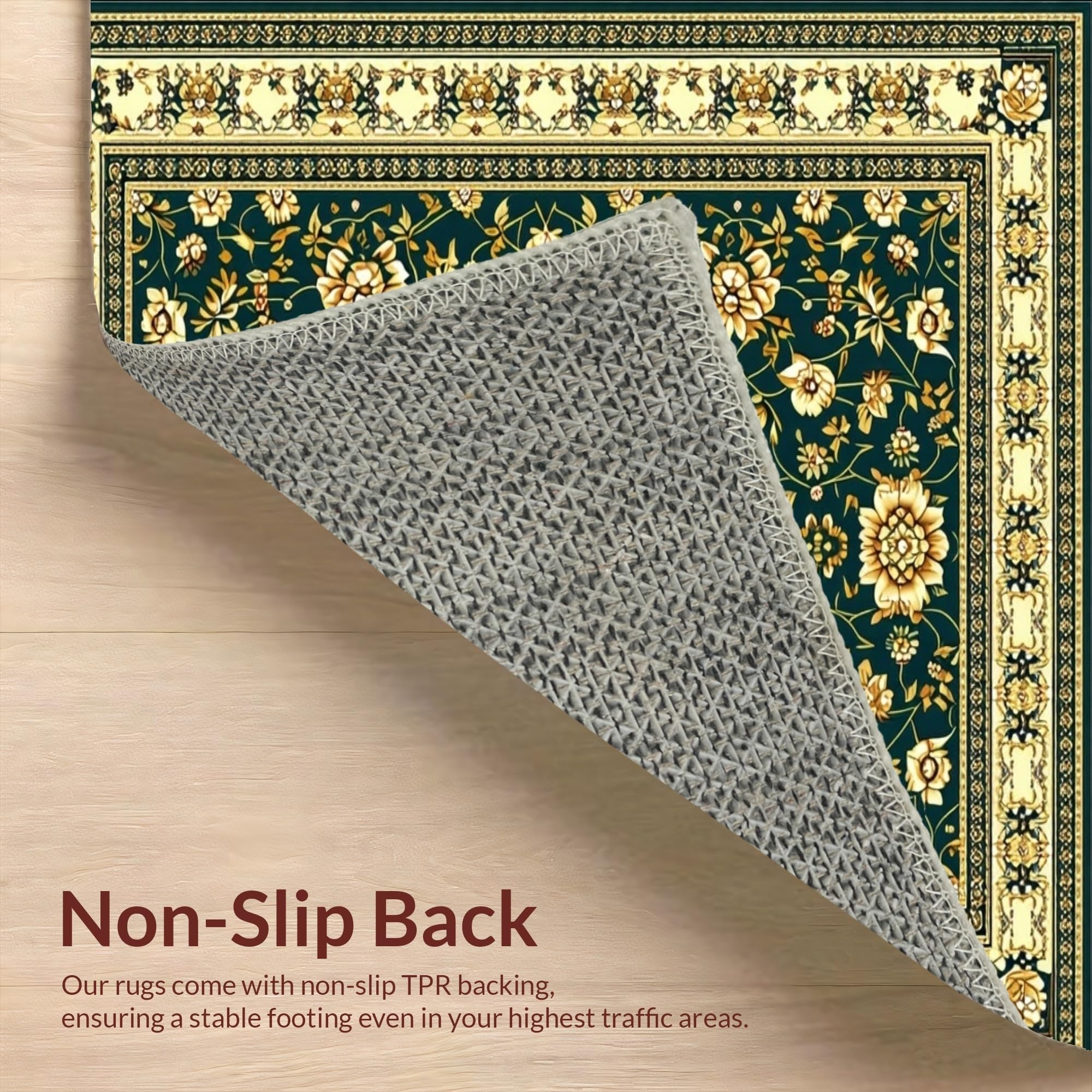Ultra Soft Area Rug, Non Slip, Stain Resistant, Washable Area Rugs for Living Room, Bedroom, Intricate Floral Stripe(Green) Overview: