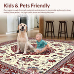 Ultra Soft Area Rug, Non Slip, Stain Resistant, Washable Area Rugs for Living Room, Bedroom, Intricate Floral Vintage Area with Deep Red and Cream Accents(Red) Overview: