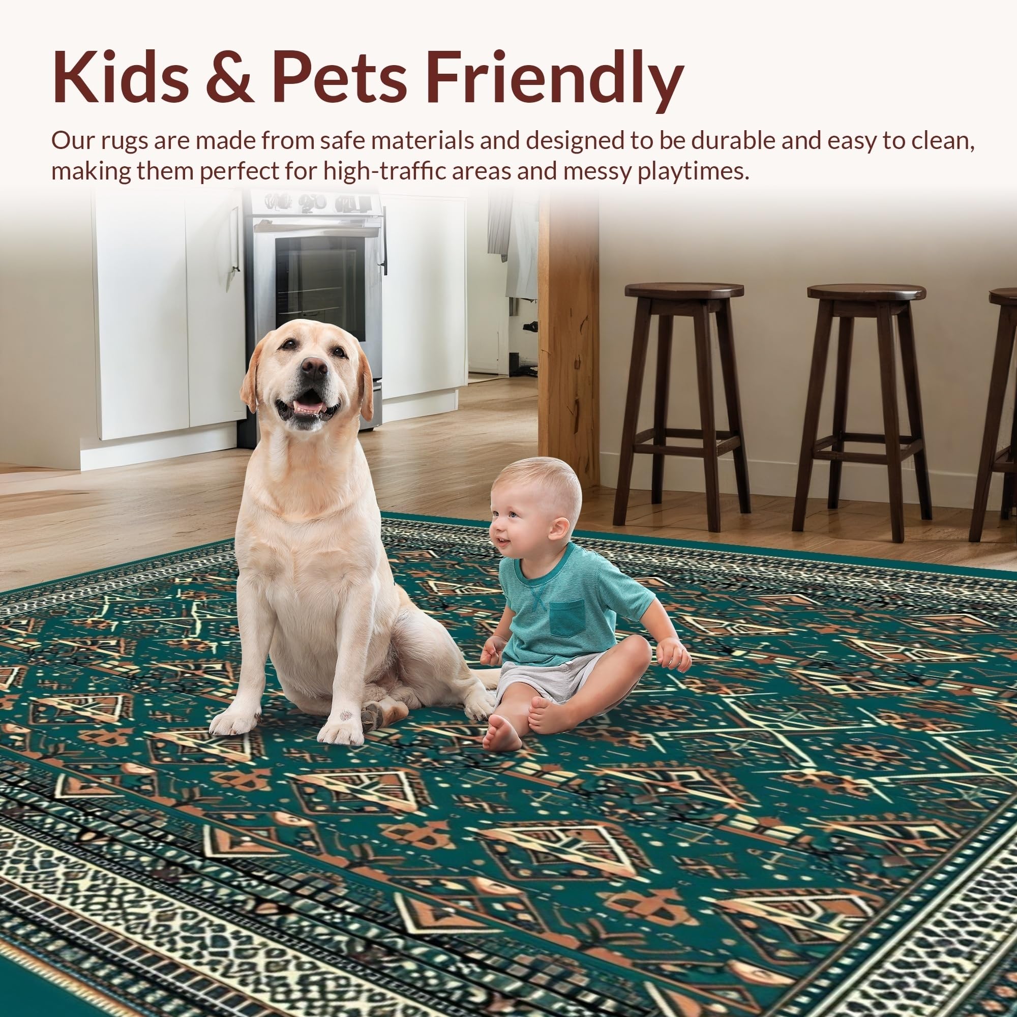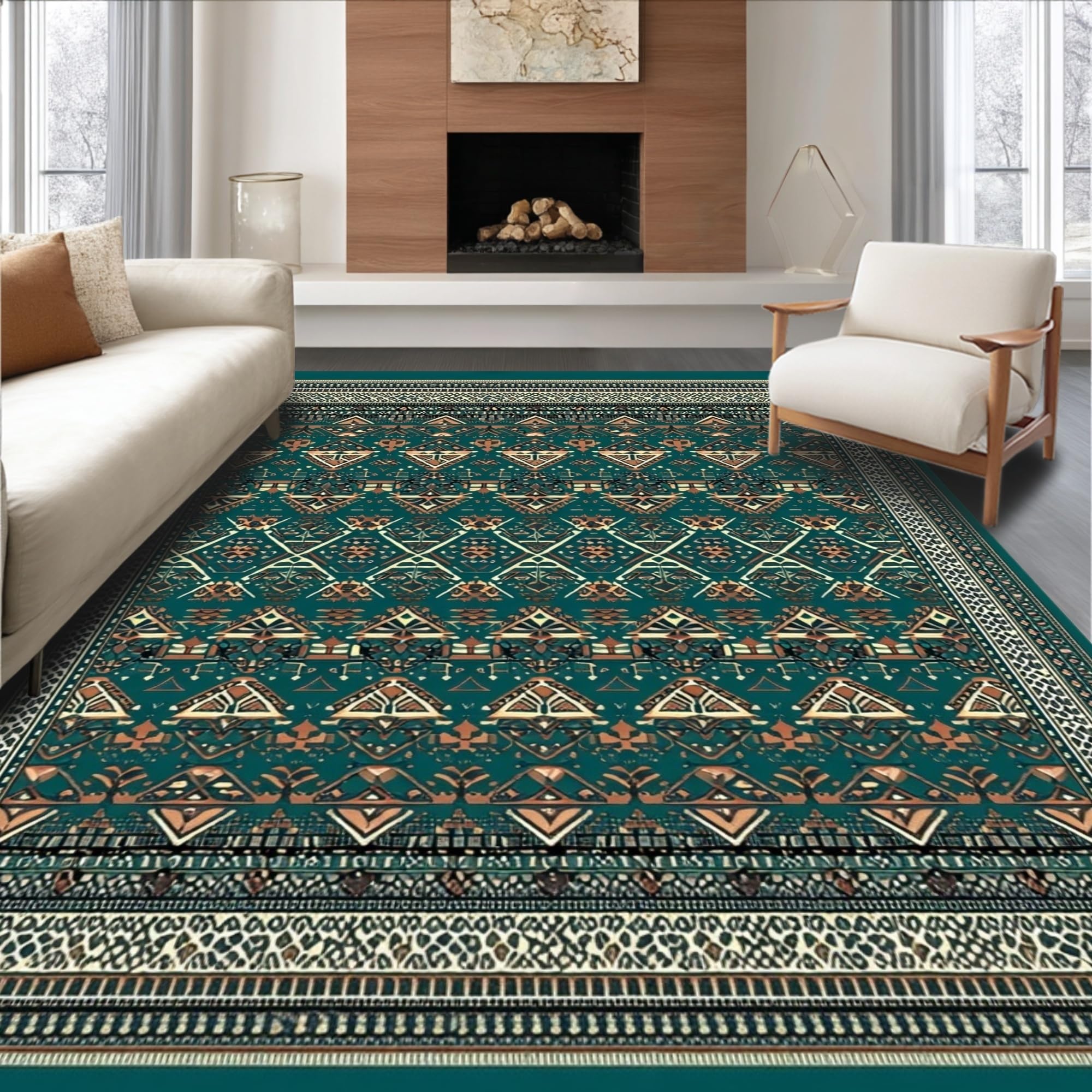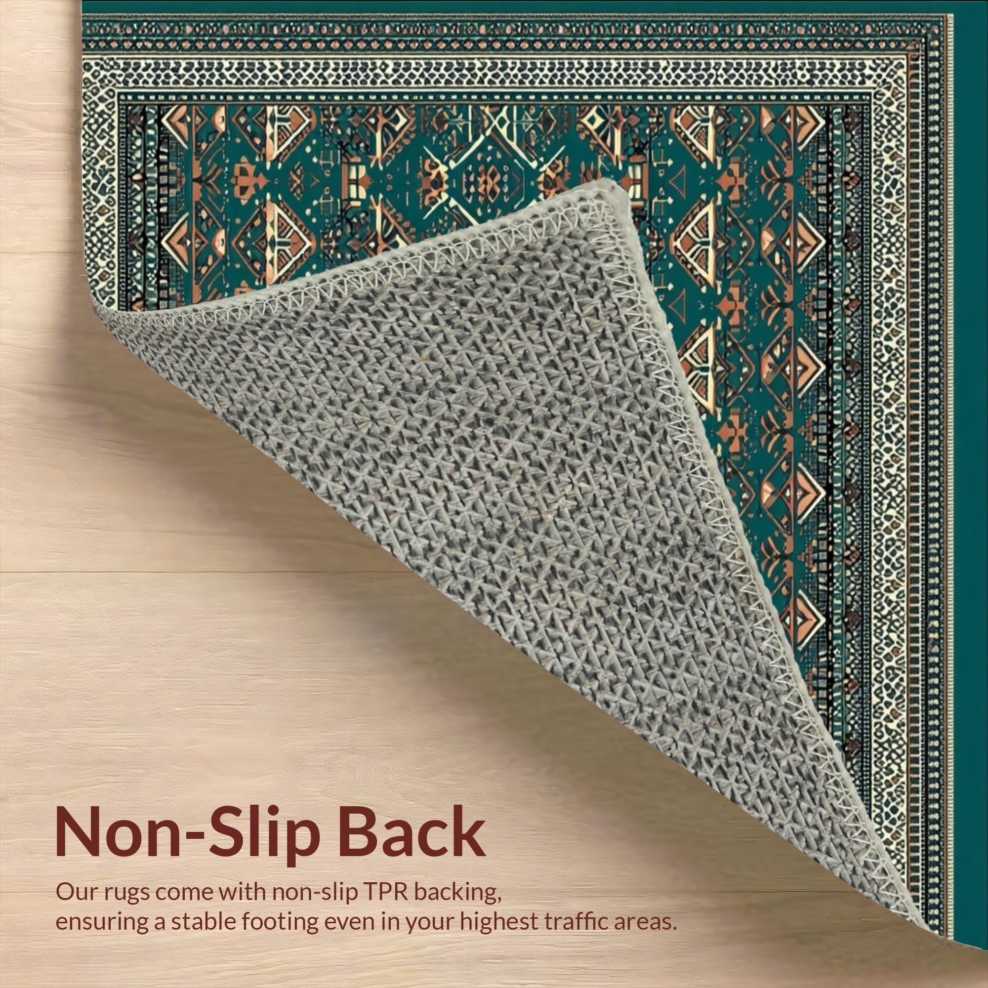 Ultra Soft Area Rug, Non Slip, Stain Resistant, Washable Area Rugs for Living Room, Bedroom, Intricate Geometric Design Area with Teal and Copper Accents(Blue) Overview: