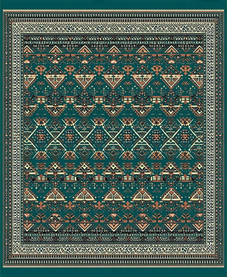 Intricate Geometric Design Area with Teal and Copper Accents(Blue)