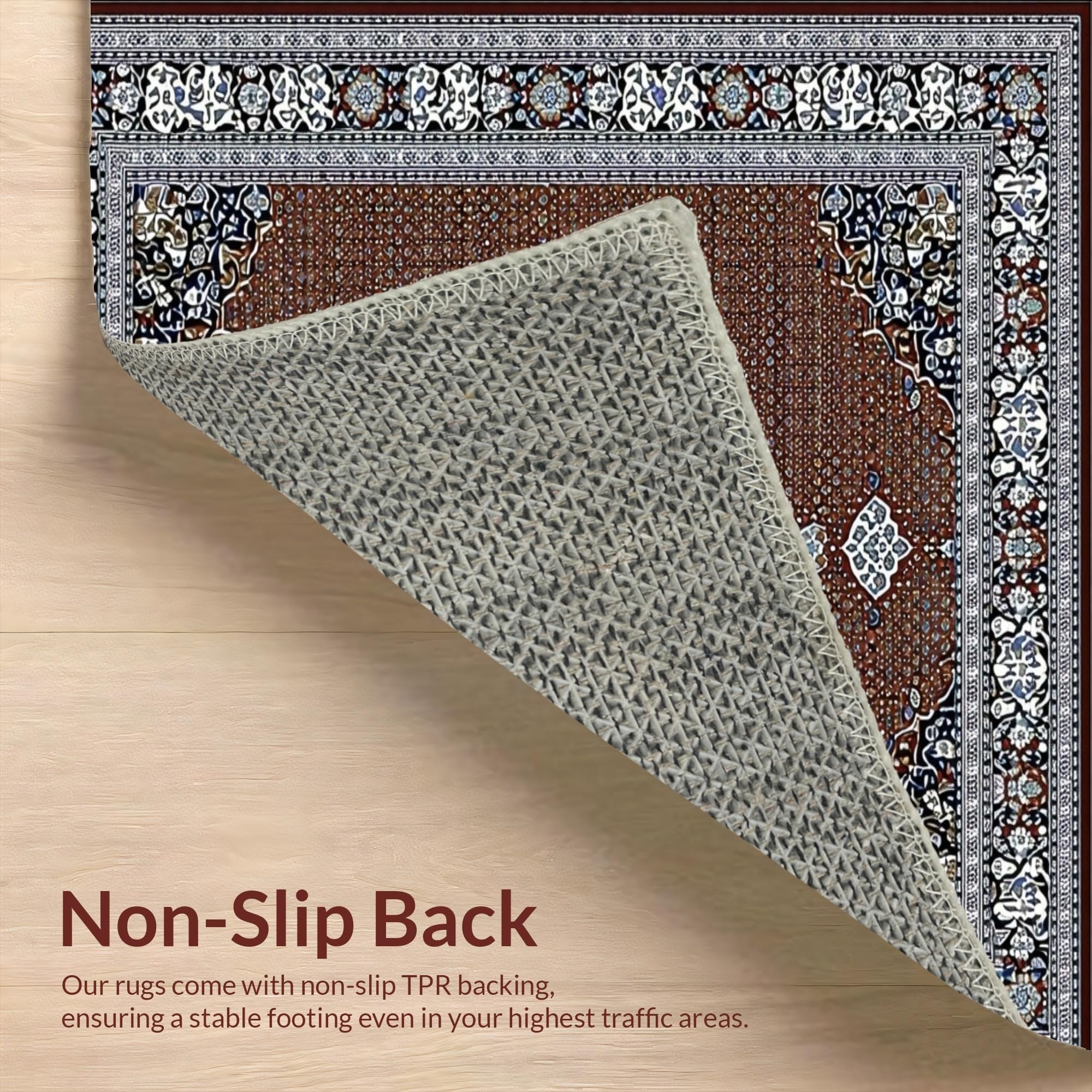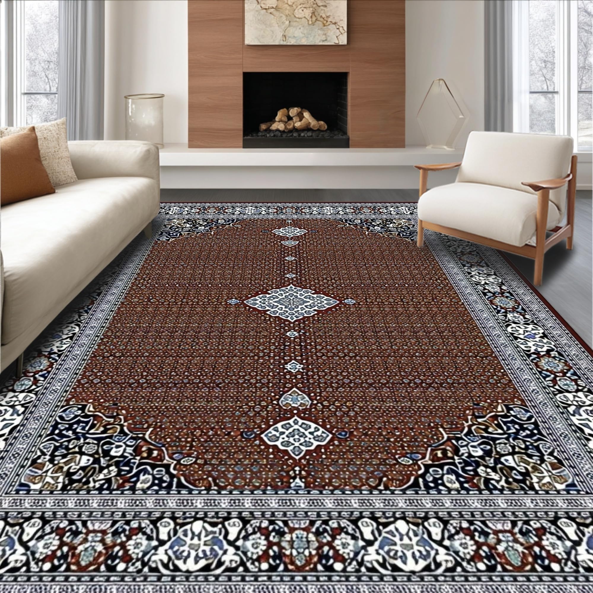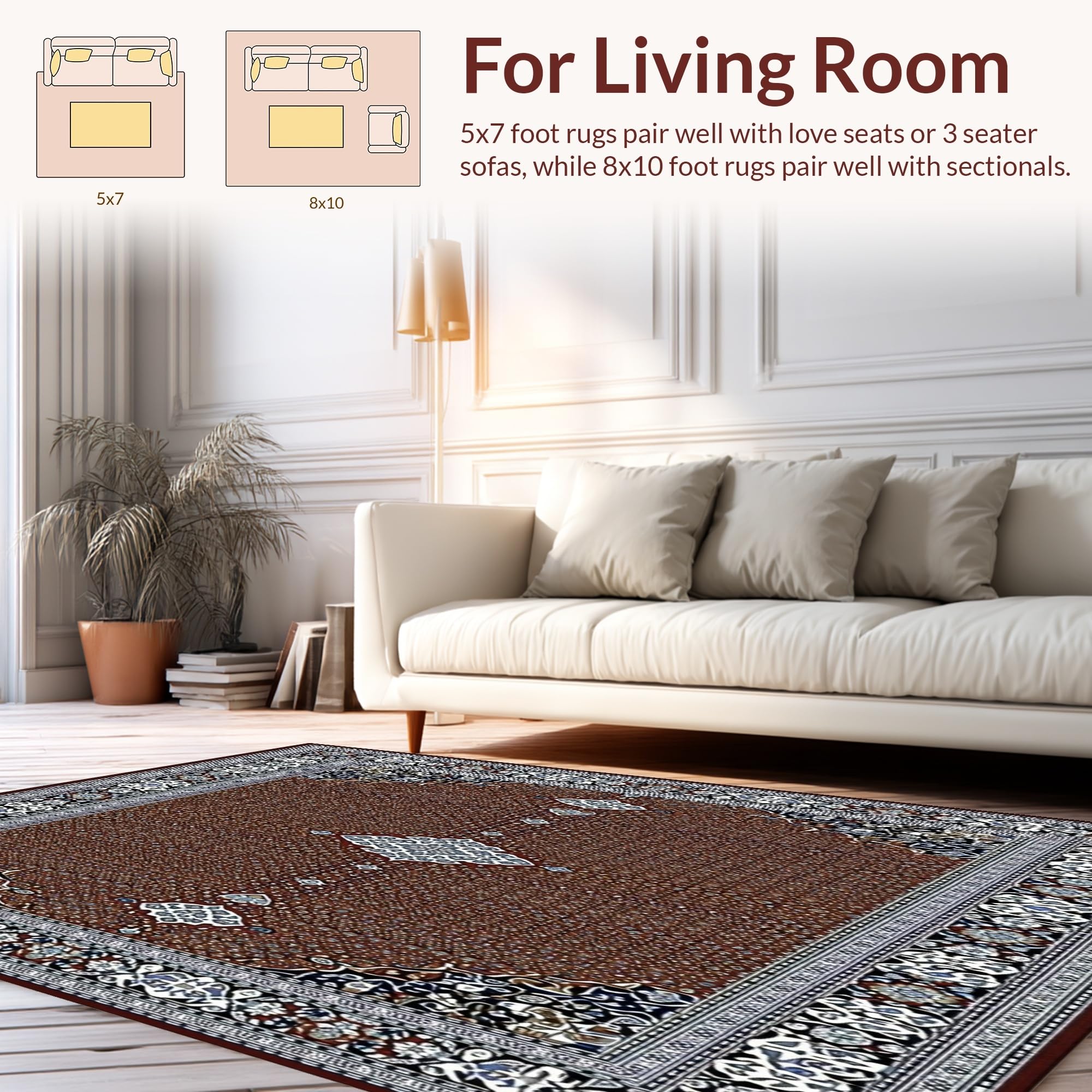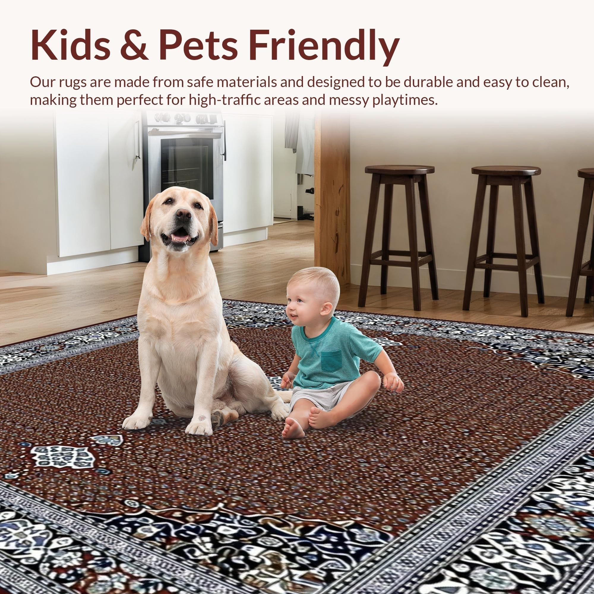 Ultra Soft Area Rug, Non Slip, Stain Resistant, Washable Area Rugs for Living Room, Bedroom, Intricate Geometric Spotted Design Area with Rich Brown and Silver Accents(Brown) Overview: