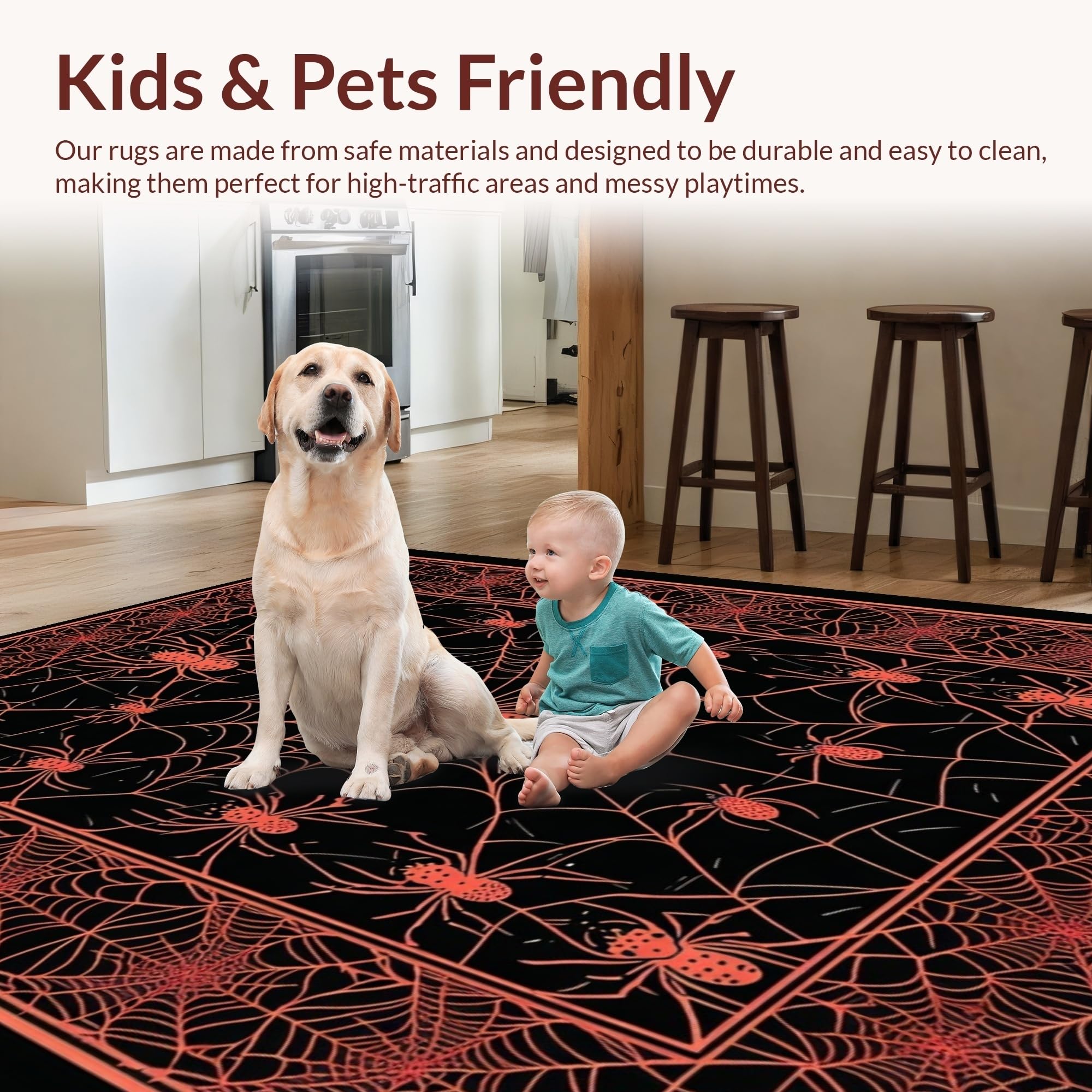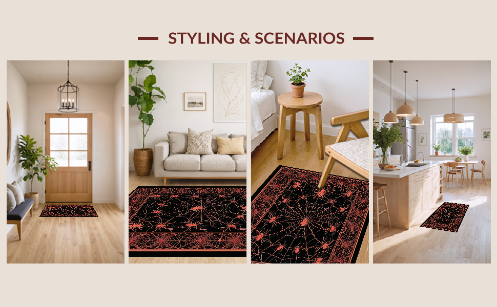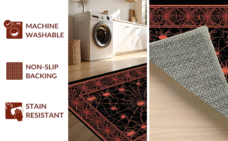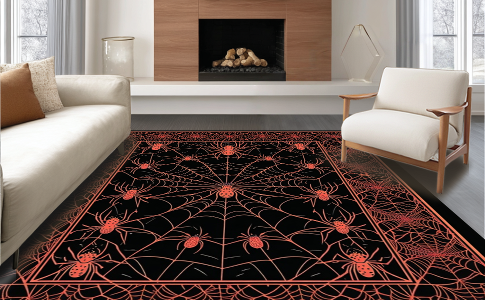 Ultra Soft Area Rug, Non Slip, Stain Resistant, Washable Area Rugs for Living Room, Bedroom, Intricate Gothic Spooky Design(Black) Overview: