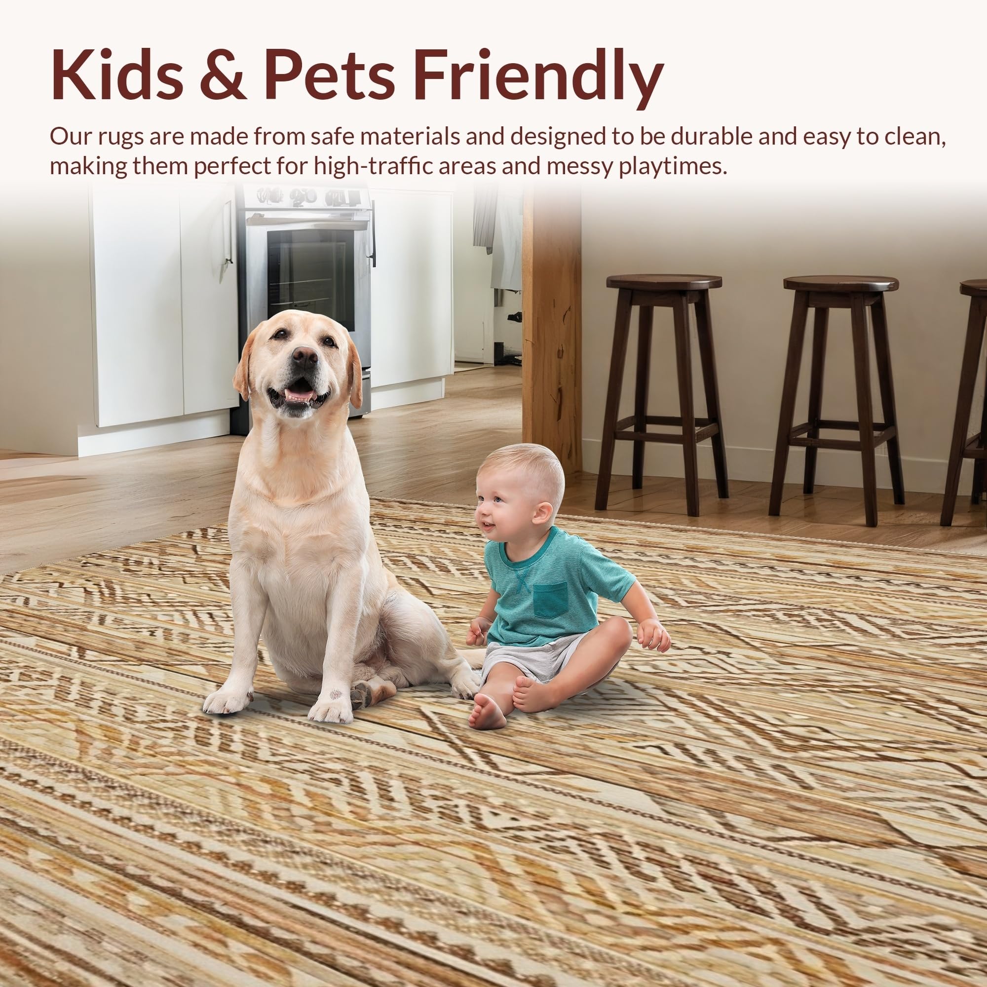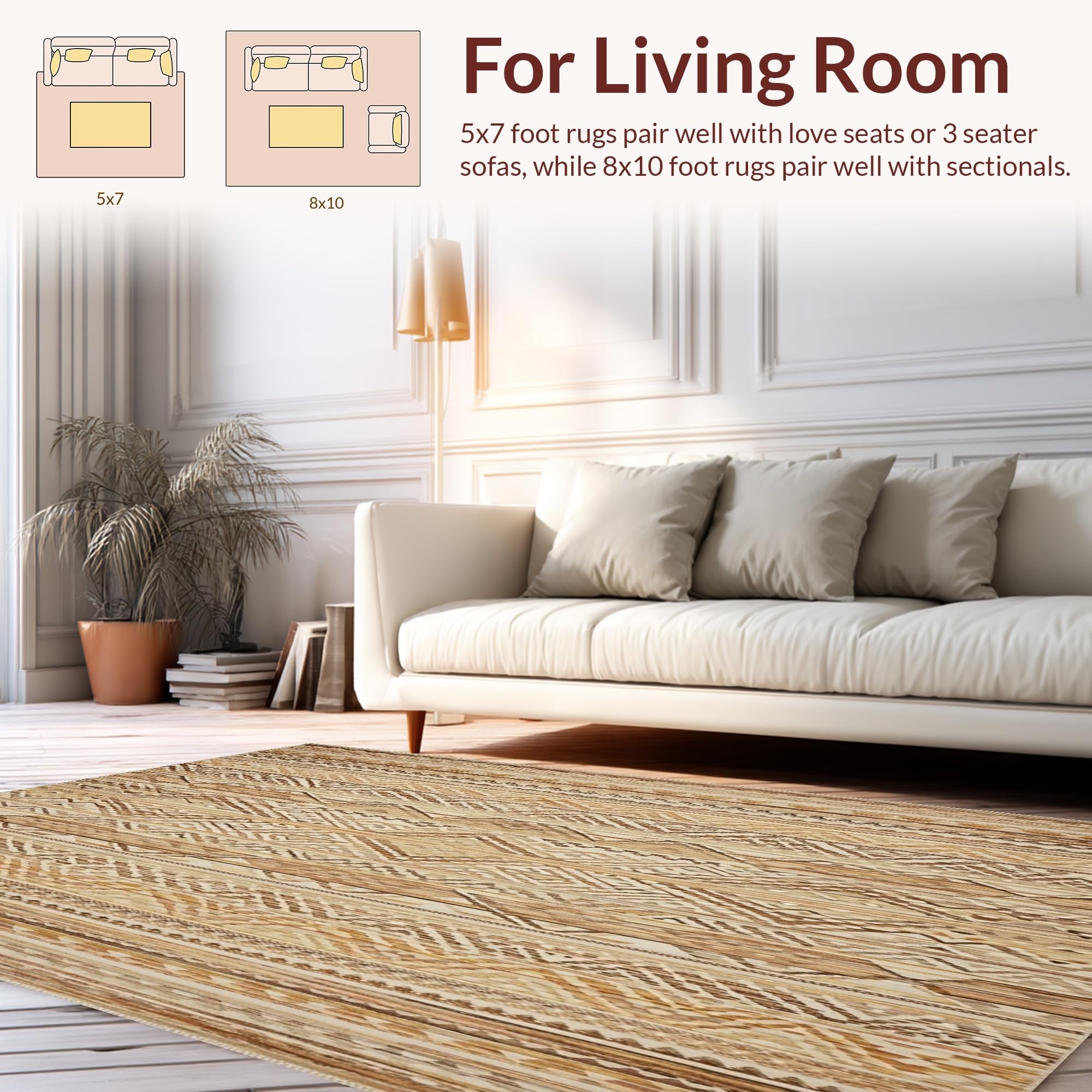 Ultra Soft Area Rug, Non Slip, Stain Resistant, Washable Area Rugs for Living Room, Bedroom, Intricate Jute Area With Elegant Diamond In Natural Tones(Beige) Overview: