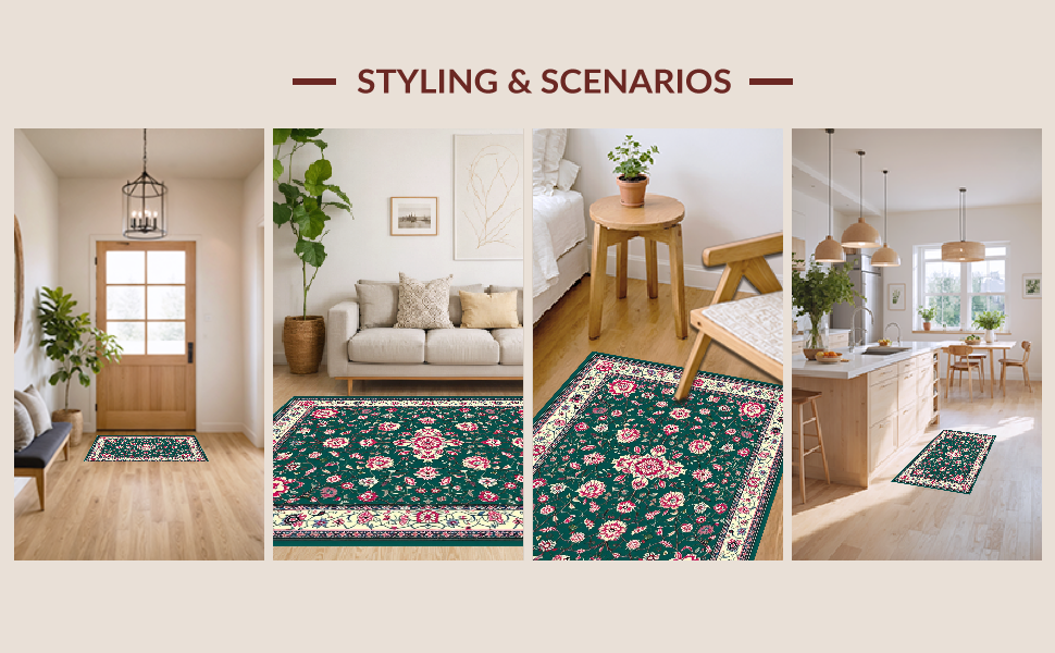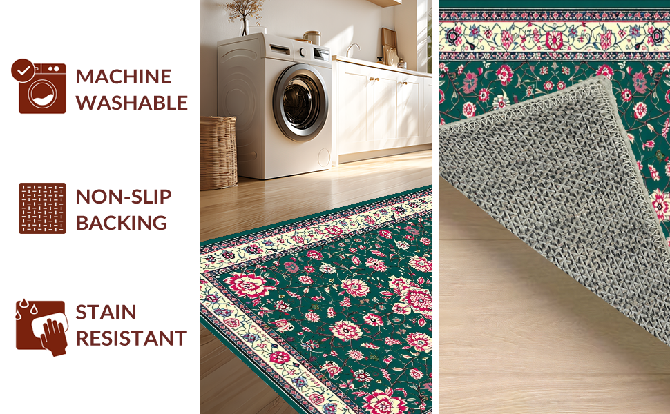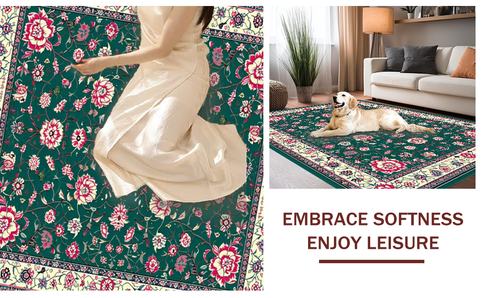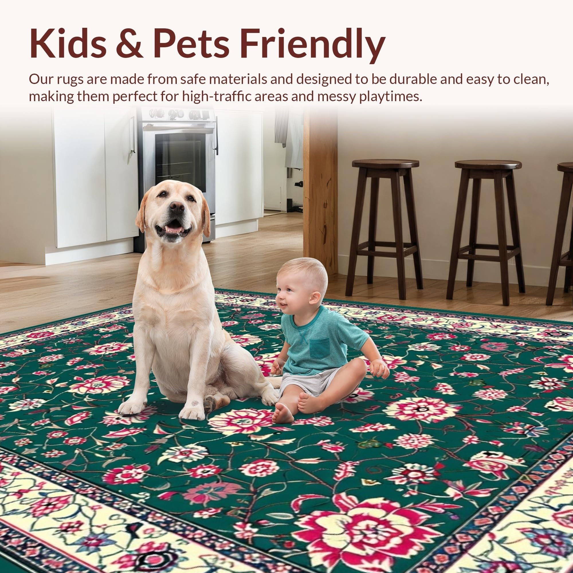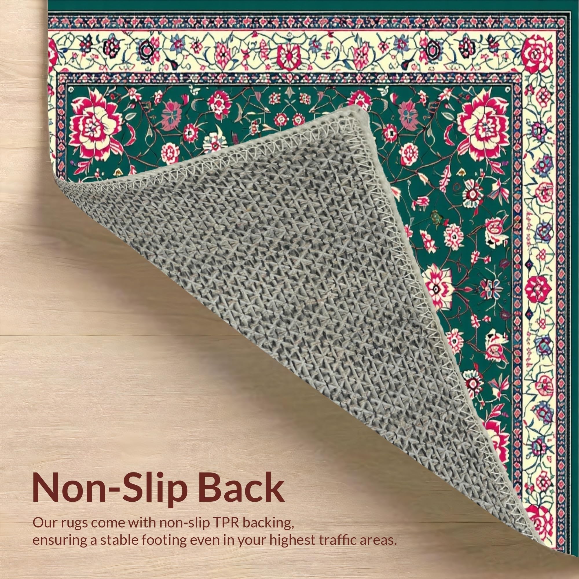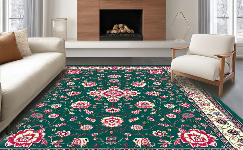 Ultra Soft Area Rug, Non Slip, Stain Resistant, Washable Area Rugs for Living Room, Bedroom, Intricate Nature-Inspired Timeless Design(Green) Overview: