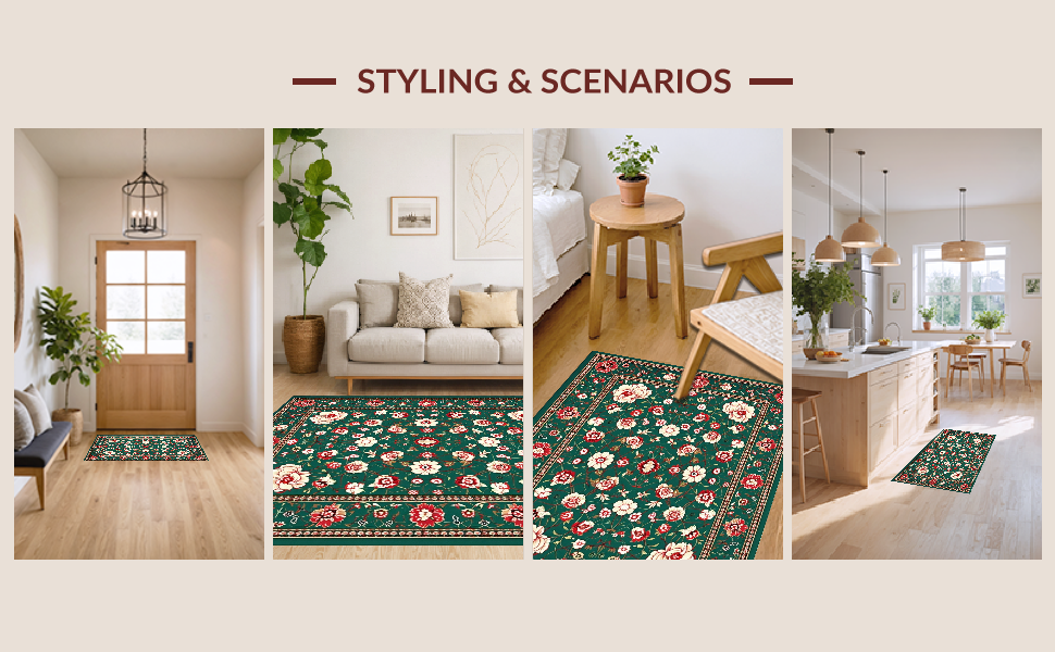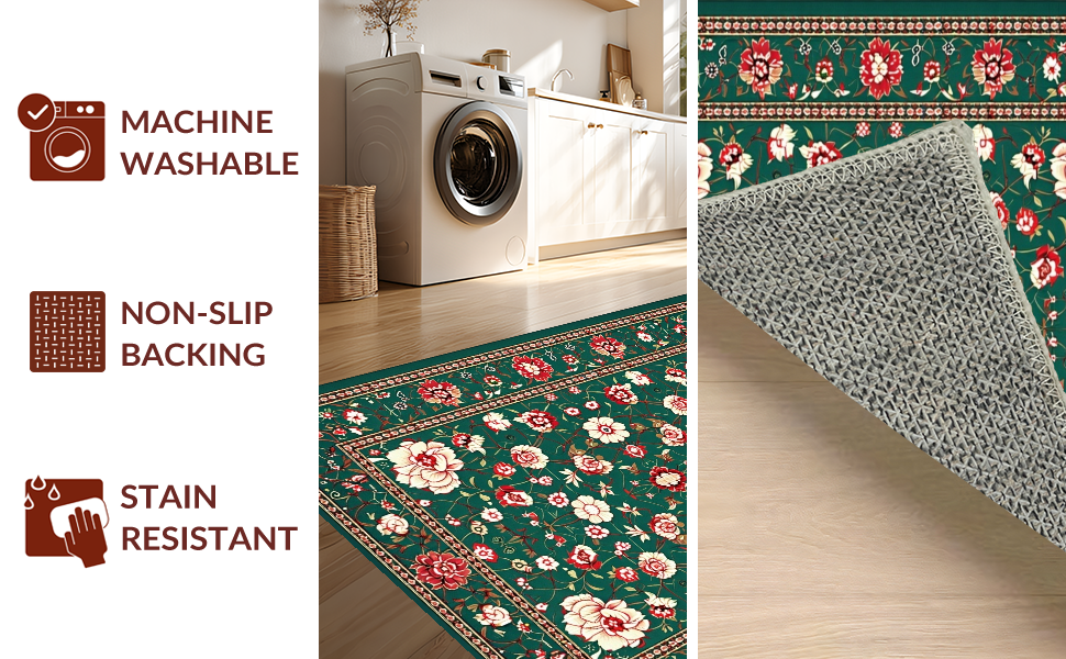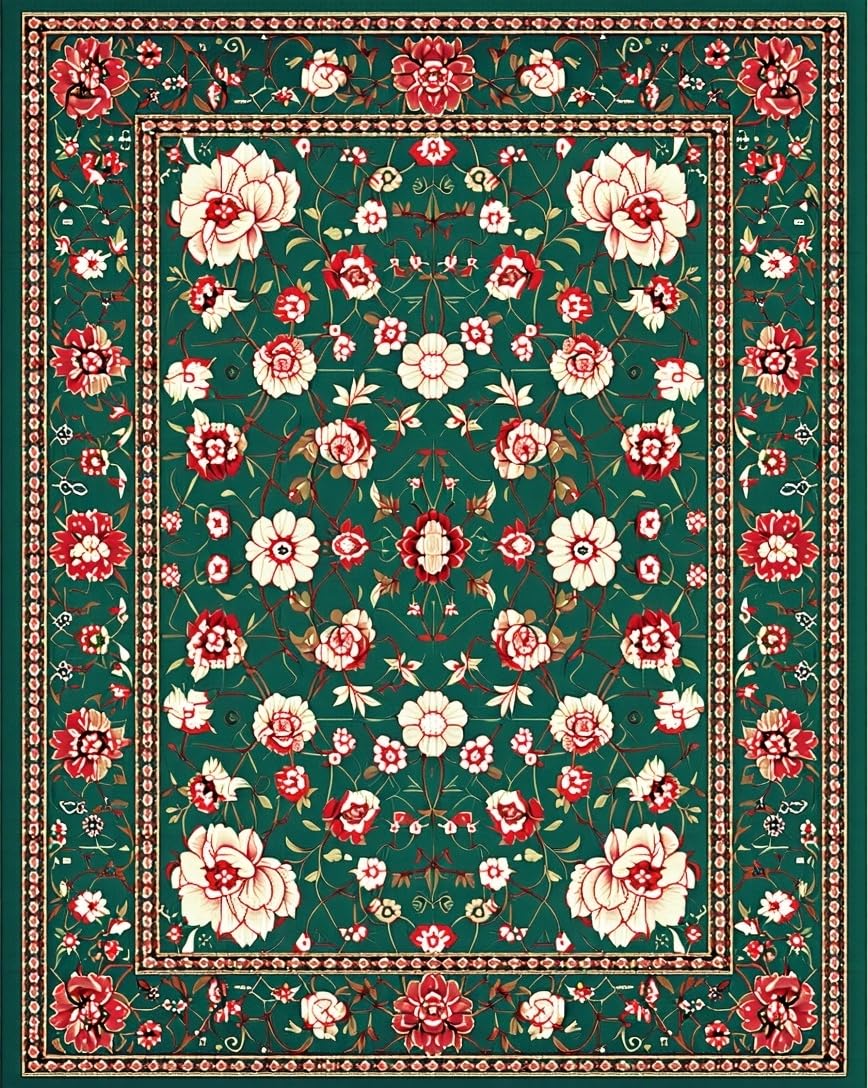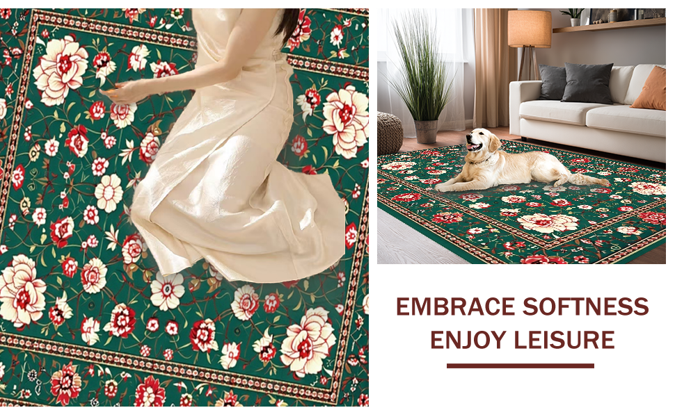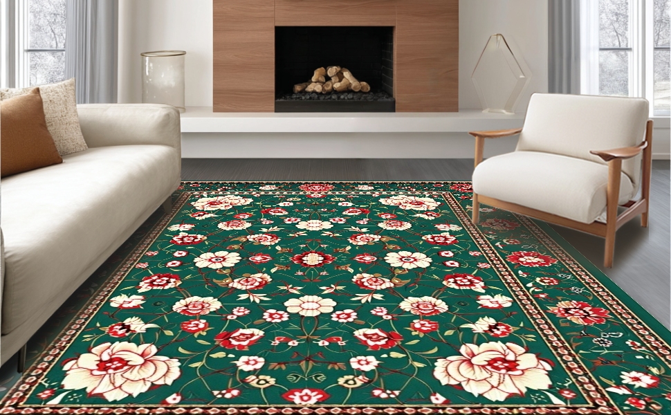 Ultra Soft Area Rug, Non Slip, Stain Resistant, Washable Area Rugs for Living Room, Bedroom, Intricate Oriental Leaf Motif(Green) Overview: