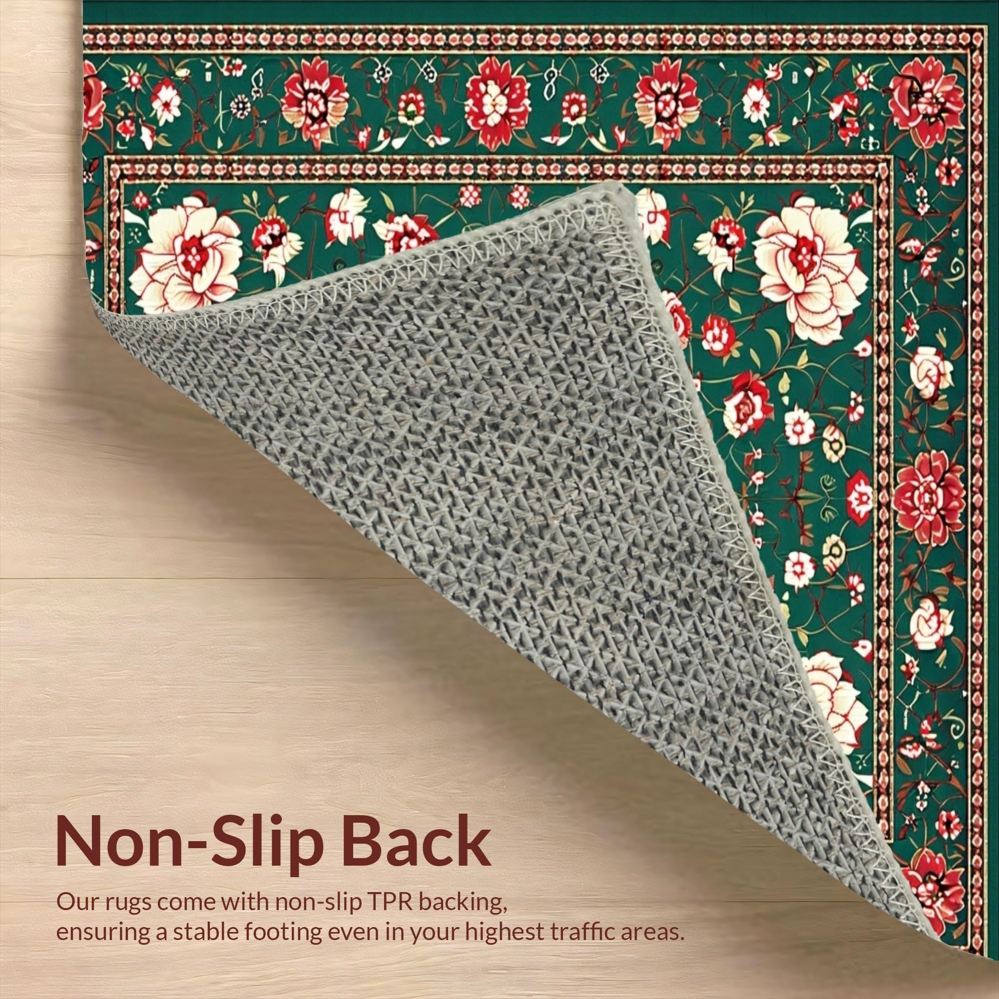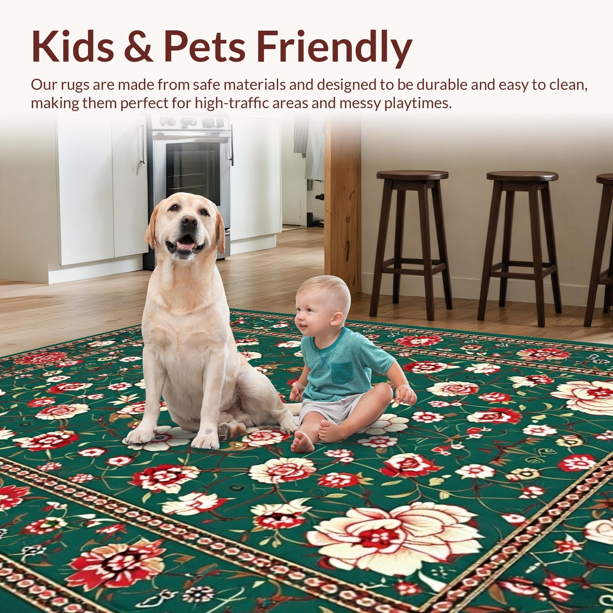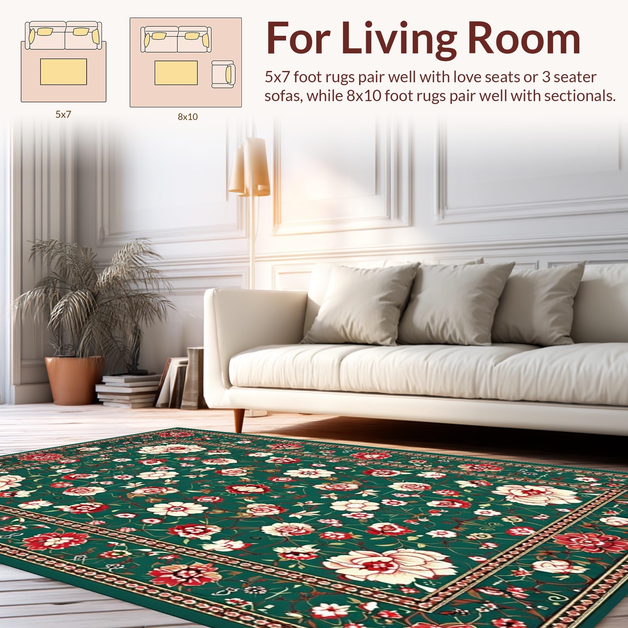 Ultra Soft Area Rug, Non Slip, Stain Resistant, Washable Area Rugs for Living Room, Bedroom, Intricate Oriental Leaf Motif(Green) Overview: