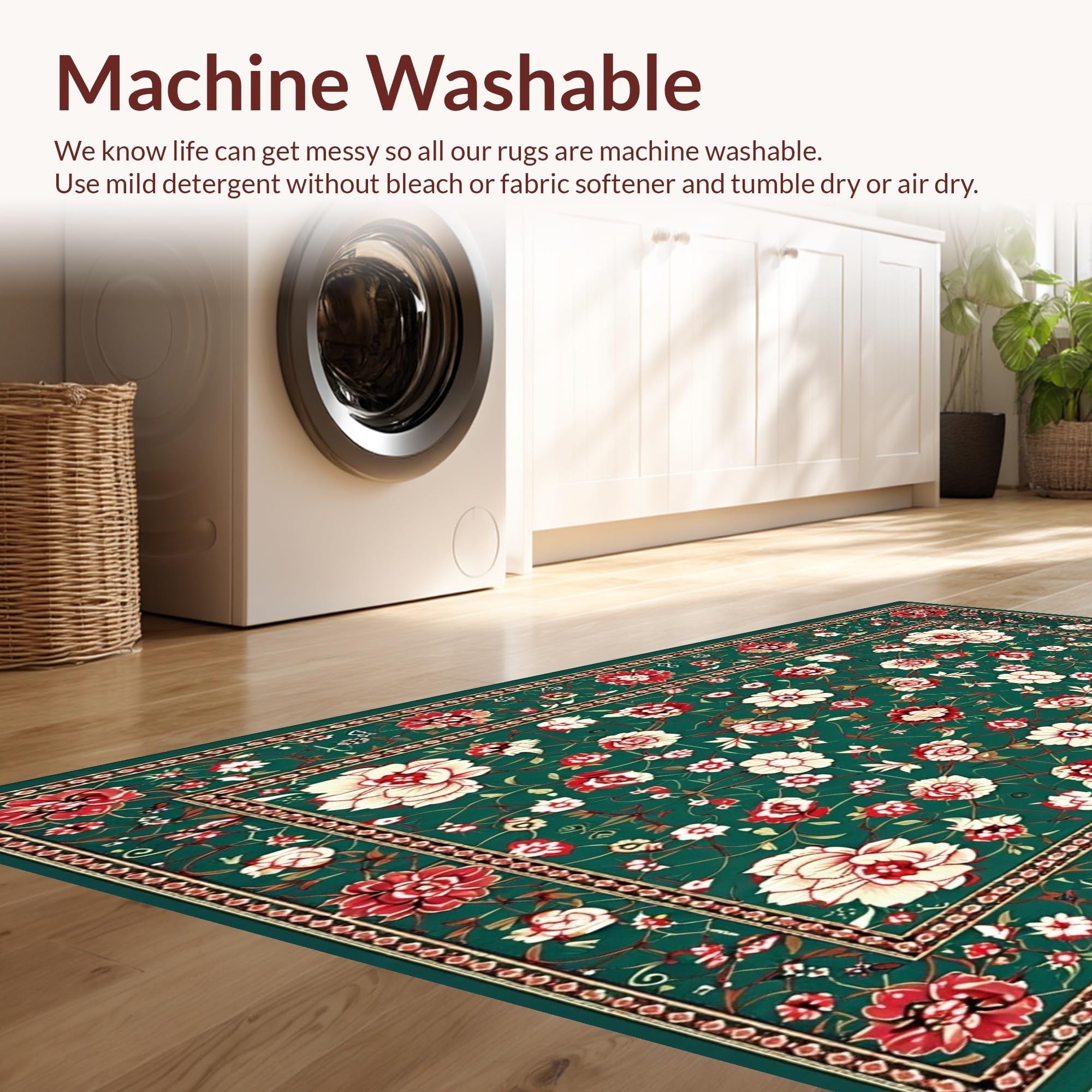 - Machine Washable: Our rugs can be easily thrown in the wash machine.