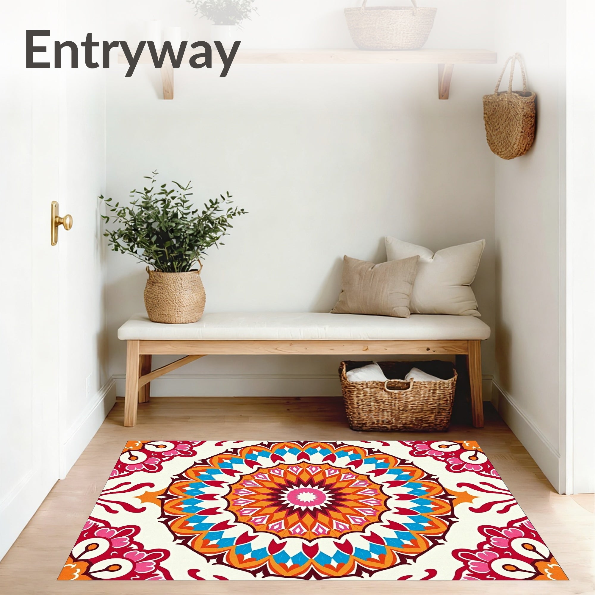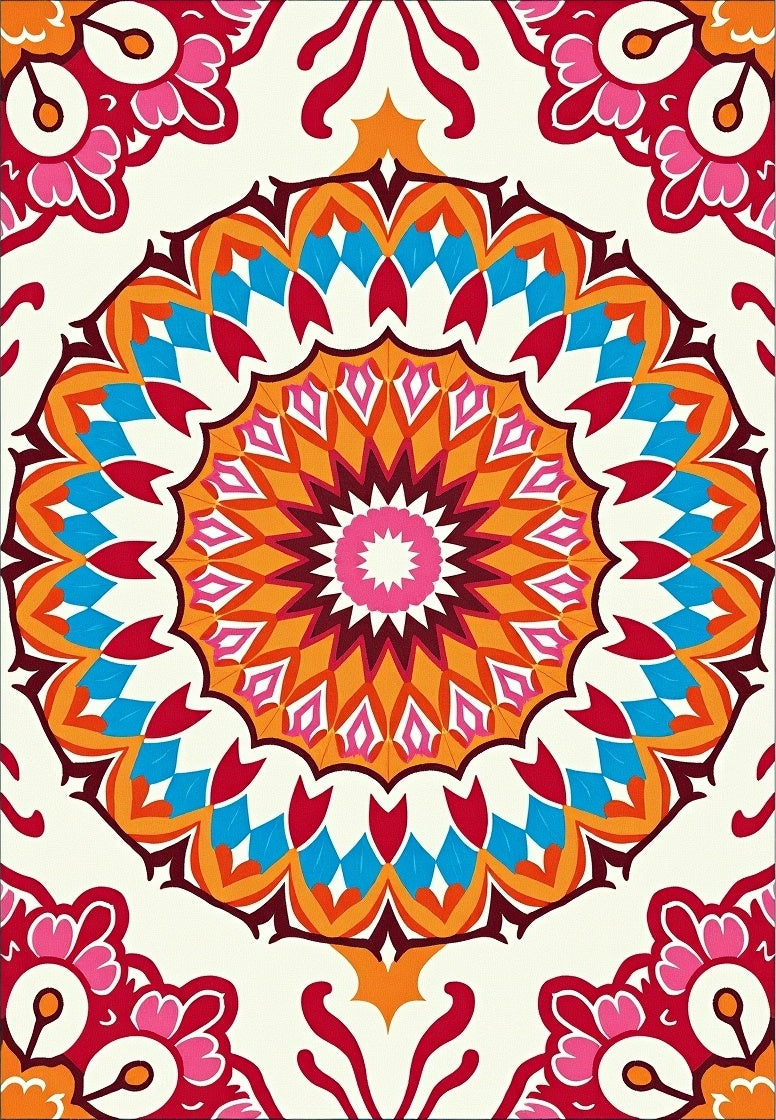Ultra Soft Area Rug, Non Slip, Stain Resistant, Washable Area Rugs for Living Room, Bedroom, Intricate Sunrise with Symmetrical Petal Design(Red) Overview: