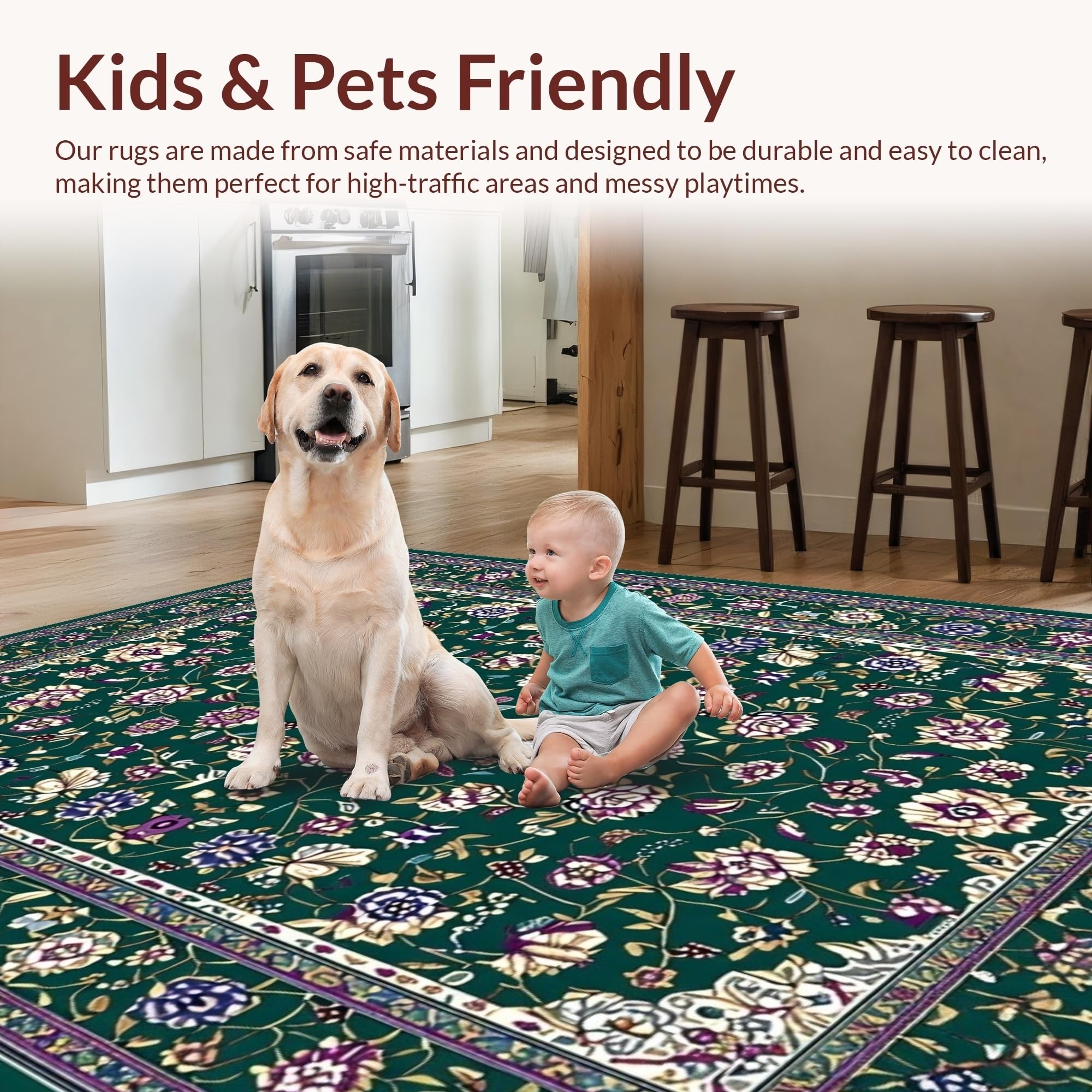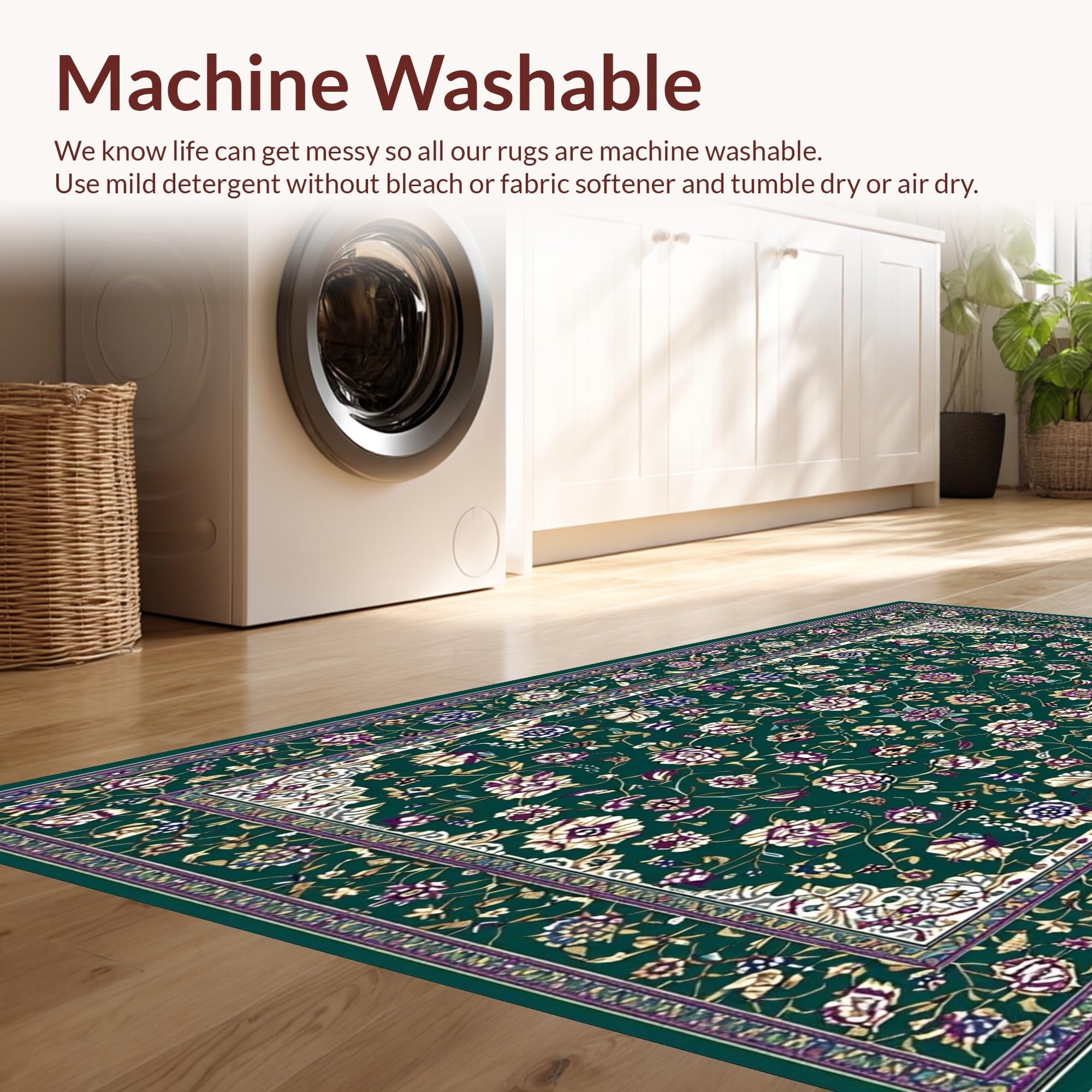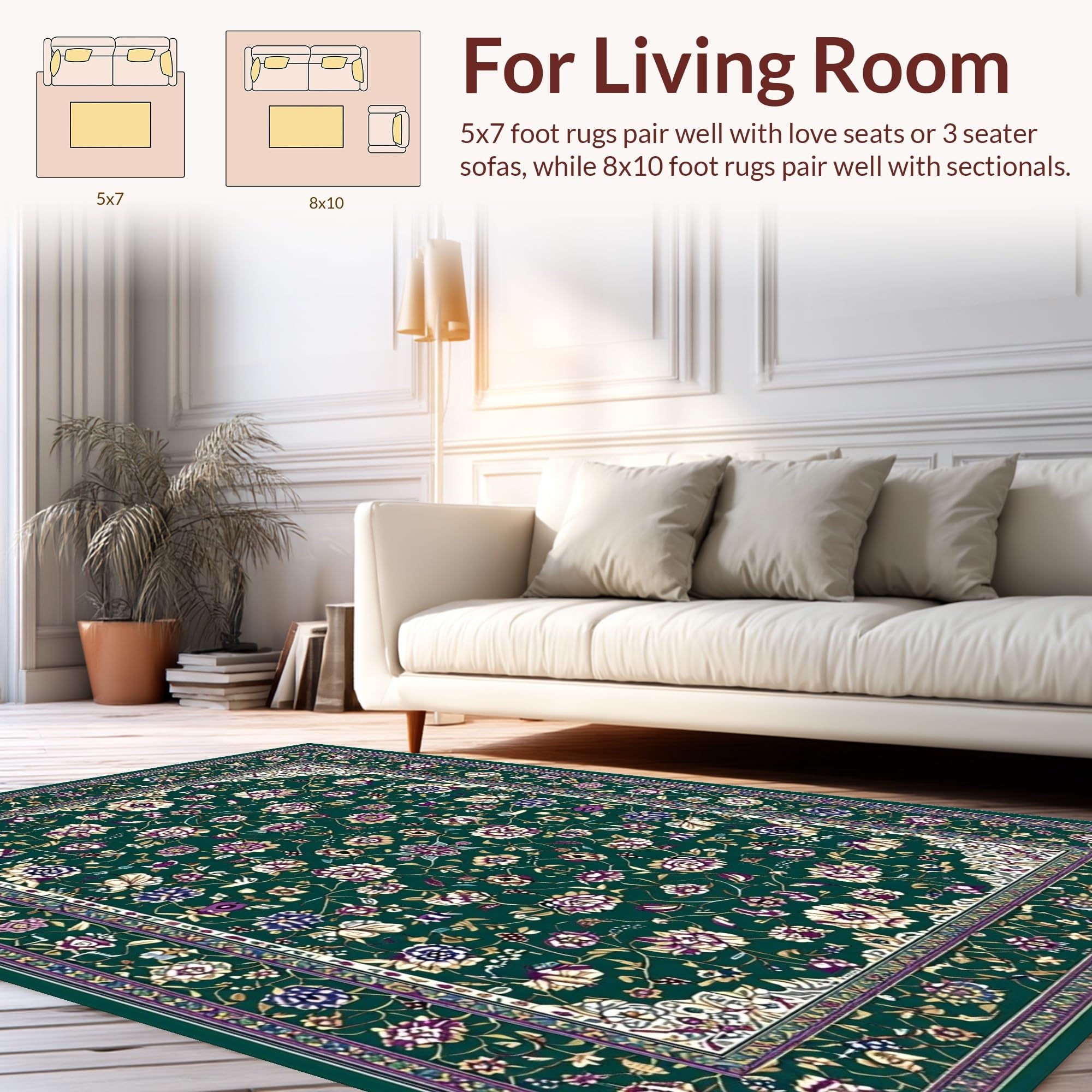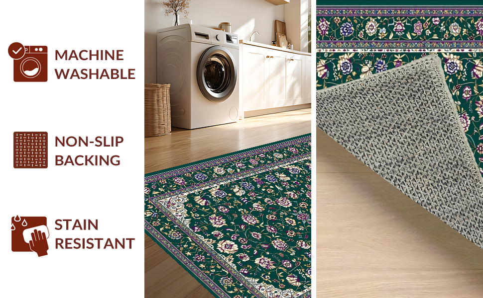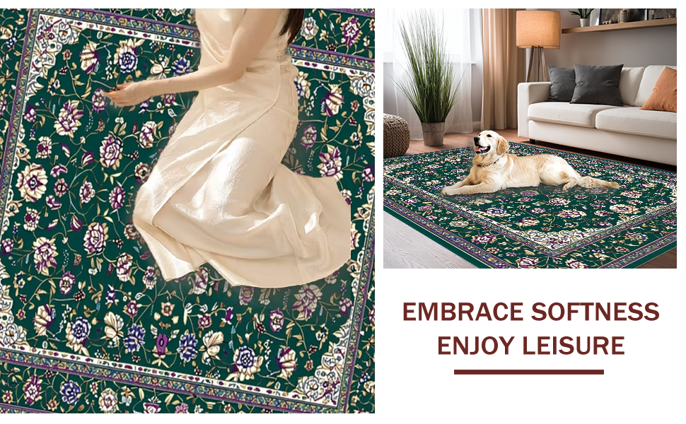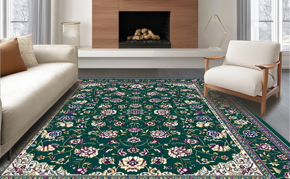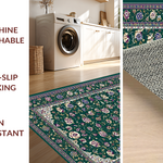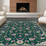 Ultra Soft Area Rug, Non Slip, Stain Resistant, Washable Area Rugs for Living Room, Bedroom, Intricate Vintage Botanical Weave(Green) Overview: