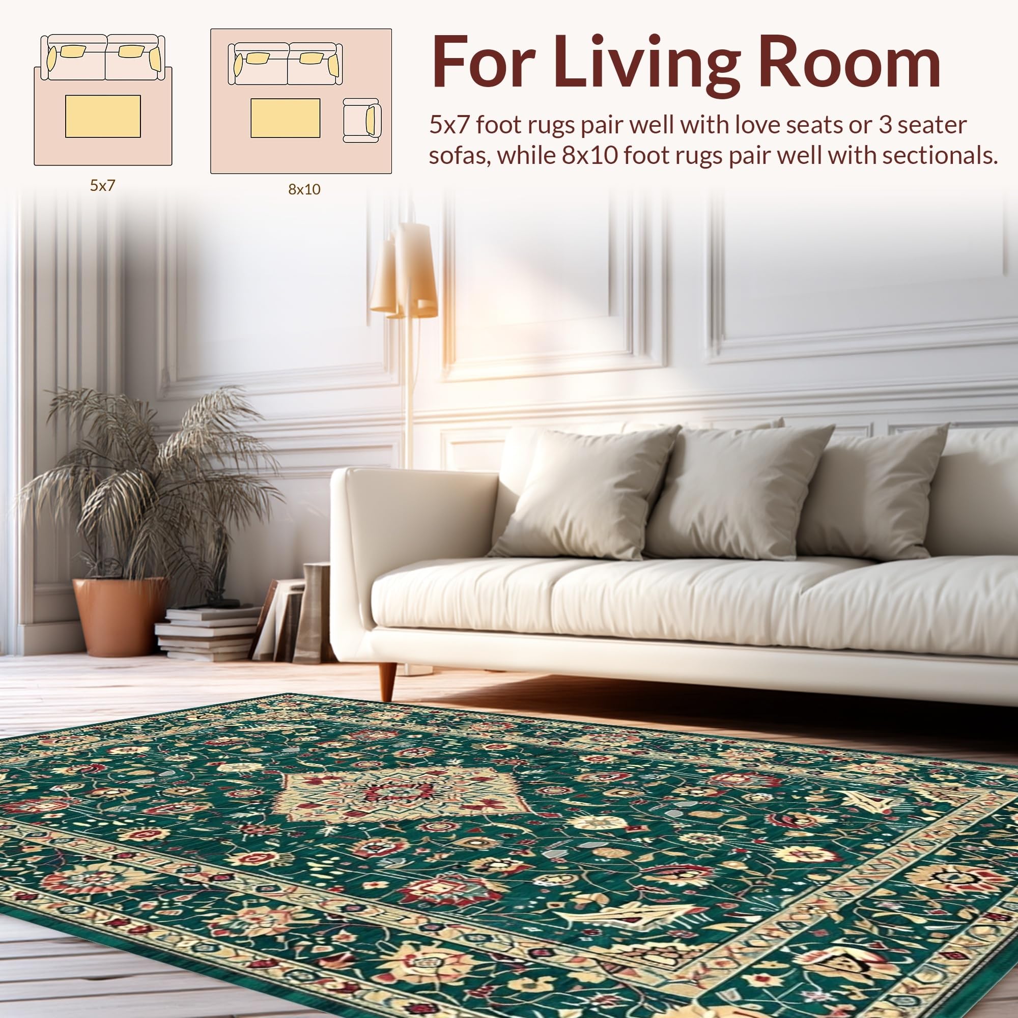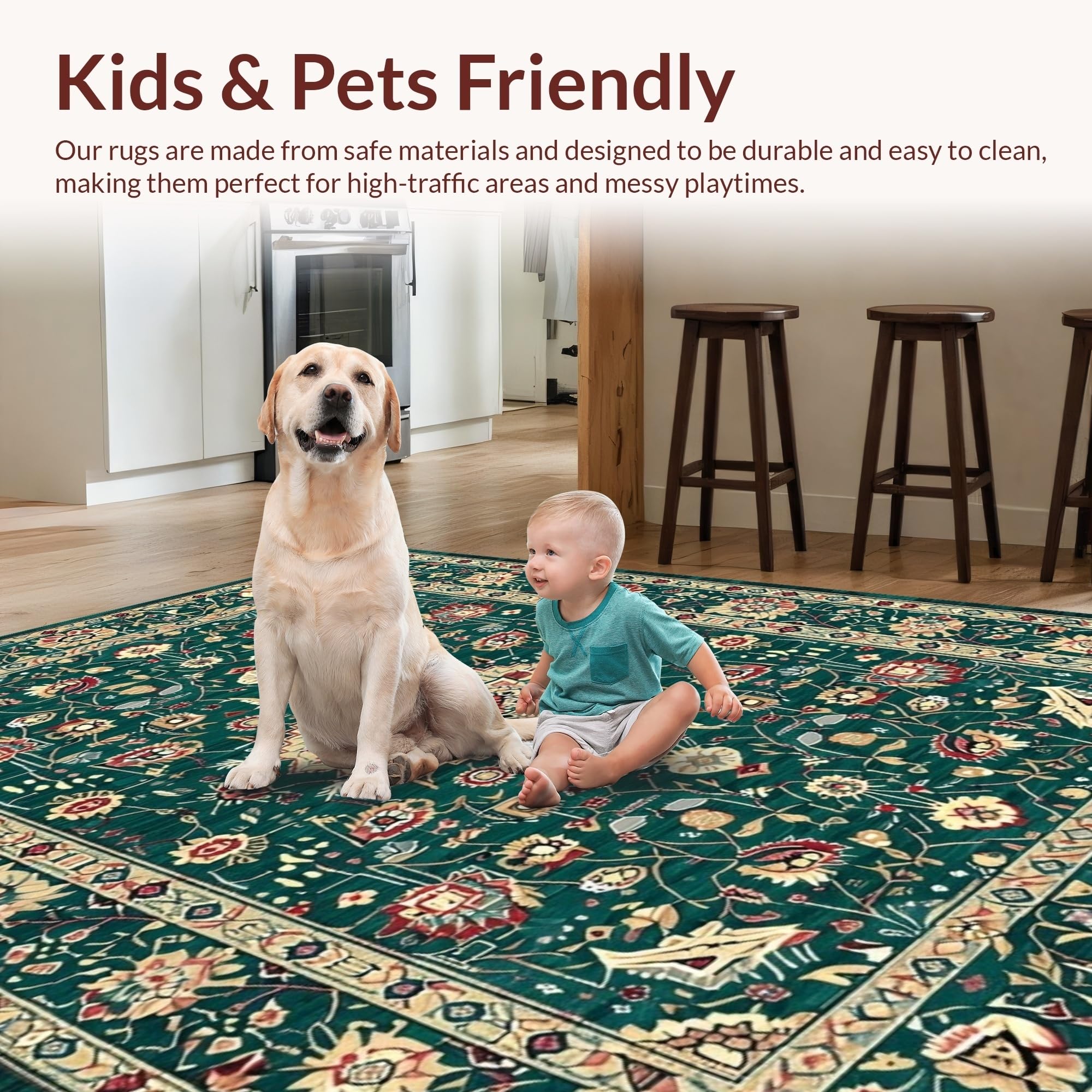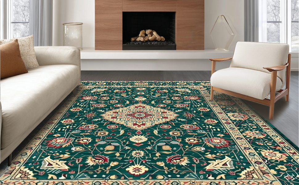 Ultra Soft Area Rug, Non Slip, Stain Resistant, Washable Area Rugs for Living Room, Bedroom, Intricate Vintage Floral Harmony(Blue) Overview: