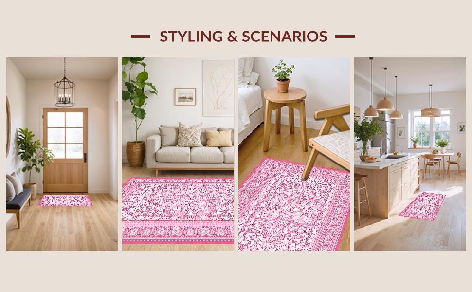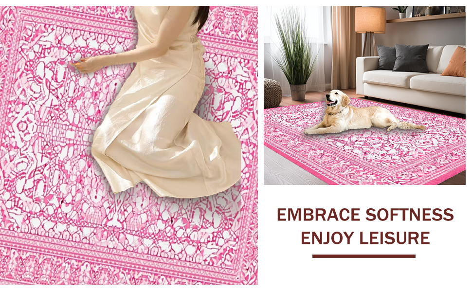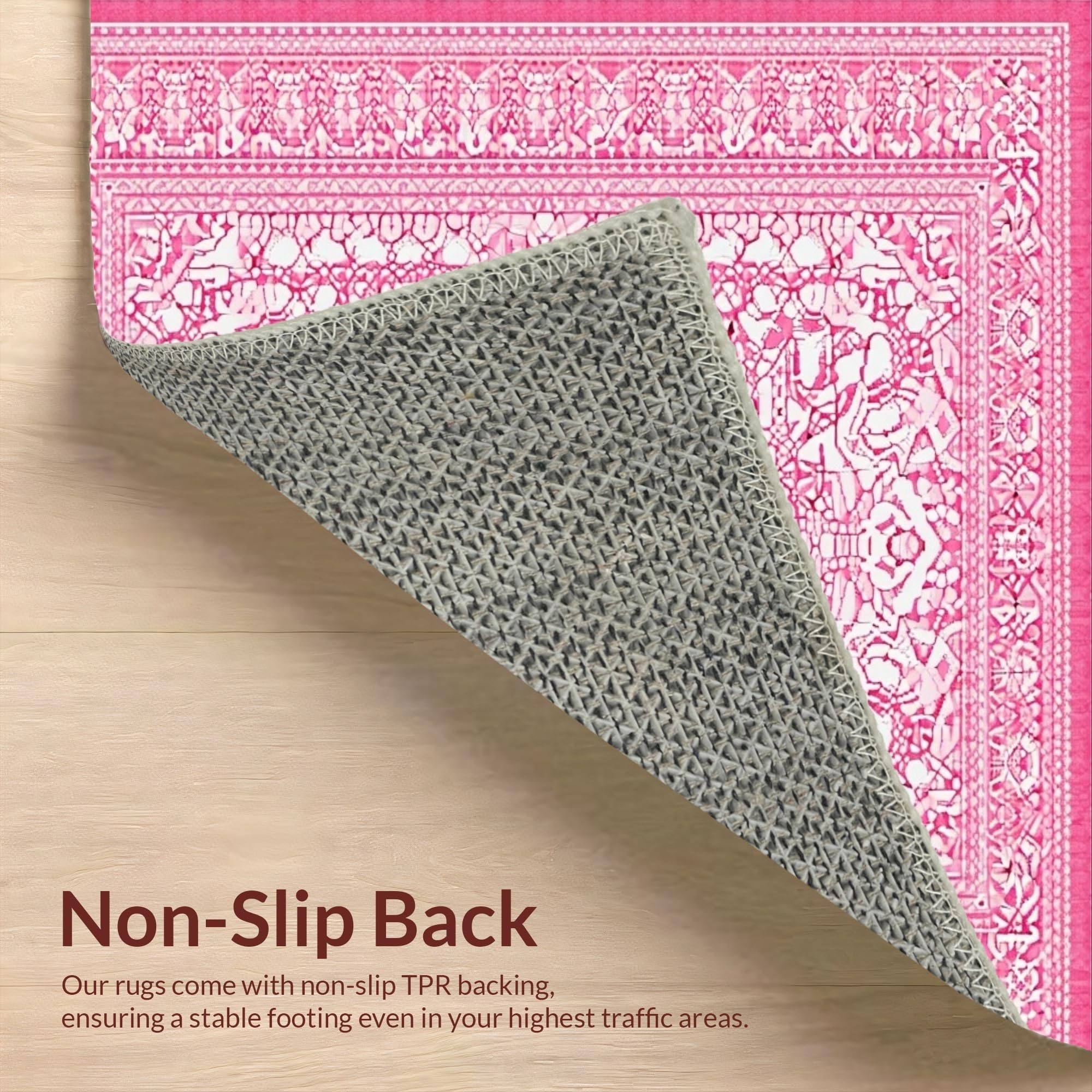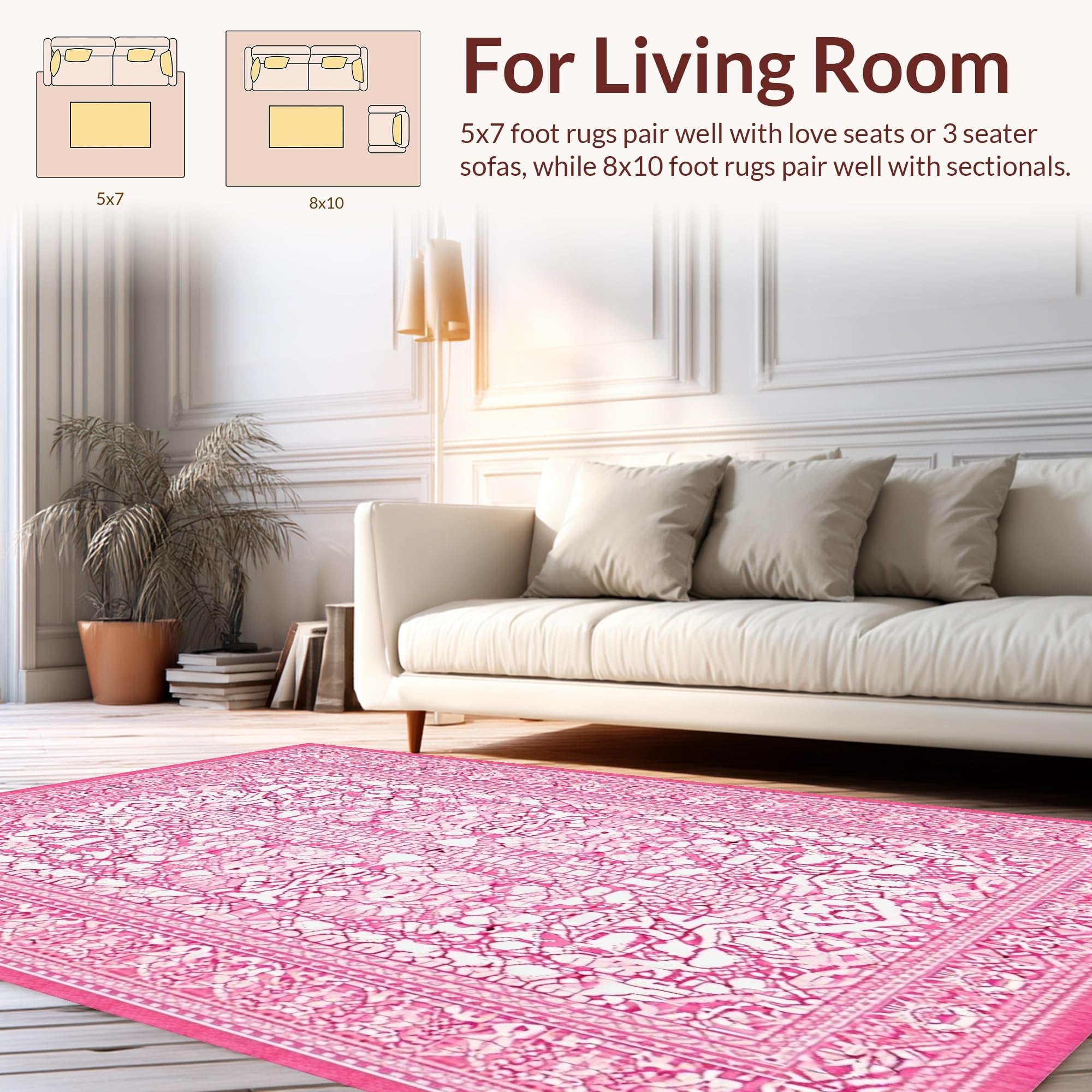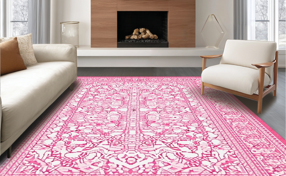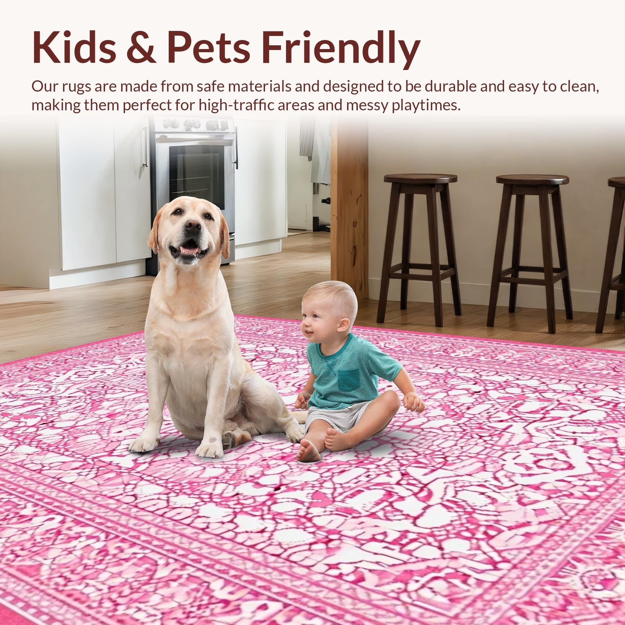 Ultra Soft Area Rug, Non Slip, Stain Resistant, Washable Area Rugs for Living Room, Bedroom, Intricate Whimsical Crocheted Design(Pink) Overview: