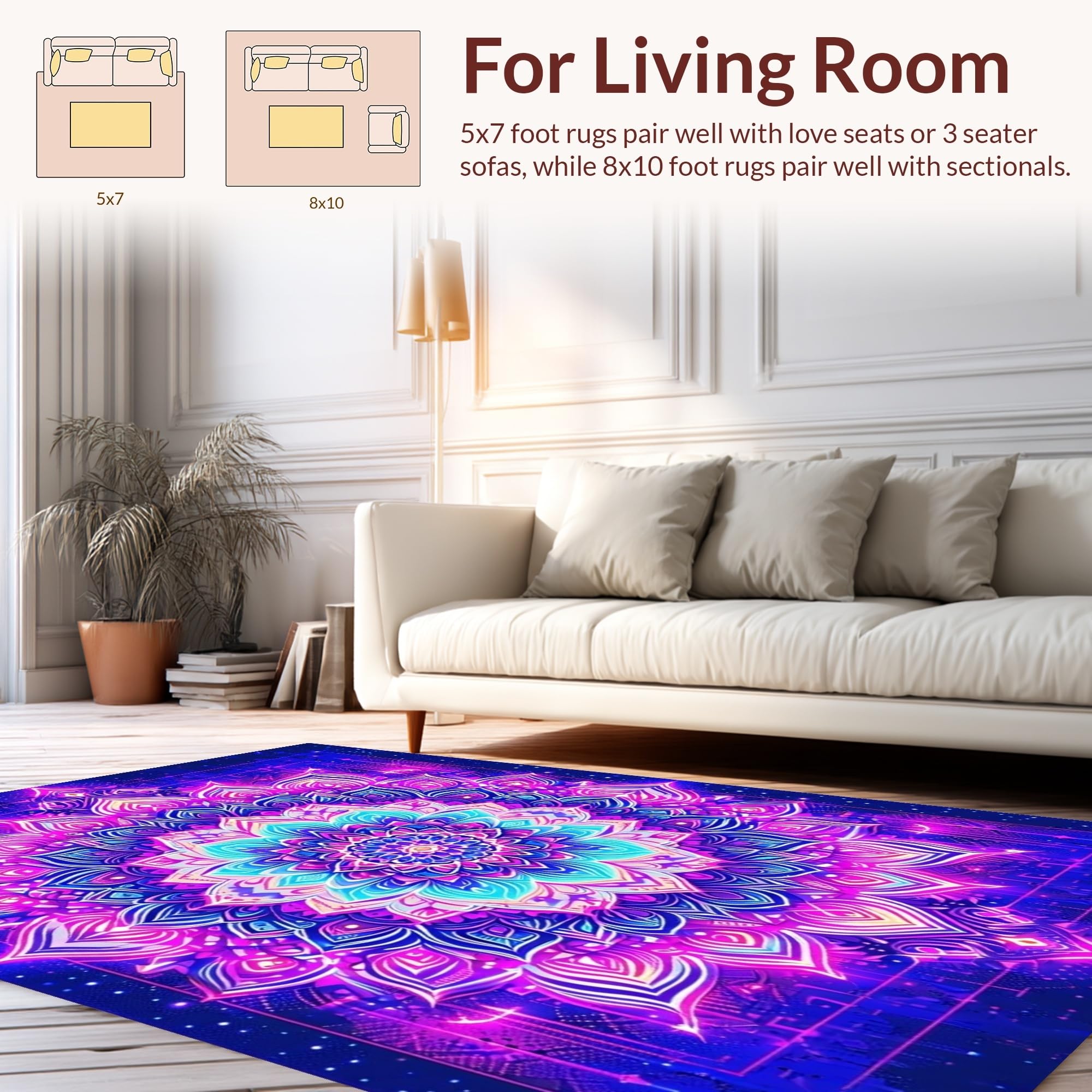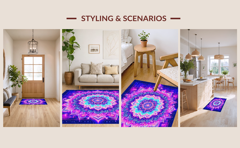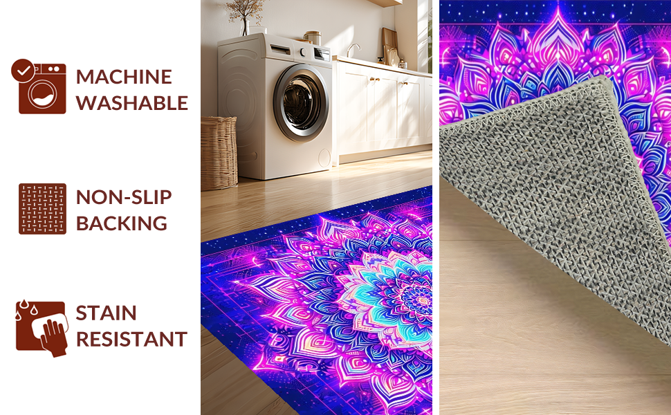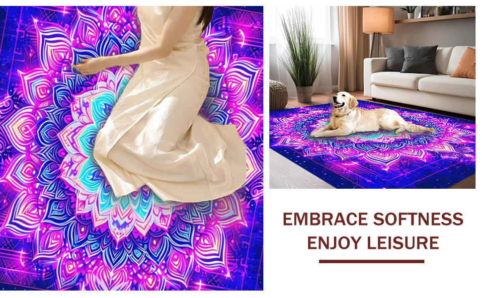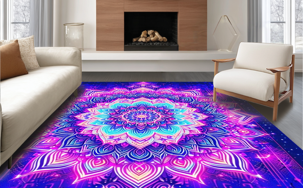Ultra Soft Area Rug, Non Slip, Stain Resistant, Washable Area Rugs for Living Room, Bedroom, Intricate Whimsical Pattern Illumination(Purple) Overview:
