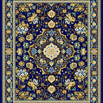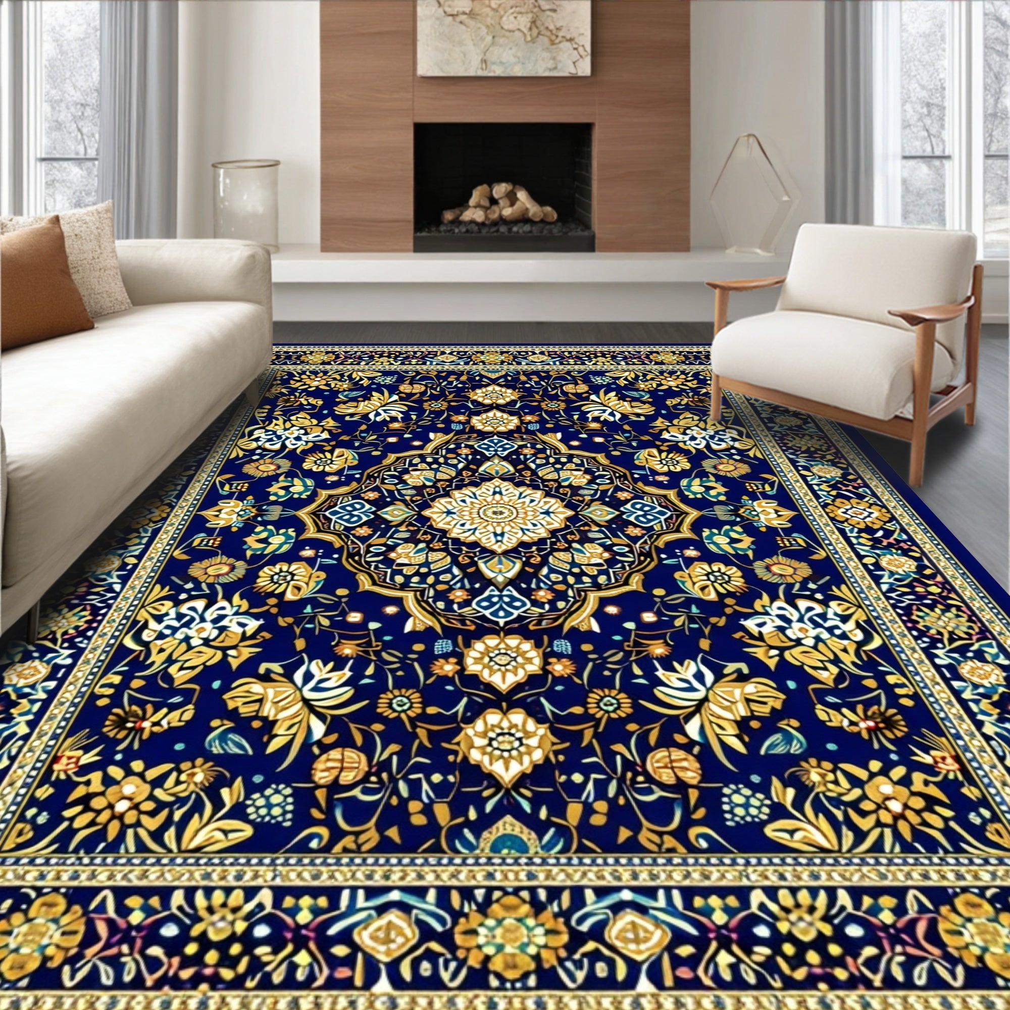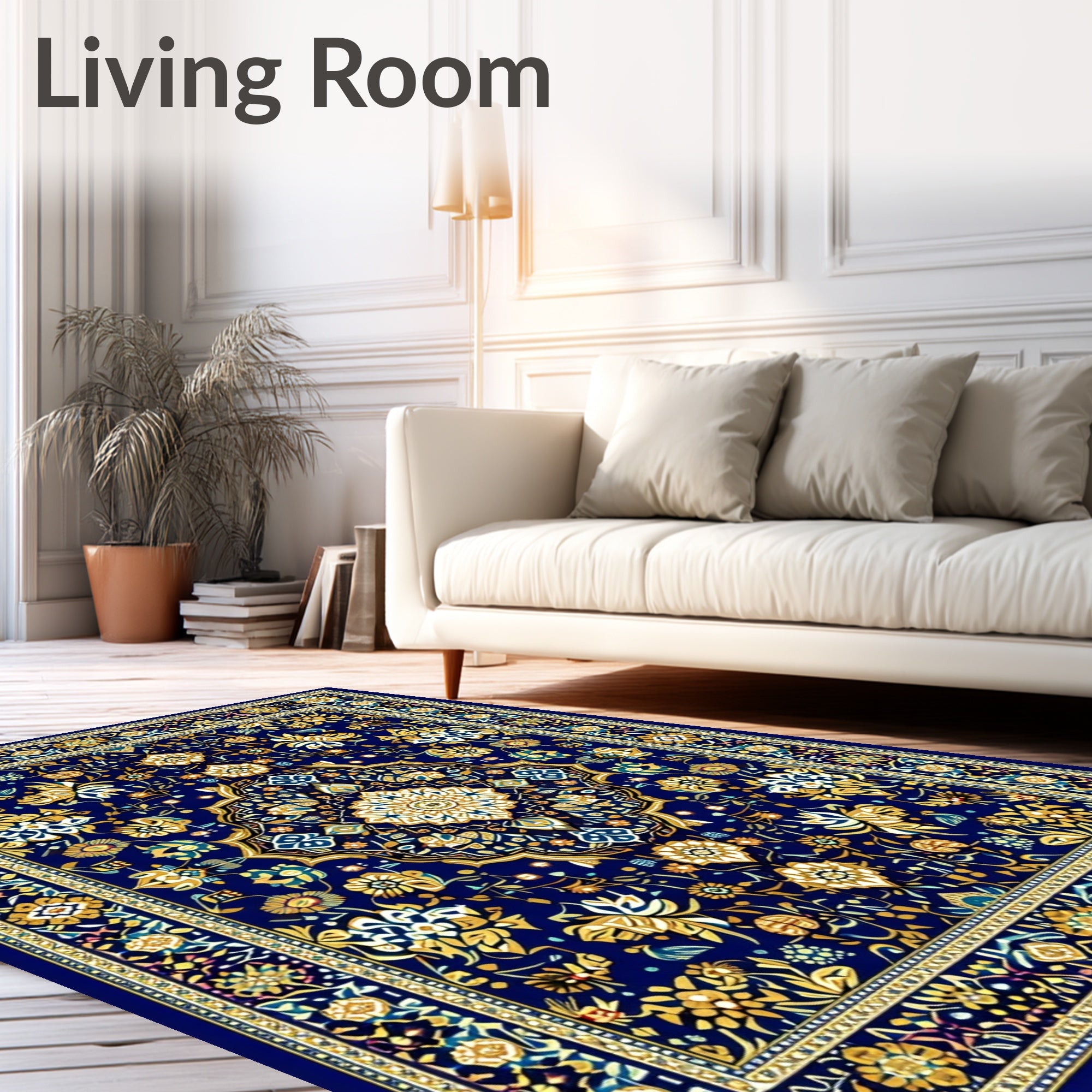 Ultra Soft Area Rug, Non Slip, Stain Resistant, Washable Area Rugs for Living Room, Bedroom, Intricate Woven Area Featuring Complex Design and Gold Accents(Blue) Overview: