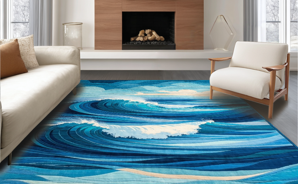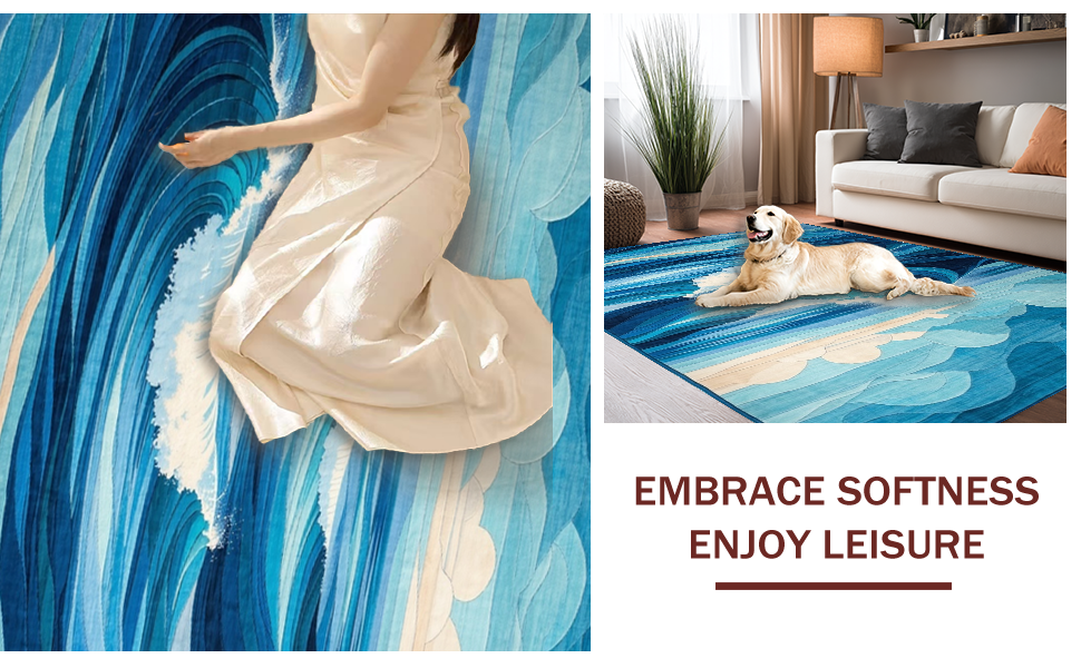 Ultra Soft Area Rug, Non Slip, Stain Resistant, Washable Area Rugs for Living Room, Bedroom, Inviting Beachy Softness Concept(Blue) Overview: