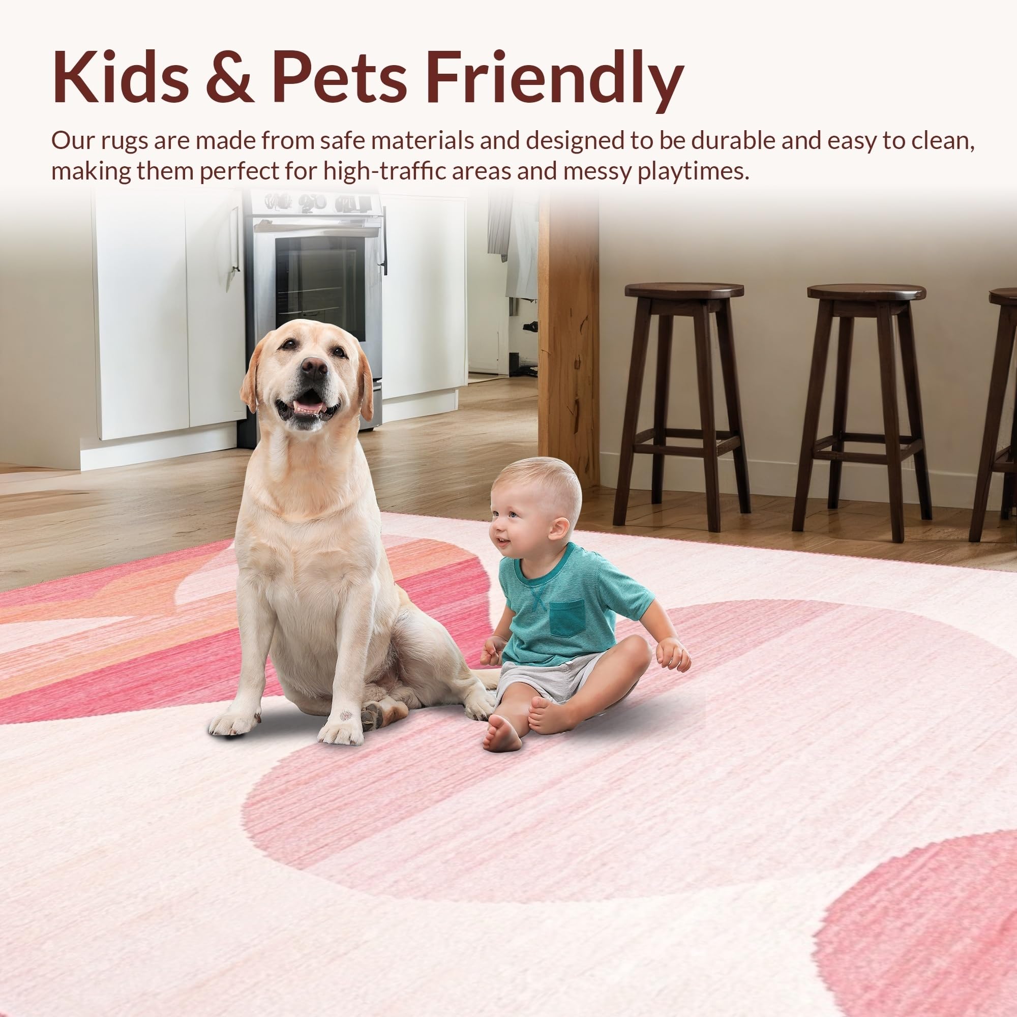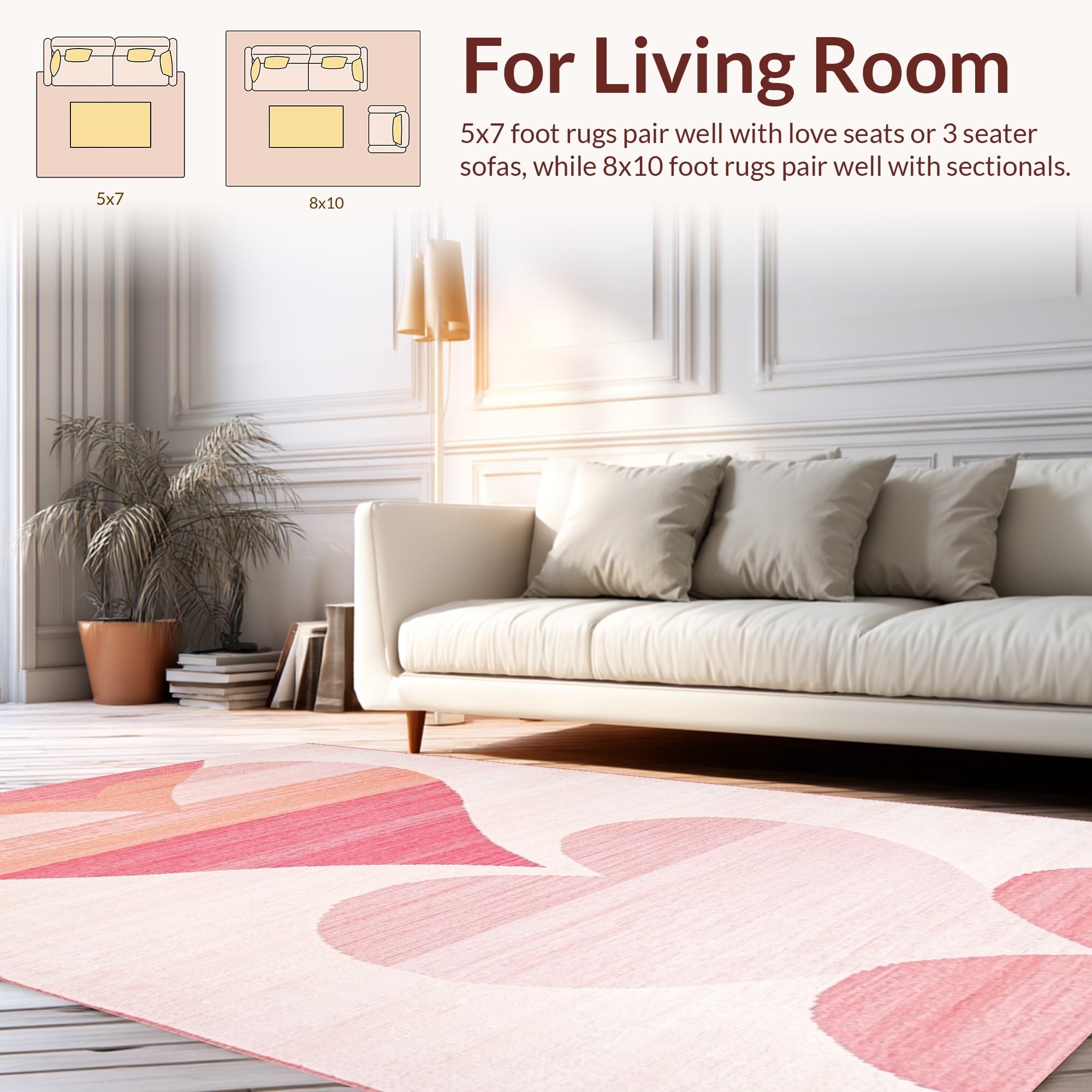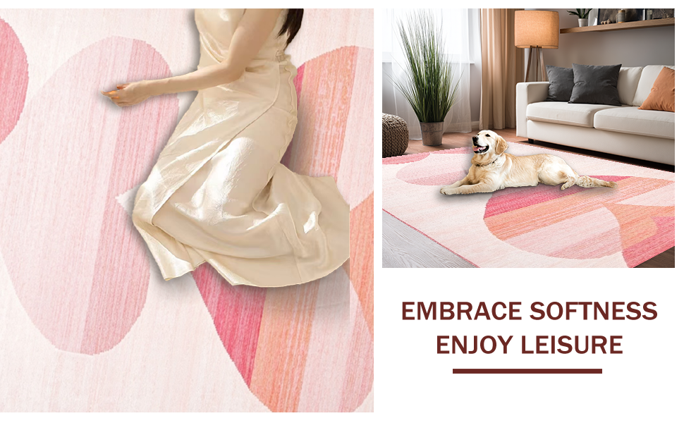 Ultra Soft Area Rug, Non Slip, Stain Resistant, Washable Area Rugs for Living Room, Bedroom, Inviting Cheerful Colorful Design(Pink) Overview: