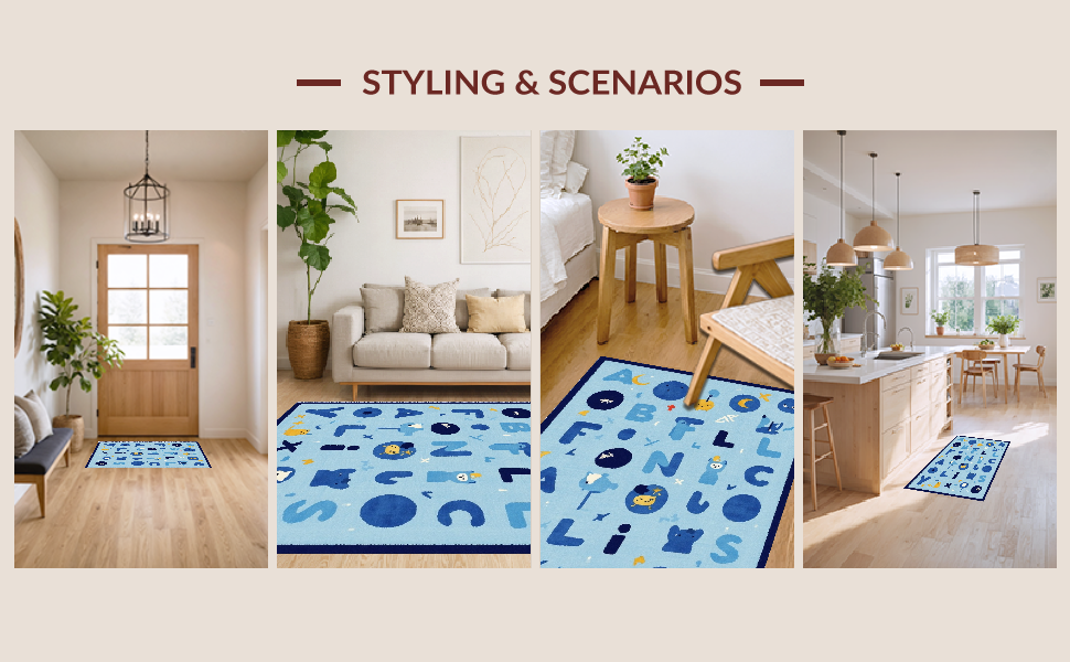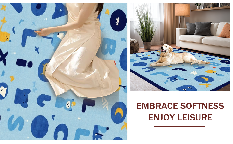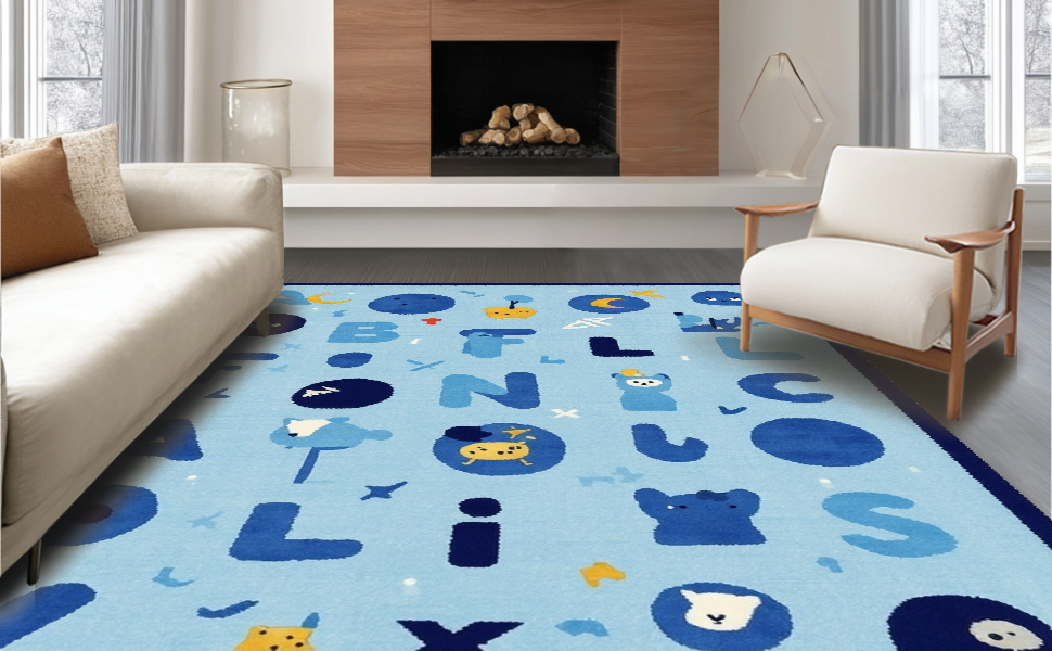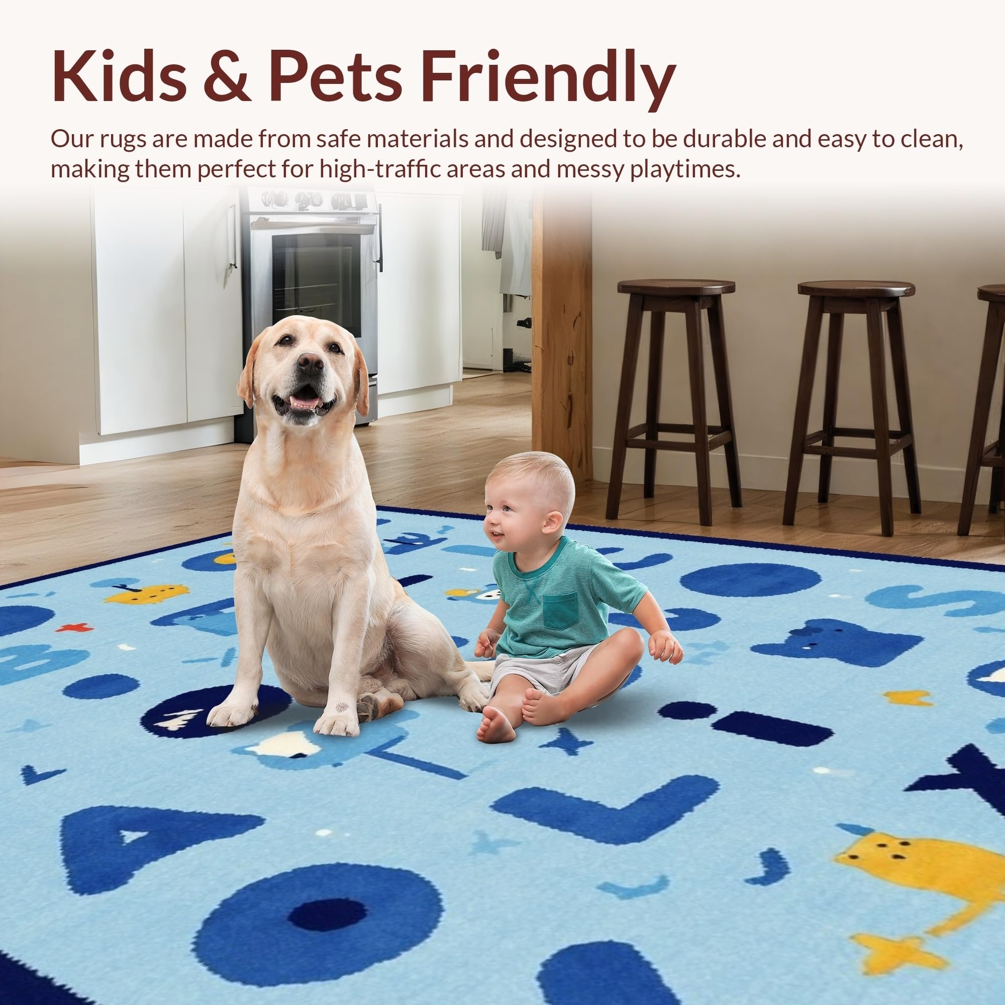 Ultra Soft Area Rug, Non Slip, Stain Resistant, Washable Area Rugs for Living Room, Bedroom, Inviting Circular Educational Decor(Blue) Overview: